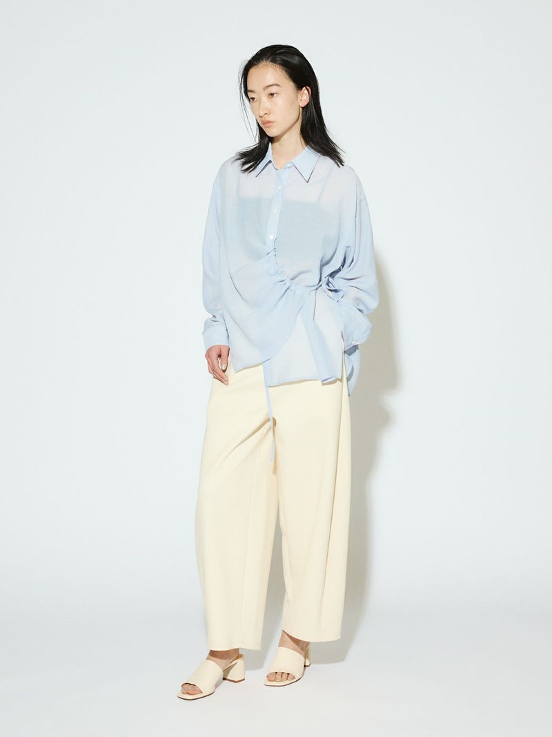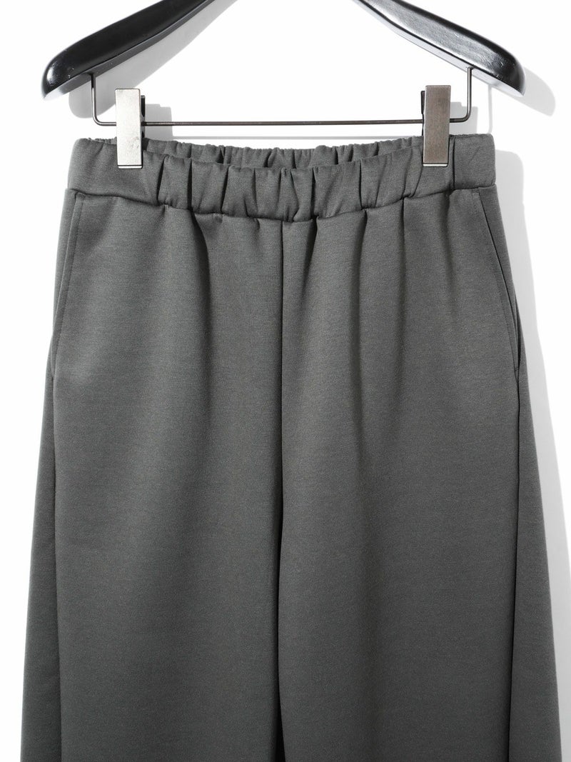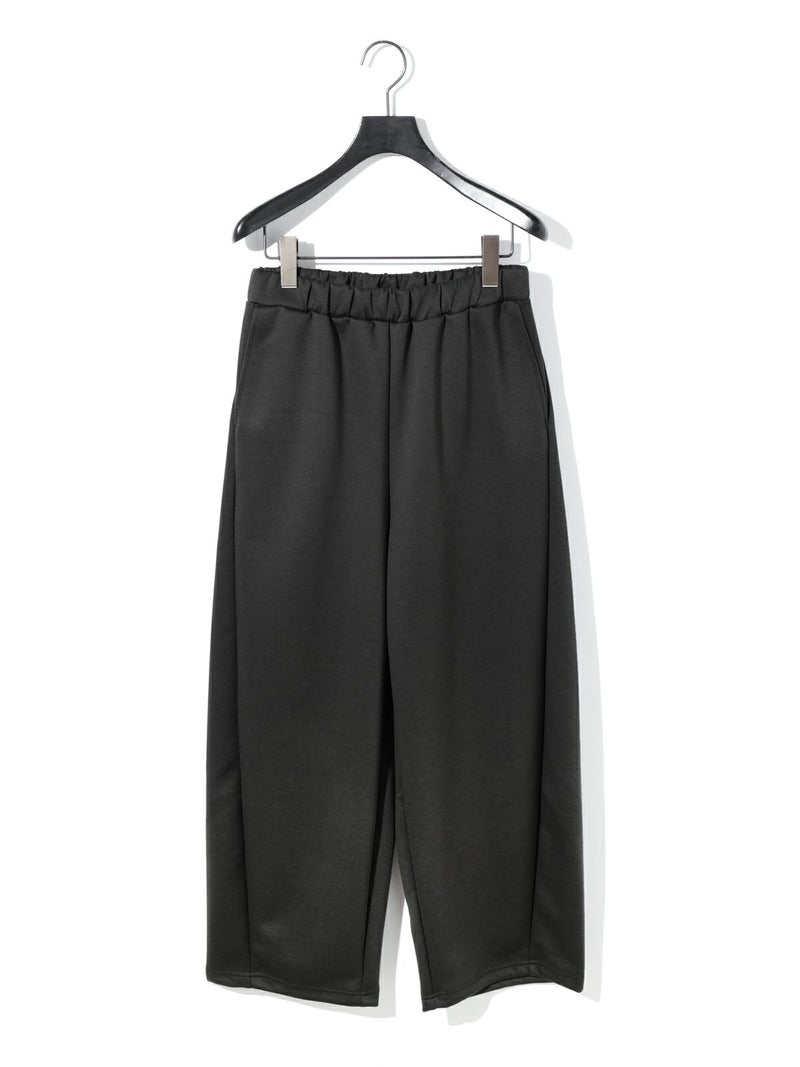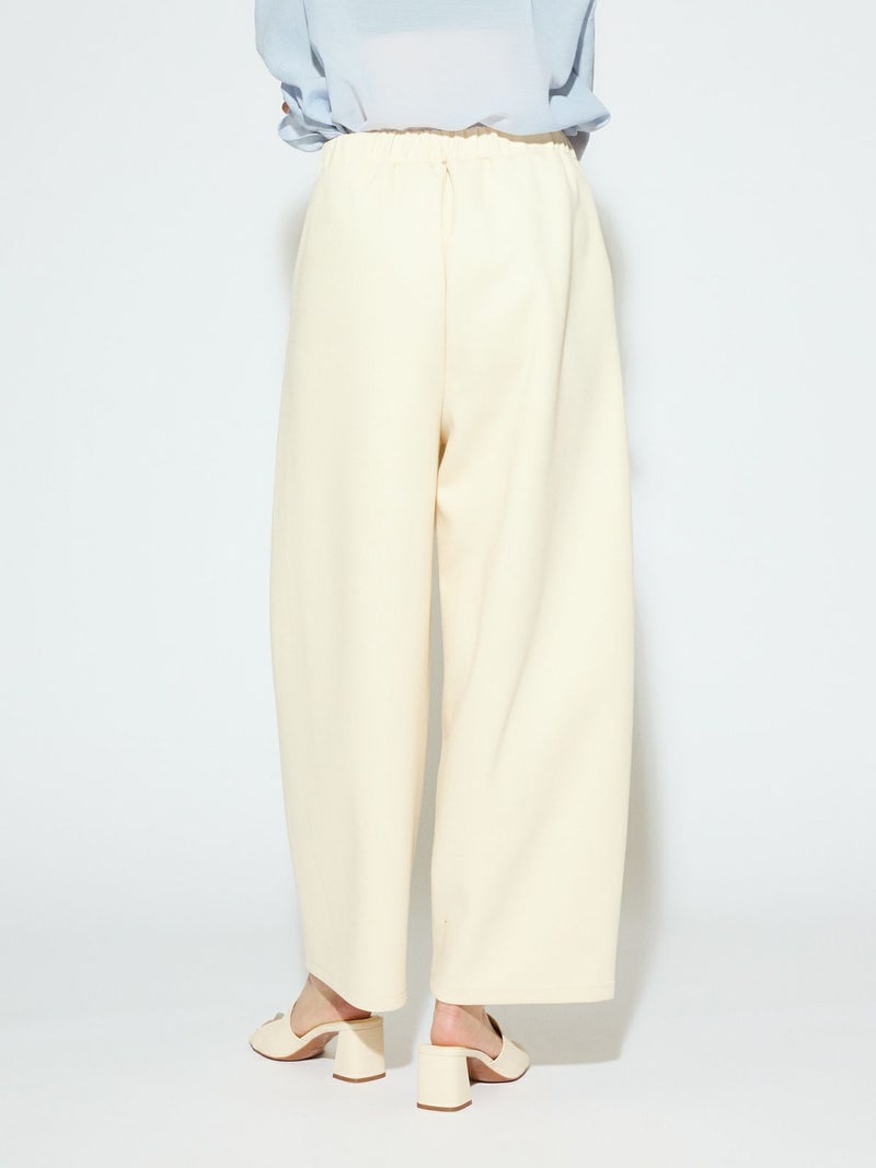 シワになりにくく着回しアイテムとしてお勧めのダブルニットバレルイージーパンツです。程よくゆとりのあるサイズ感でラフにコーディネートしていただけるアイテムです。ウエストはリラックス感のあるゴム使用に加え中紐付き。フロント目に縫い目を施したことで細見に見え、前後でシルエットを変化させたデザインが特徴。カジュアル感がありながらサラッとした素材でシンプルな大人の着こなしにお勧めです。4-112172/ニットスウェットシャツと同素材で展開。