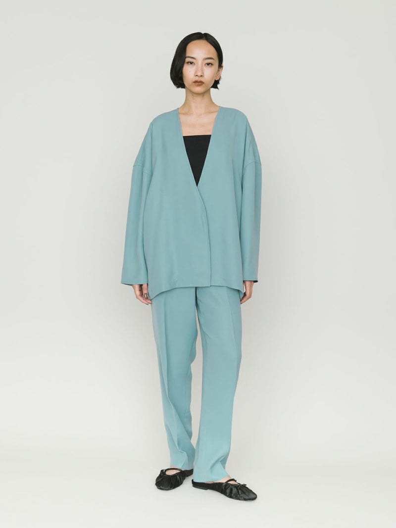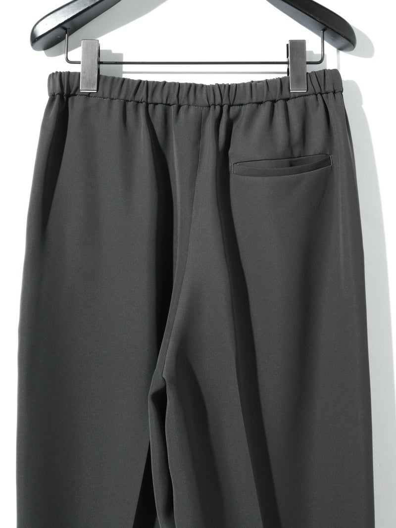 長めの丈で設計したシンプルで合わせやすいセンタープレスストレートイージーパンツです。細すぎず太すぎないシルエットを表現しました。裾カーブでワンクッションしやすいのもポイント。ウエストはリラックス感のあるゴム使用。両面にほどよい光沢を持つダブルサテン素材を使用。ハリと落ち感を兼ね備えた上品な風合いで、シルエットを美しく引き立てます。シワになりにくく扱いやすい素材で、フォーマルな印象がありながらもカジュアルスタイルにも取り入れやすい万能な一枚です。同シリーズ4-132229/ジャケットライクカーディガンとセットアップもおすすめです。