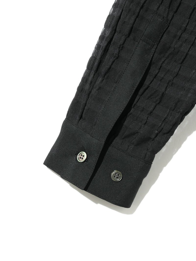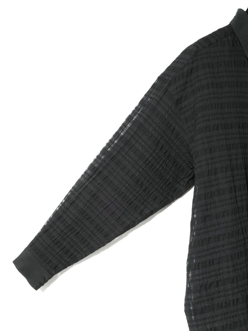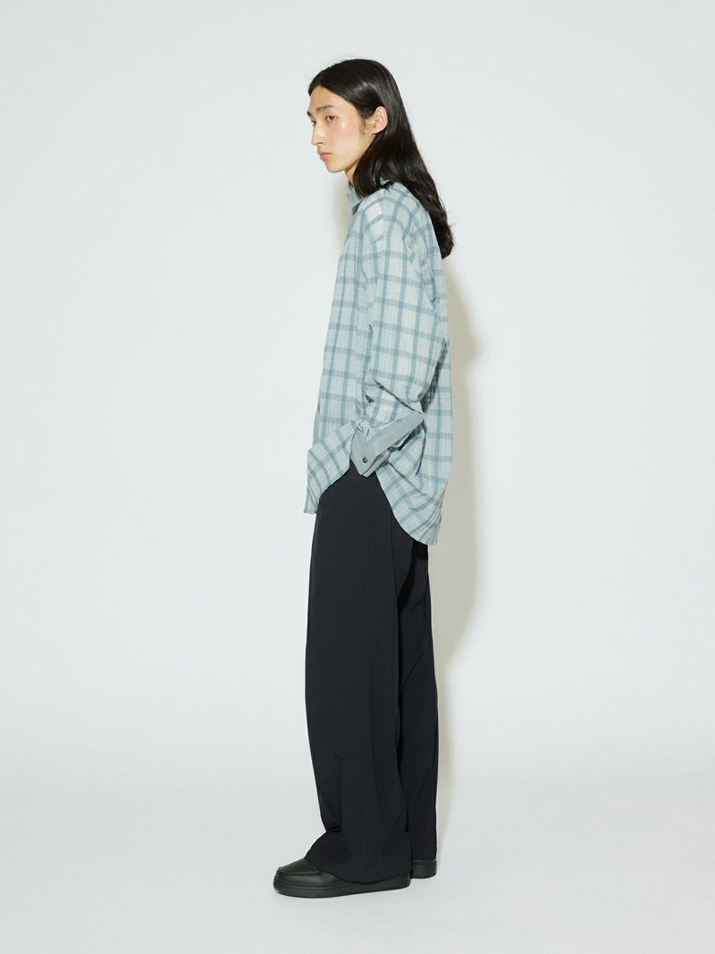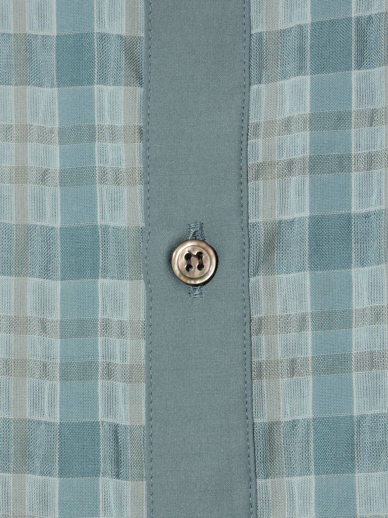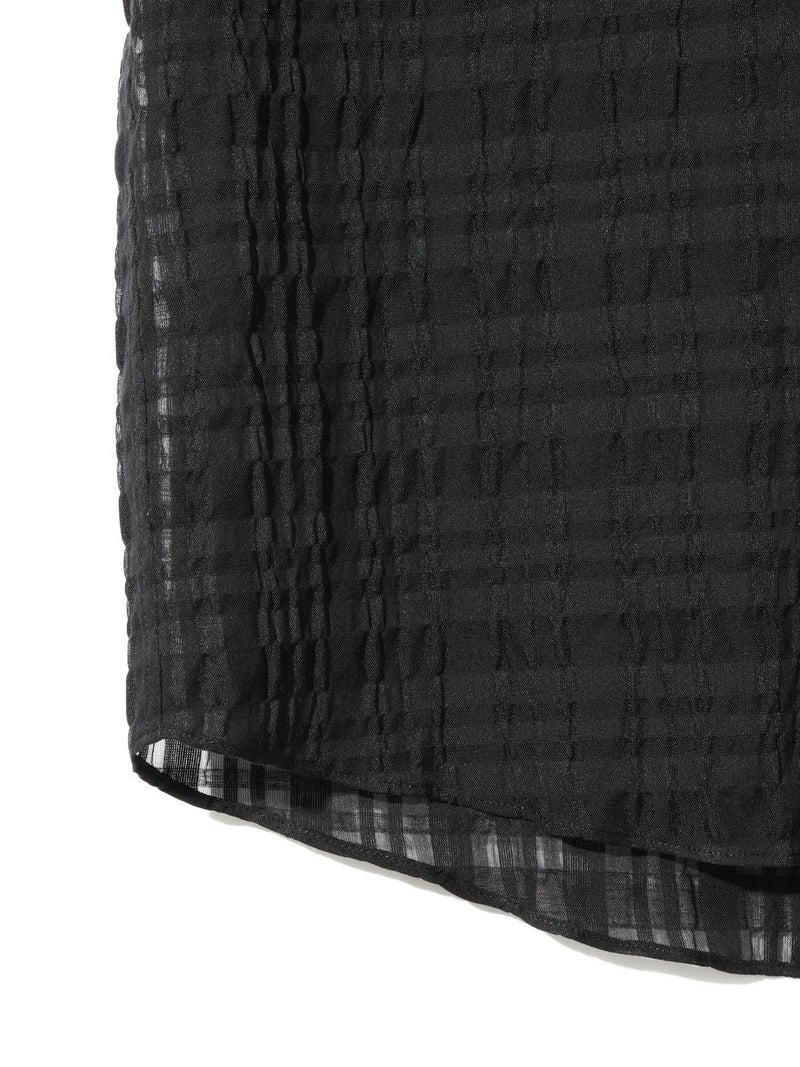 シアーサッカー調のチェック柄が印象的なシアーチェックシャツです。清涼感のある生地感と色合いがポイント。袖口・襟・前立てをブロード素材を使用。ゆったりとしたオーバーサイズでラフに着用していただける1枚です。羽織ってもOK。配色の異なる2色のカラー展開となっています。