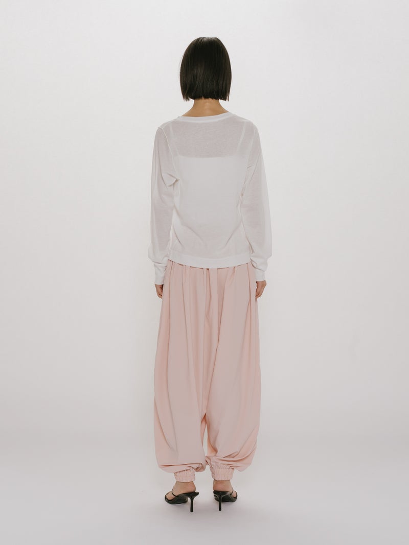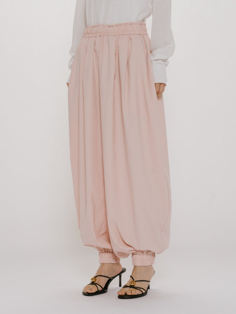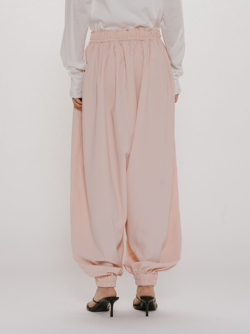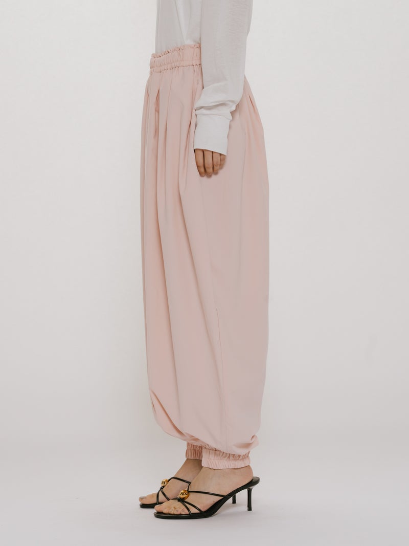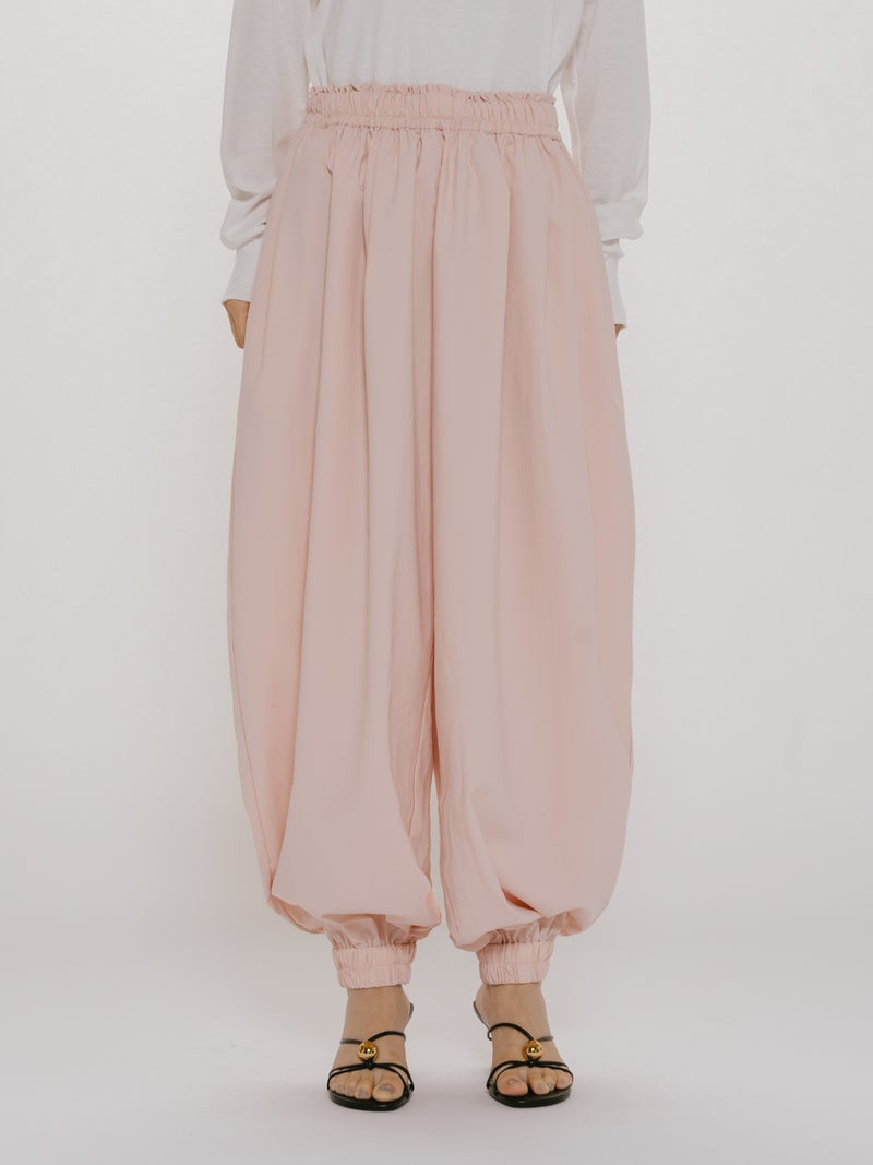 分量たっぷりのふくらみのあるシルエットを表現したバルーンイージーパンツです。タイプライター素材でもコットンのような肌触りが特徴で、やや撥水機能付きなので春夏のイージーケアなパンツとしてお勧めの1枚。パンツの裾はゴムでしっかりと止まるので身長を気にせず着用いただけます。1-162209A/レースバルーンイージーパンツと同型。ボリュームのある今年っぽいシルエットと今季人気カラーでもある春らしく柔らかいピンクカラーも展開。シンプルにシャツやTシャツでラフに着用いただけるパンツです。