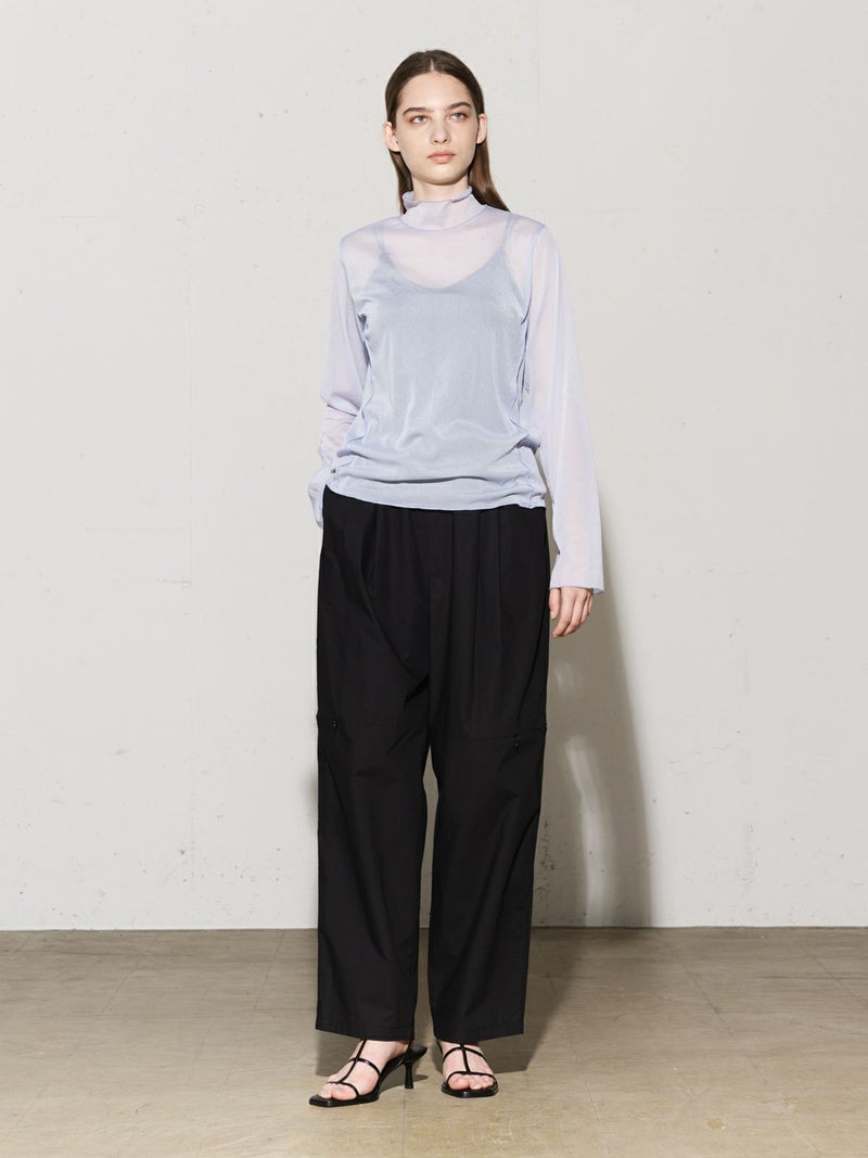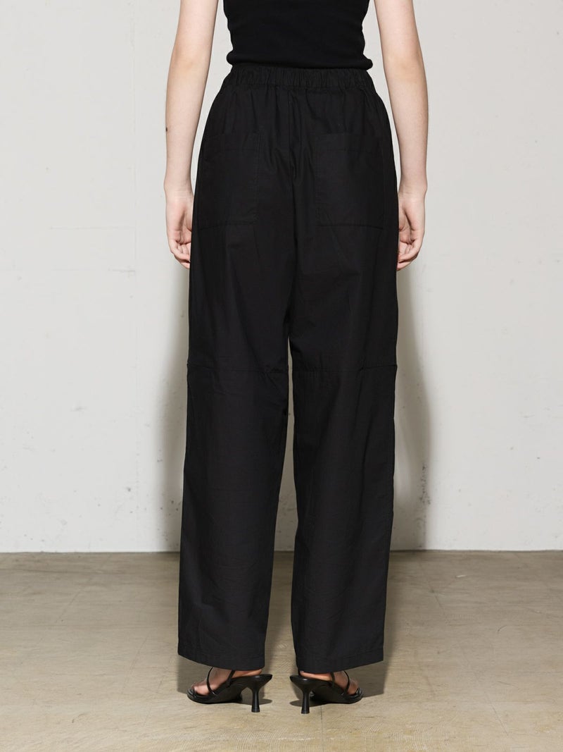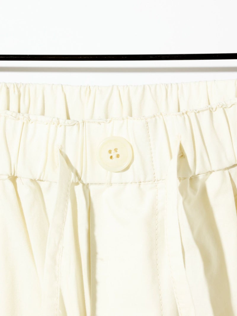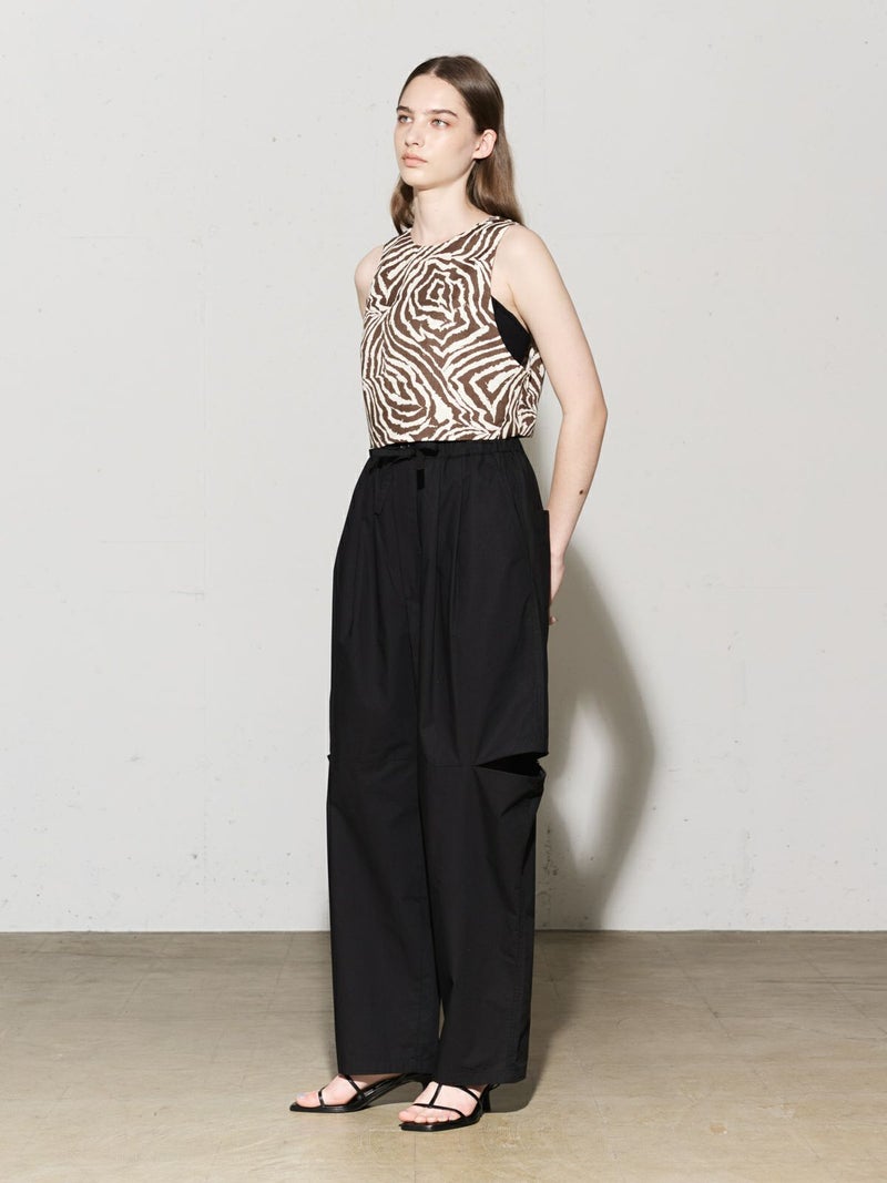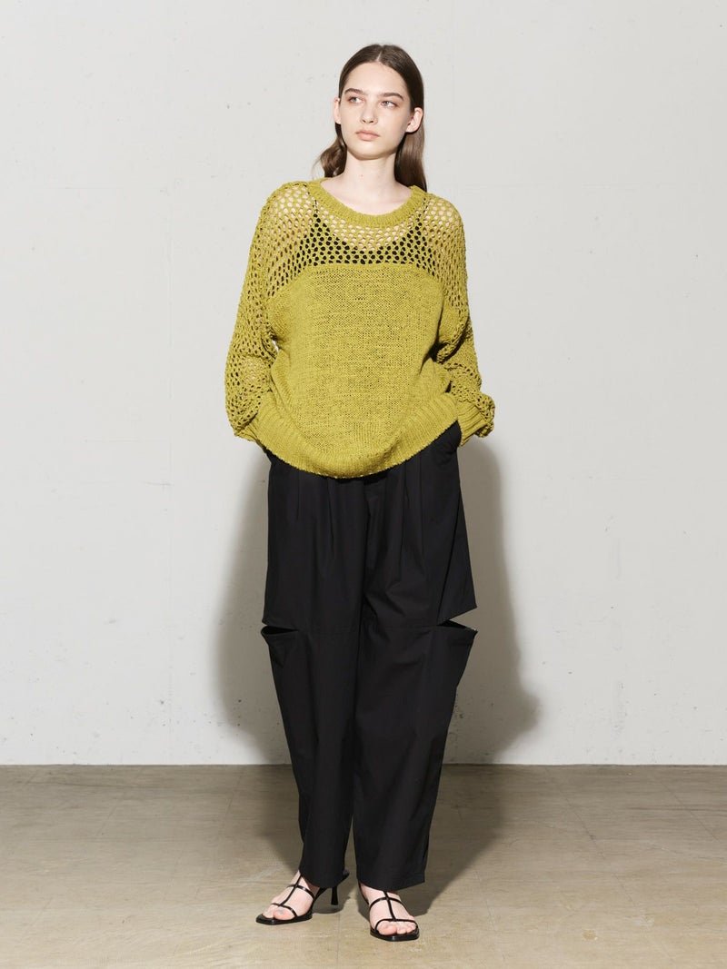 シャリ感のあるヴィンテージワッシャー素材を使用したニーホールボトム。サイドにニーホールを施したデザインでジップを留めてストレートラインにもできる特徴的なデザイン仕上げです。ワイルドでカジュアルな着こなしを印象付けます。ゆったり感があり軽さのあるコットン生地を使用。ウエストはゴム使用に加え調整紐付き。夏場でも涼しい穿き心地を体感していただけます。