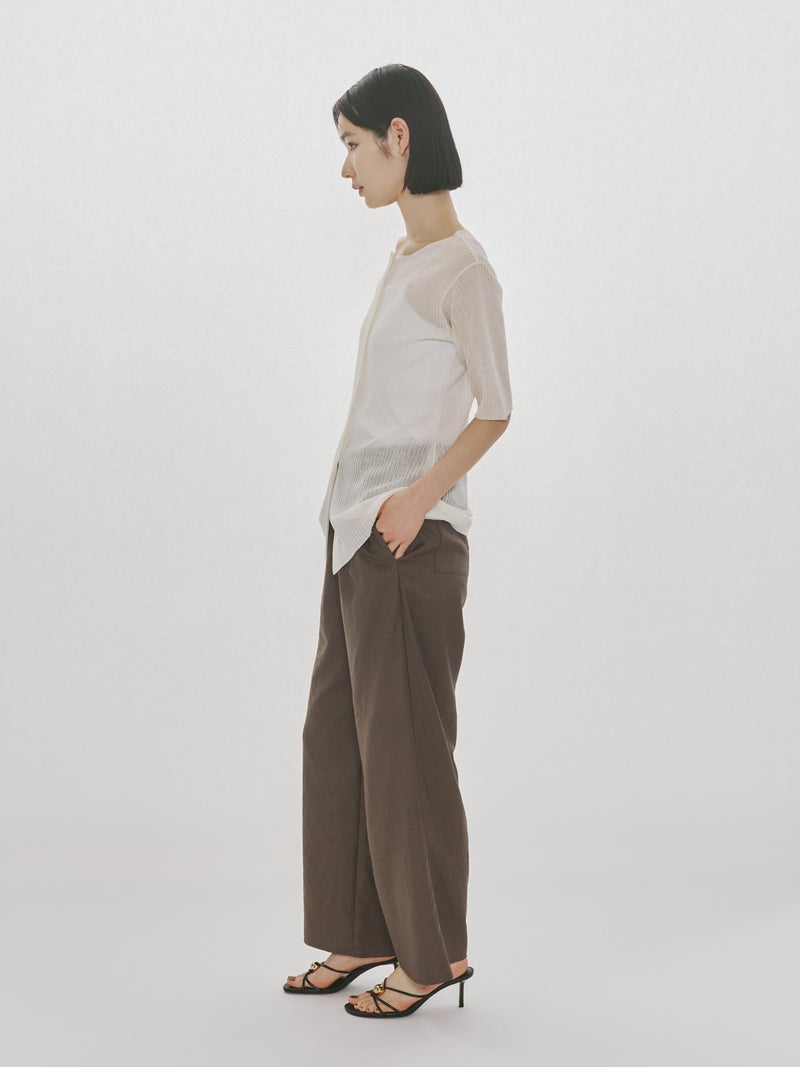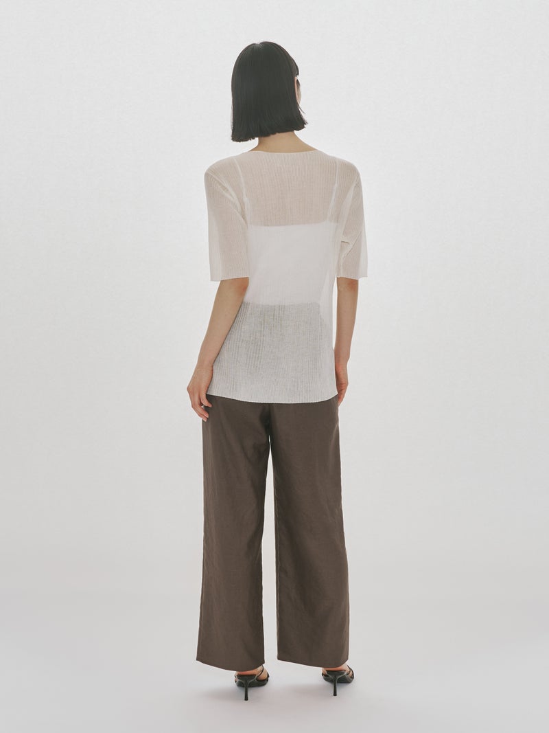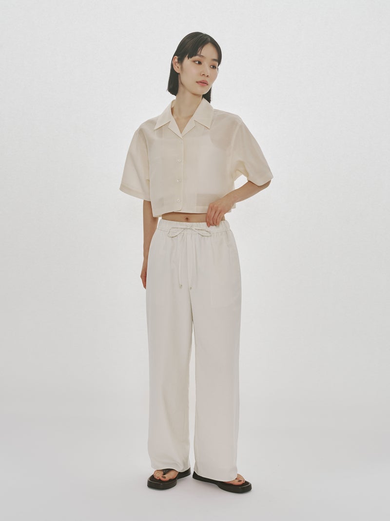 ベーシックなシルエットとデザインで幅広い方にコーディネートしていただきやすいストレートイージーパンツです。足元まですっきりとしたフルレングスのシルエットを表現しており足長効果のある1枚。オフホワイトのみ裏地付きで全色透け感なく安心して着用できます。ウエストゴムに加え調整紐が付いたデザインなのでキープしやすく、リラックス感のあるところもポイント。サラッとした着心地と落ち着きのある女性らしいパンツスタイルを印象付けたボトムアイテムです。