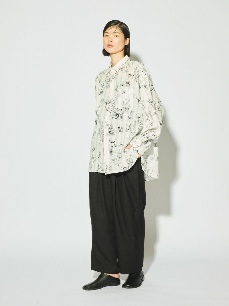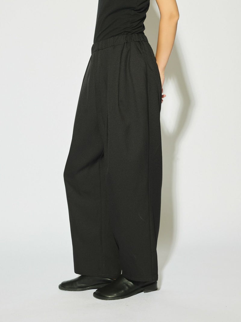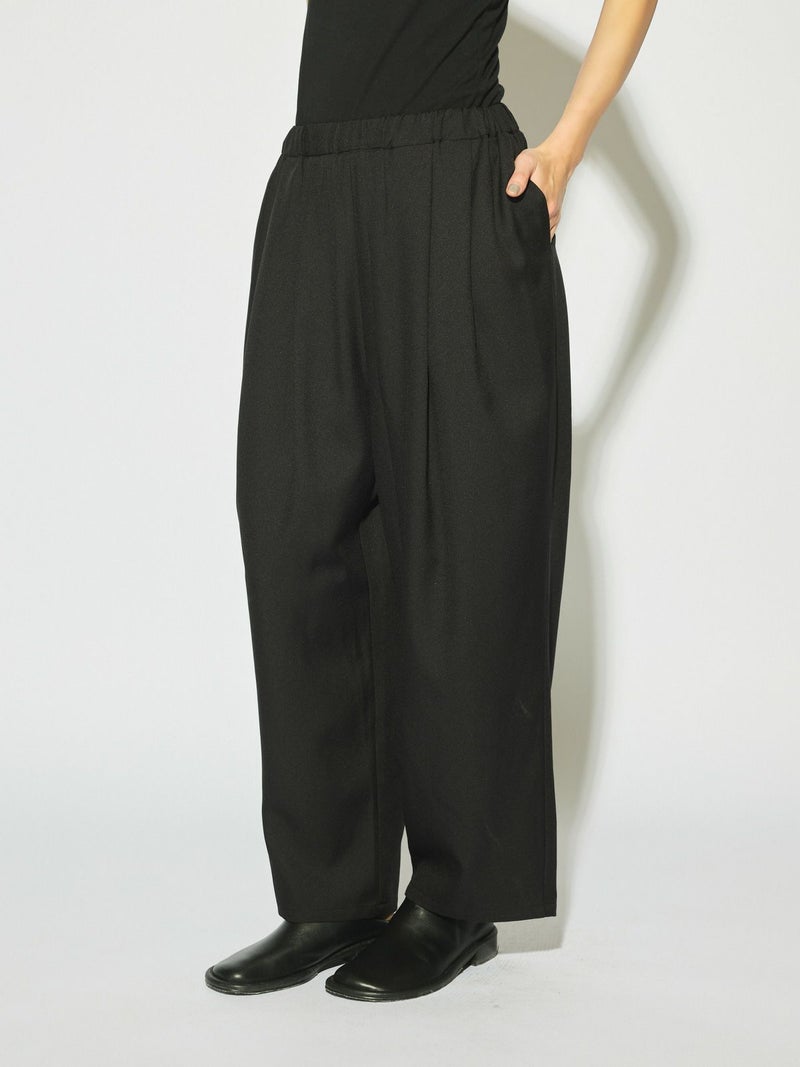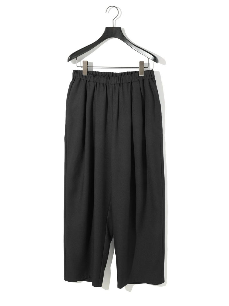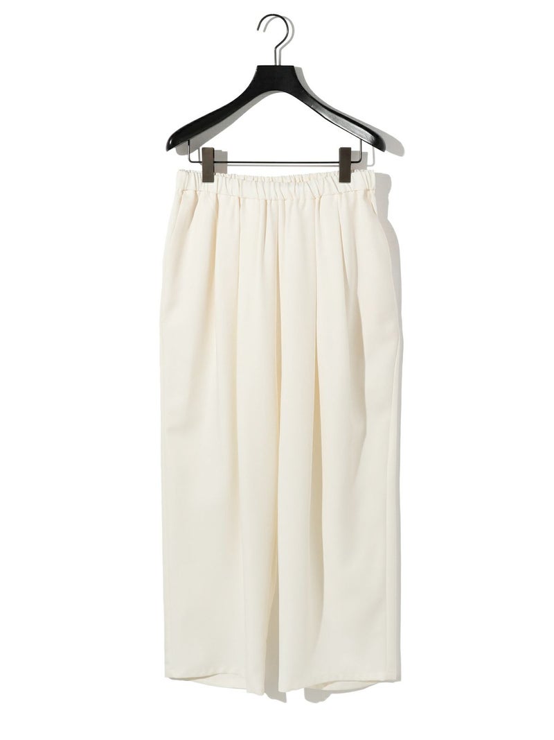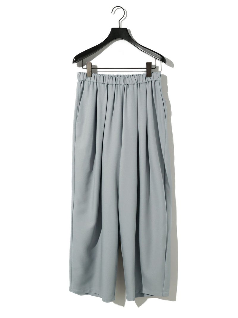 MIDIUMISOLID実績あるキレイ目に穿きこなせるタックワイドイージーパンツが今季もカラー変更をし展開。上品な色合のライトグレーを加えた3色展開となっています。柔らかい素材でサラッとした春夏におすすめの生地が特徴で程よいワイド感のあるキレイなシルエットがポイントとなっています。リラックス感のあるゴム使用のウエストは中紐付きで穿きやすいデザイン。レイヤードにもおすすめの1枚です。
