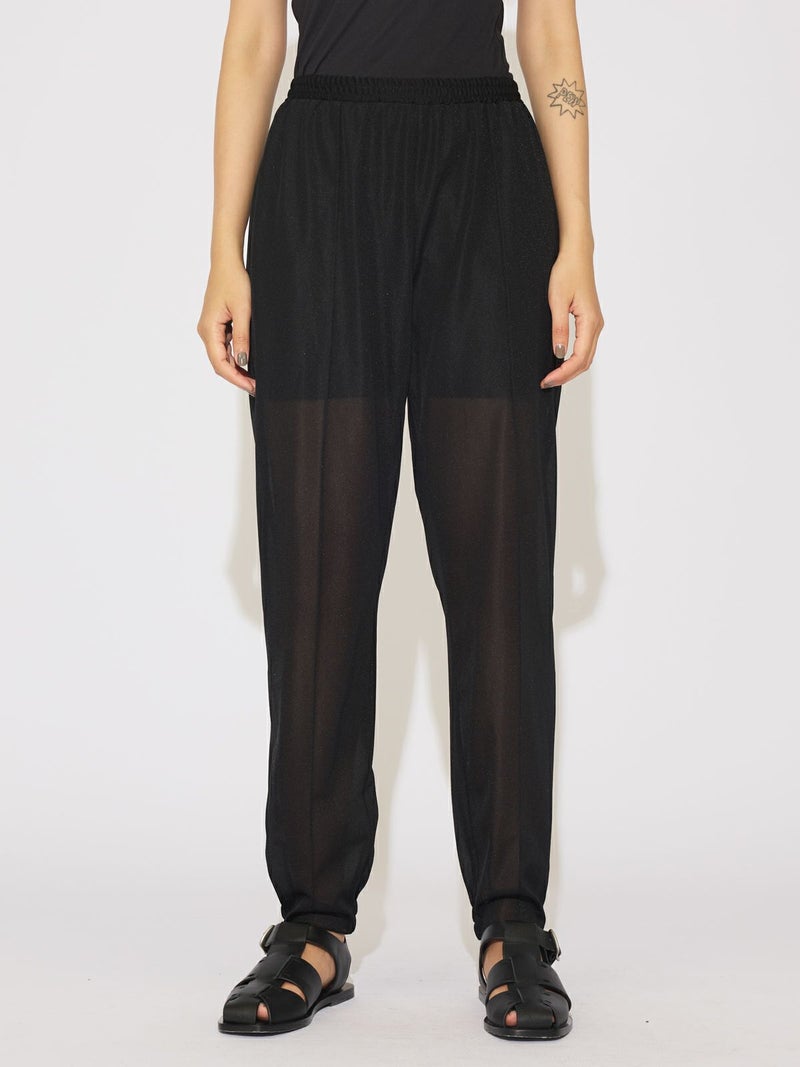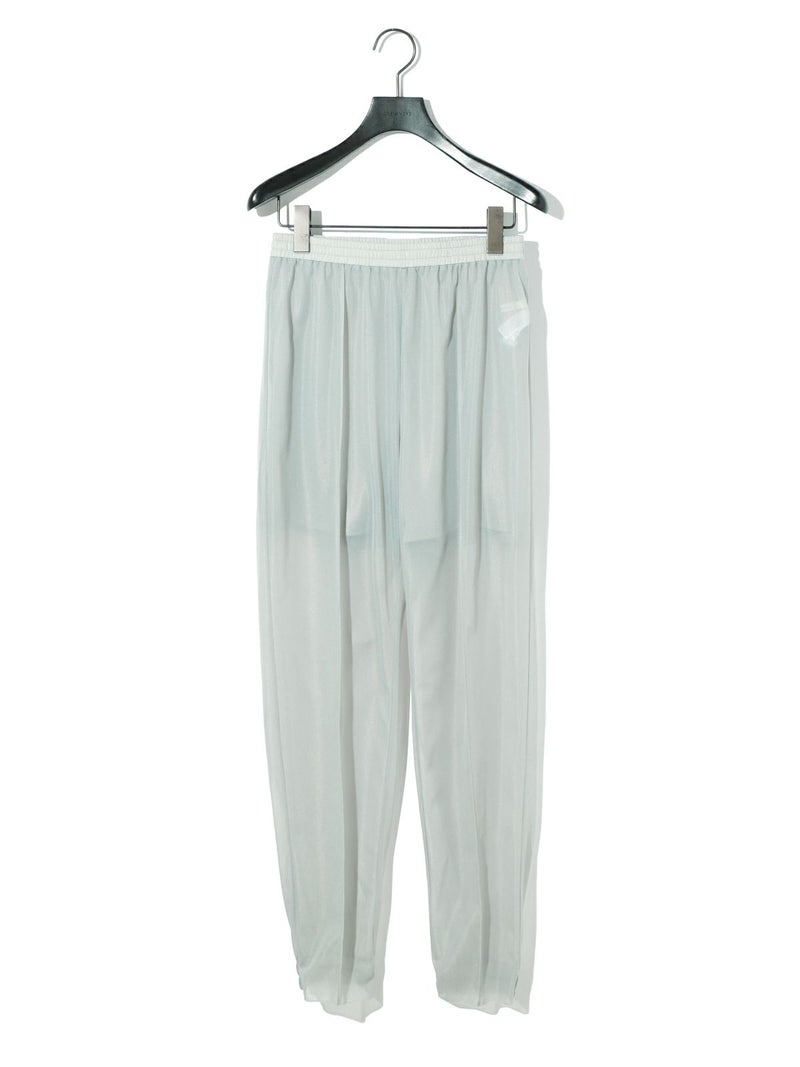インナーショートパンツとセットでデザインしたシアーレイヤードパンツです。晩夏から秋にかけシアーの透け感を楽しんでいただける1枚です。膝上丈のショートパンツから覗かせるうっすらと見えるレッグラインが印象的。細身ですっきりとしたシルエットを表現しています。裾の前部分はフラットに、後ろ部分のみゴム使用。カジュアルなデザインなのにカジュアル感のない上品な雰囲気を演出。トップスは様々に着こなせるので、季節の進み具合でウォーム感を取り入れたオシャレを楽しんでいただける1枚です。