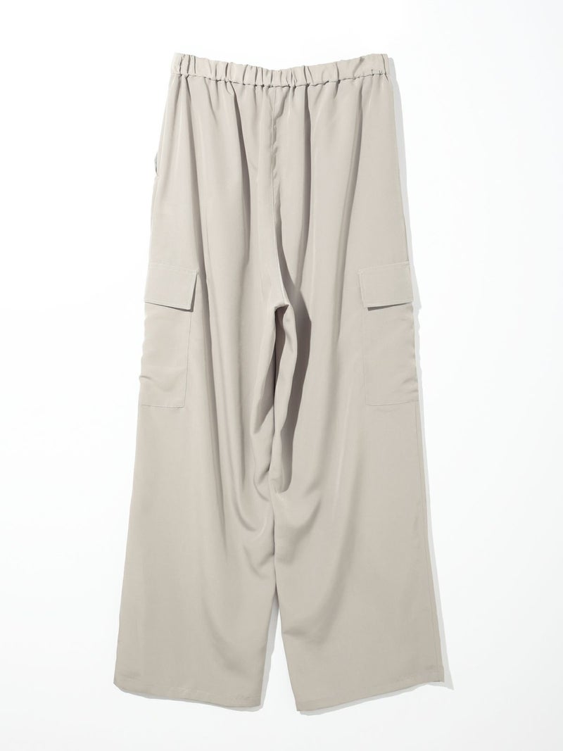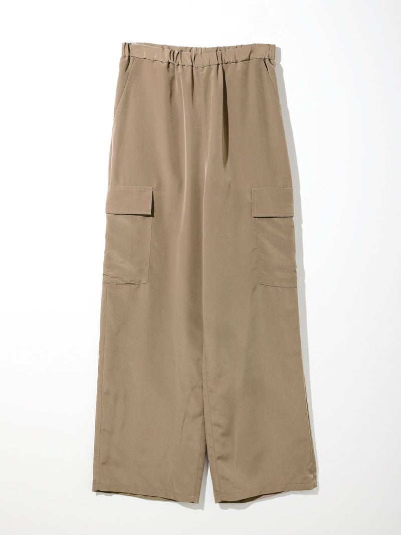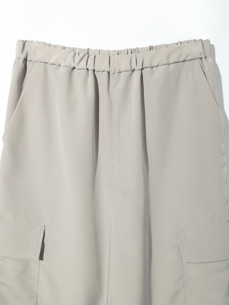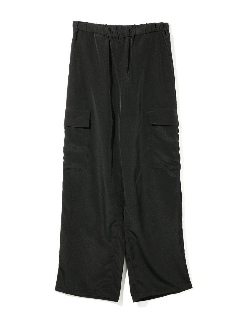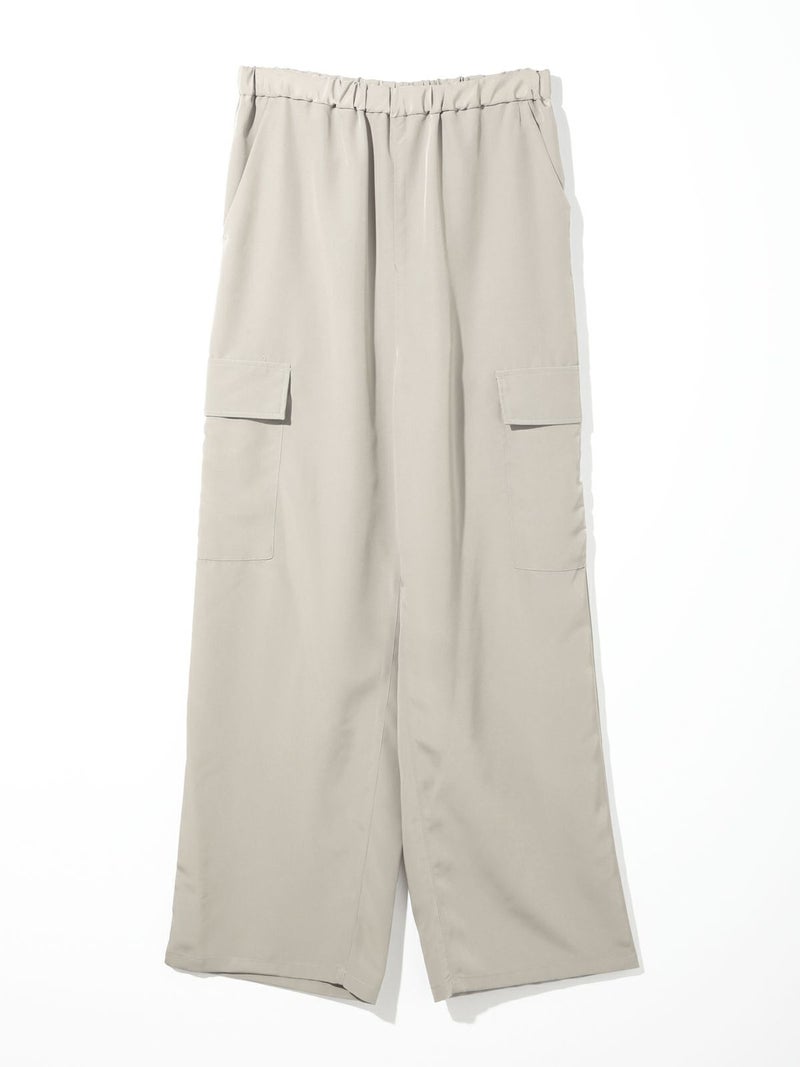 きれい目カジュアルな着こなしを表現したワークイージーパンツです。サラッっと生地で太すぎないパンツラインが特徴。両サイドにカーゴならではのデザインポケット付。ウエストはゴム使用で調整可能な中紐付き。落ち着きのあるカラー展開で大人のカジュアルを演出できます。裏地はなくポリエステルを使用した薄手の生地感となっているので長い時期にも対応可能です。