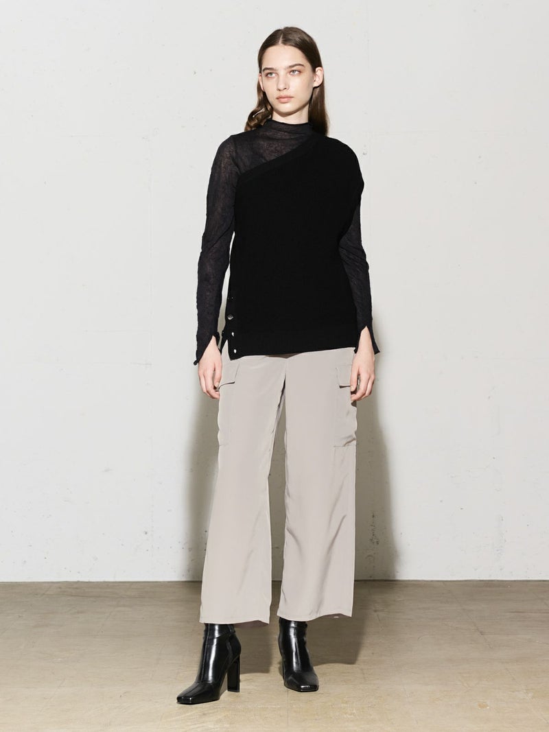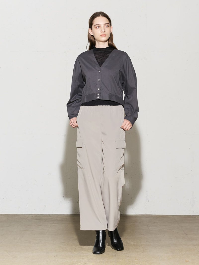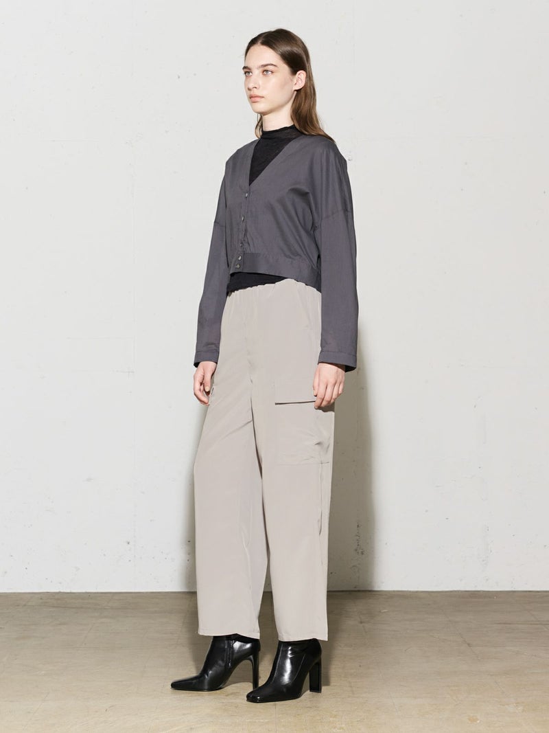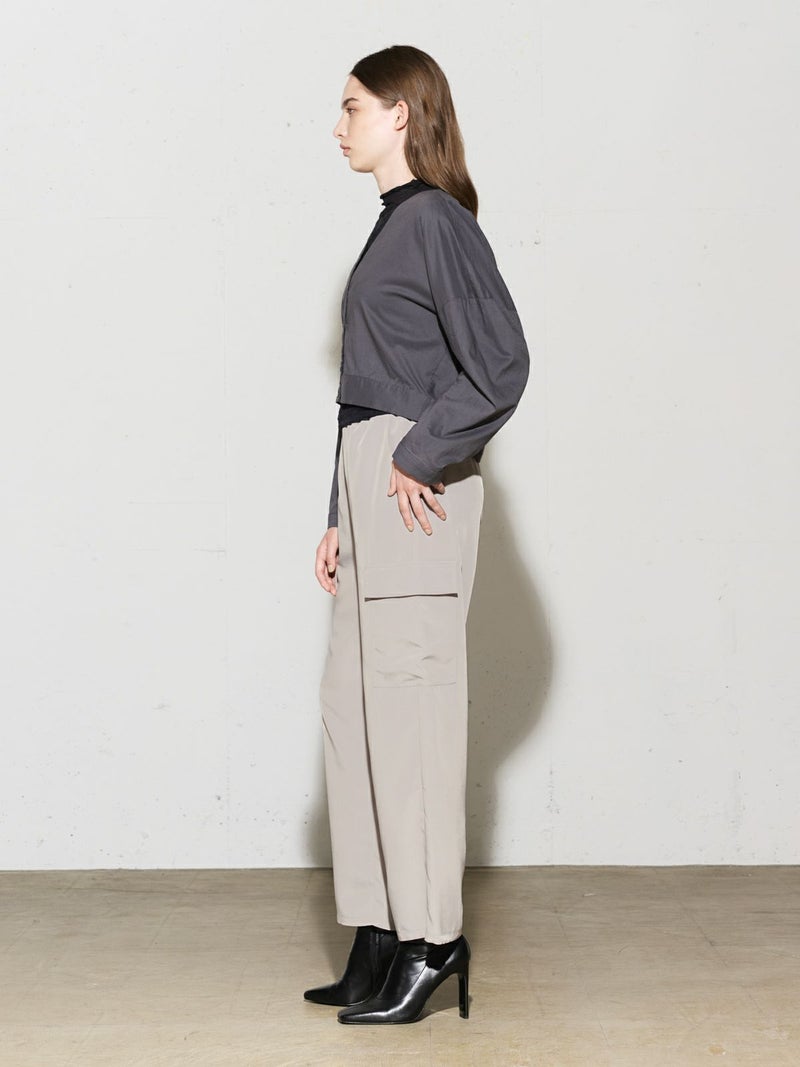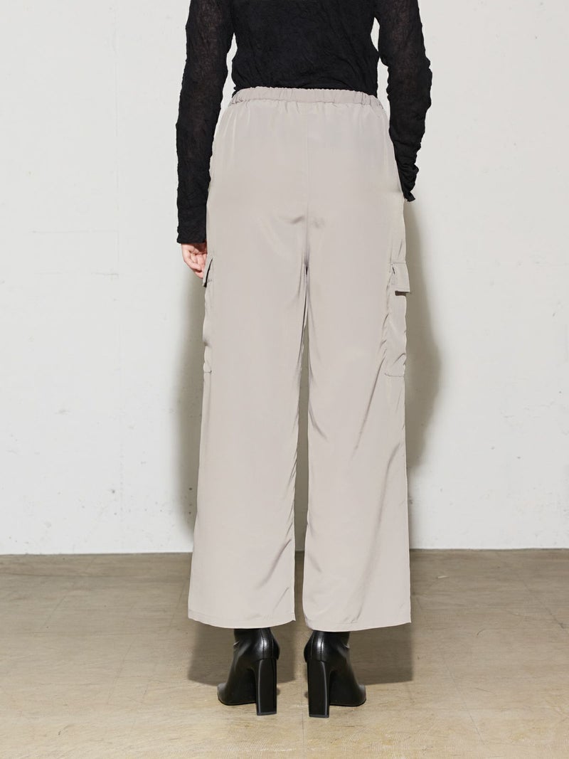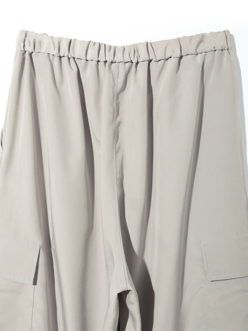 きれい目カジュアルな着こなしを表現したワークイージーパンツです。サラッっと生地で太すぎないパンツラインが特徴。両サイドにカーゴならではのデザインポケット付。ウエストはゴム使用で調整可能な中紐付き。落ち着きのあるカラー展開で大人のカジュアルを演出できます。裏地はなくポリエステルを使用した薄手の生地感となっているので長い時期にも対応可能です。