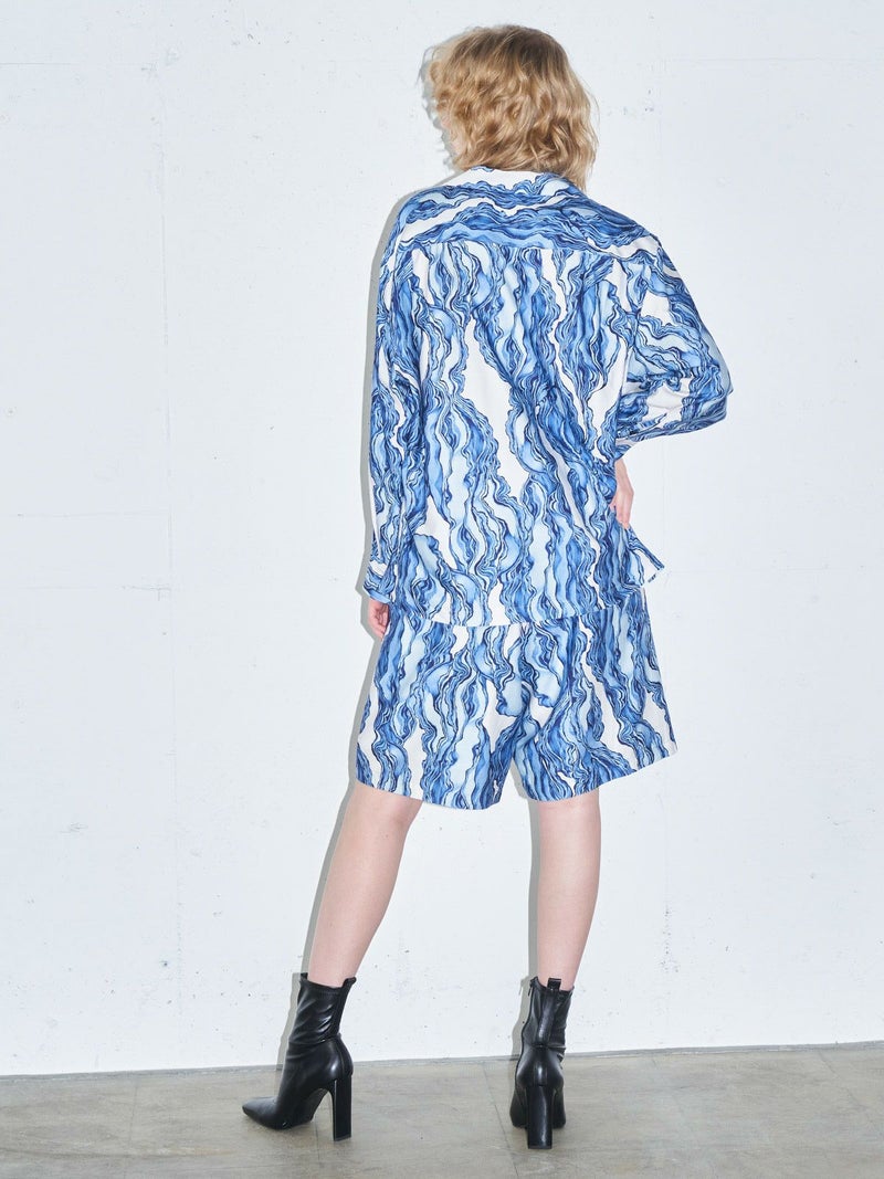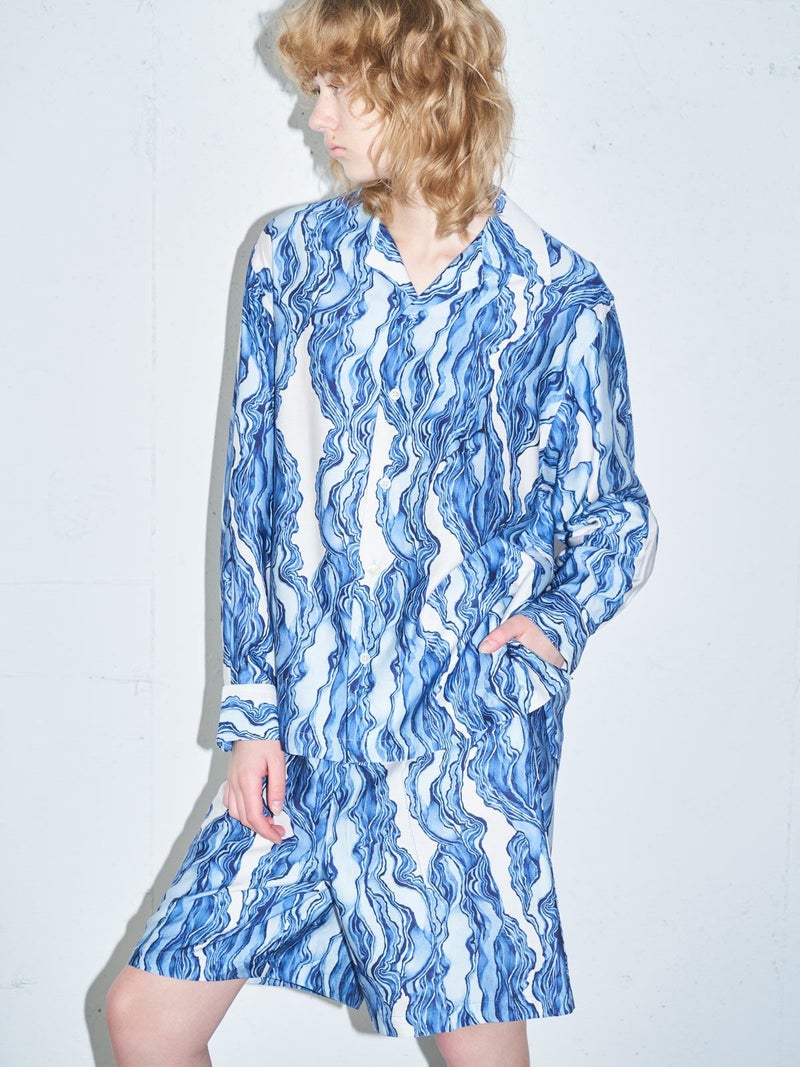 MIDIUMISOLID MIDIUMISOLID グラフィックプリントオープンカラーシャツ(3-1687)