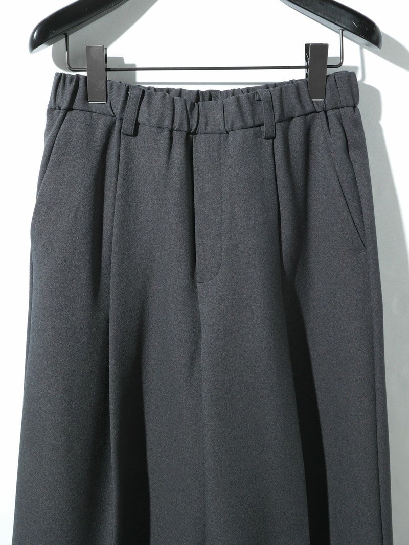 ジャストウエストではくと、靴に乗るか乗らないかの使いやすいジャスト丈。まっすぐ落ちるストレートシルエットが脚をきれいに見せつつ、カジュアルにもきれいめにも幅広く合わせられます。生地は薄すぎず厚すぎず、ほんのり起毛感のあるほどよい中肉素材。寒い日はタイツを合わせれることでロングシーズン愛用していただける質感です。スウェット・シャツ・ニットまで、どんなアイテムとも好相性なオンにもオフにも活躍する1枚です。