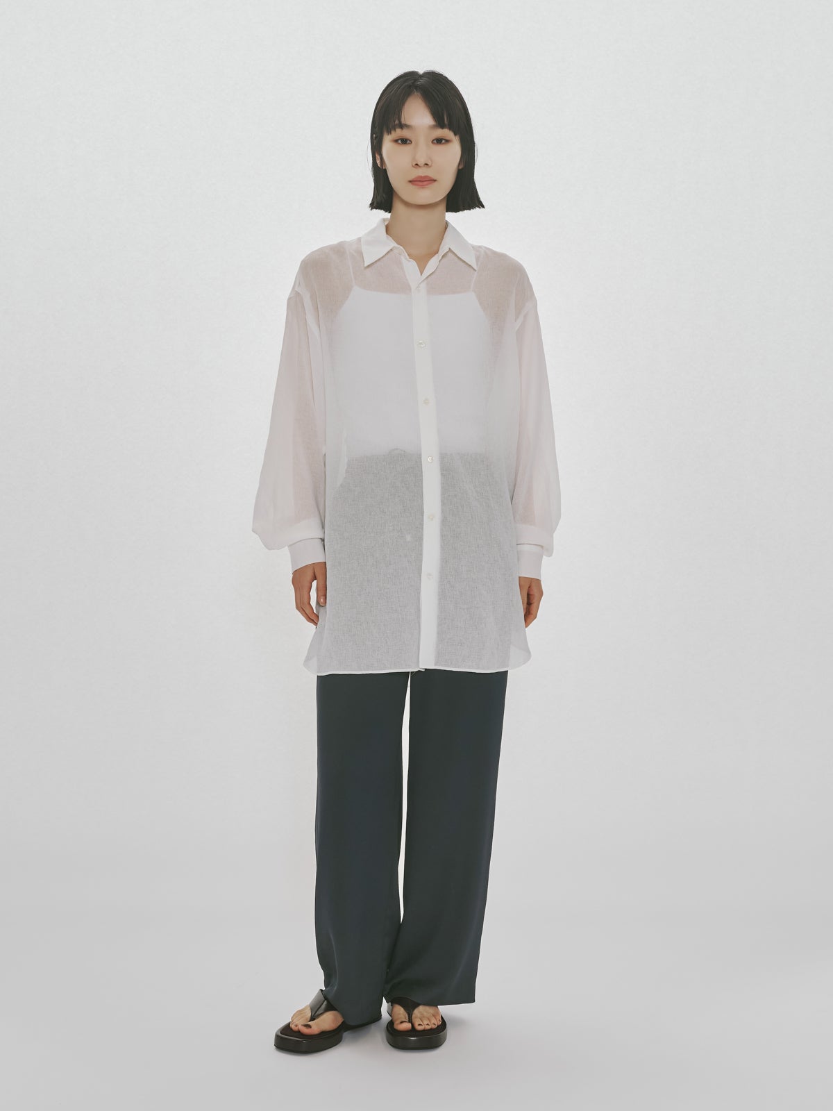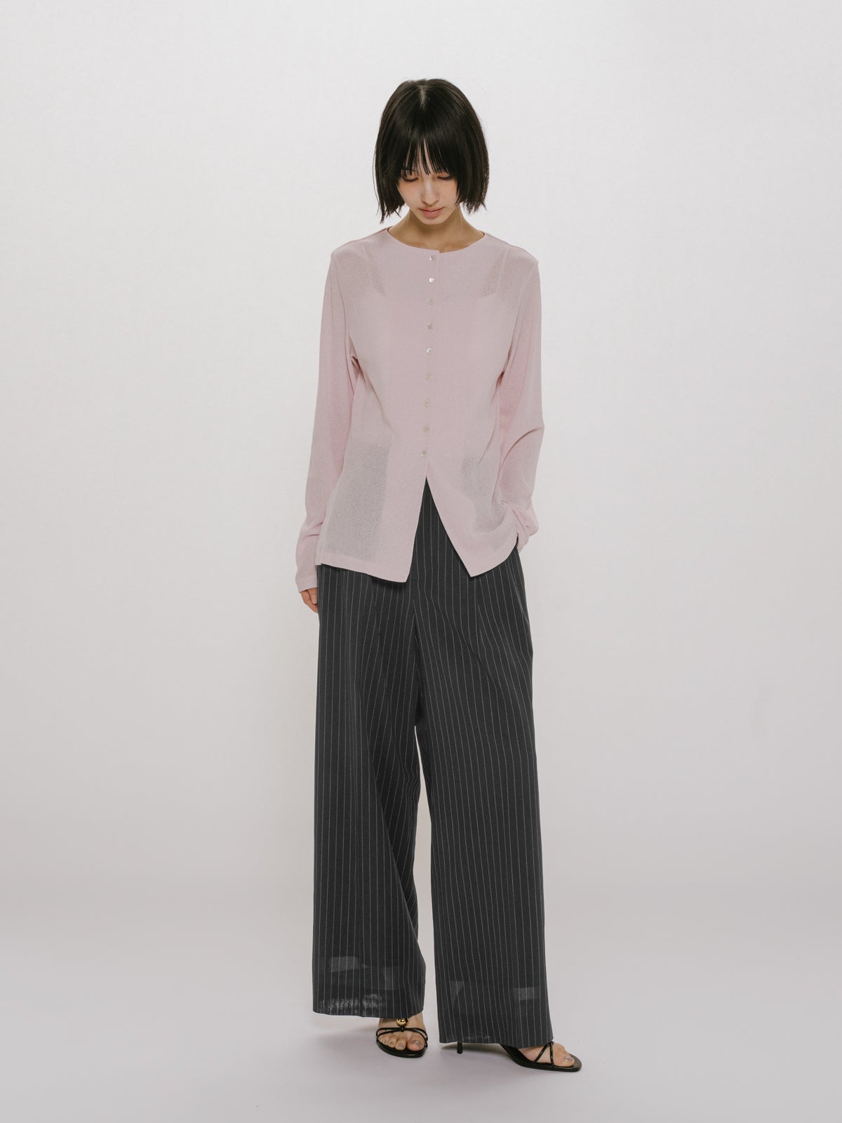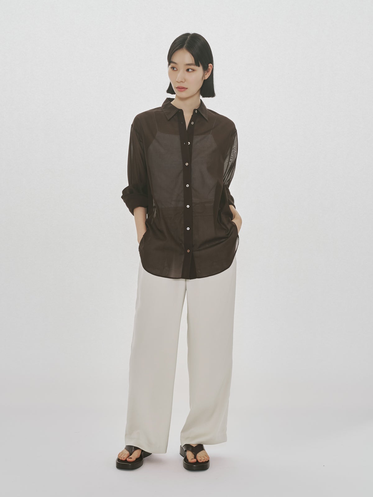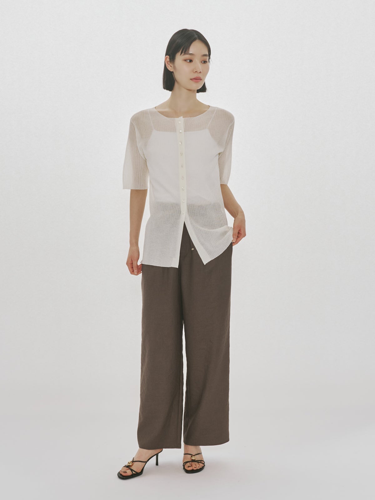 他の画像を見る お気に入りに登録する MIDIUMISOLID for Ladies MIDIUMISOLID for Ladies シアーワイドスラックス price ¥ 23,100 税込 NEW 26SS 販売期間 2026/04/09 20:00 〜