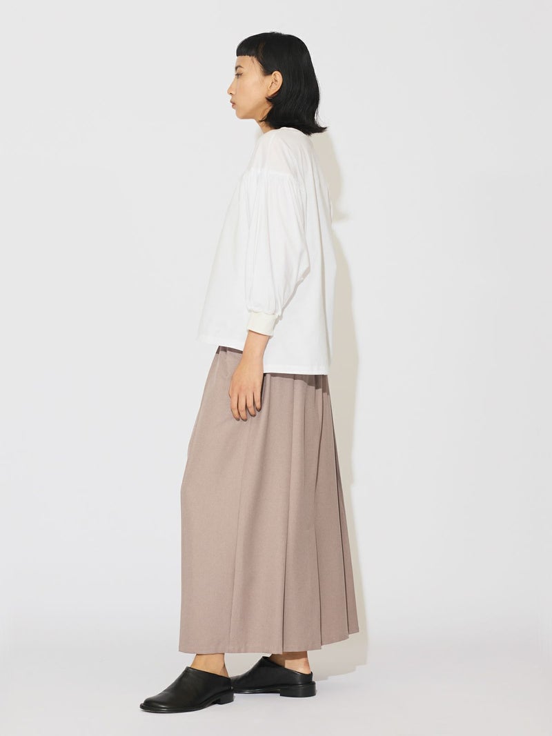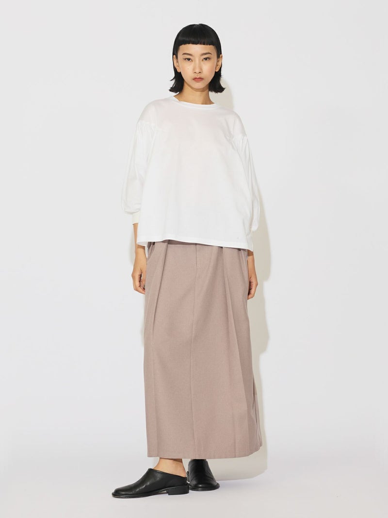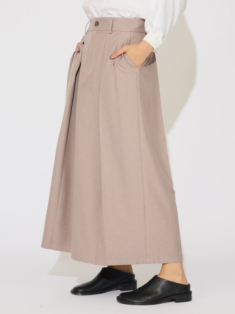 清楚なボックススカートをデザインしたインタックスカートです。広がりを抑えたフロントタックをインタックのデザインに仕上げた女性らしい1枚。ロング丈で足さばきの良いバックスリットを入れています。サラッとした夏場におすすめの素材で仕事着にも普段使いにもOK。ウエストはバック部分をゴムを使用しており、更にベルトループ使いなのでシャツインで腰回りをすっきりとさせた着こなしもおすすめ。ベルト使いでオシャレを楽しんでいただけます。同シリーズの2-162144/タックスラックスと2-172071/ハーフスリーブテーラードワイドジャケットも展開しておりジャケットとのセットアップで正装着にもおすすめ。インナーはラフにTシャツを合わせてもかっこよく着こなせます。