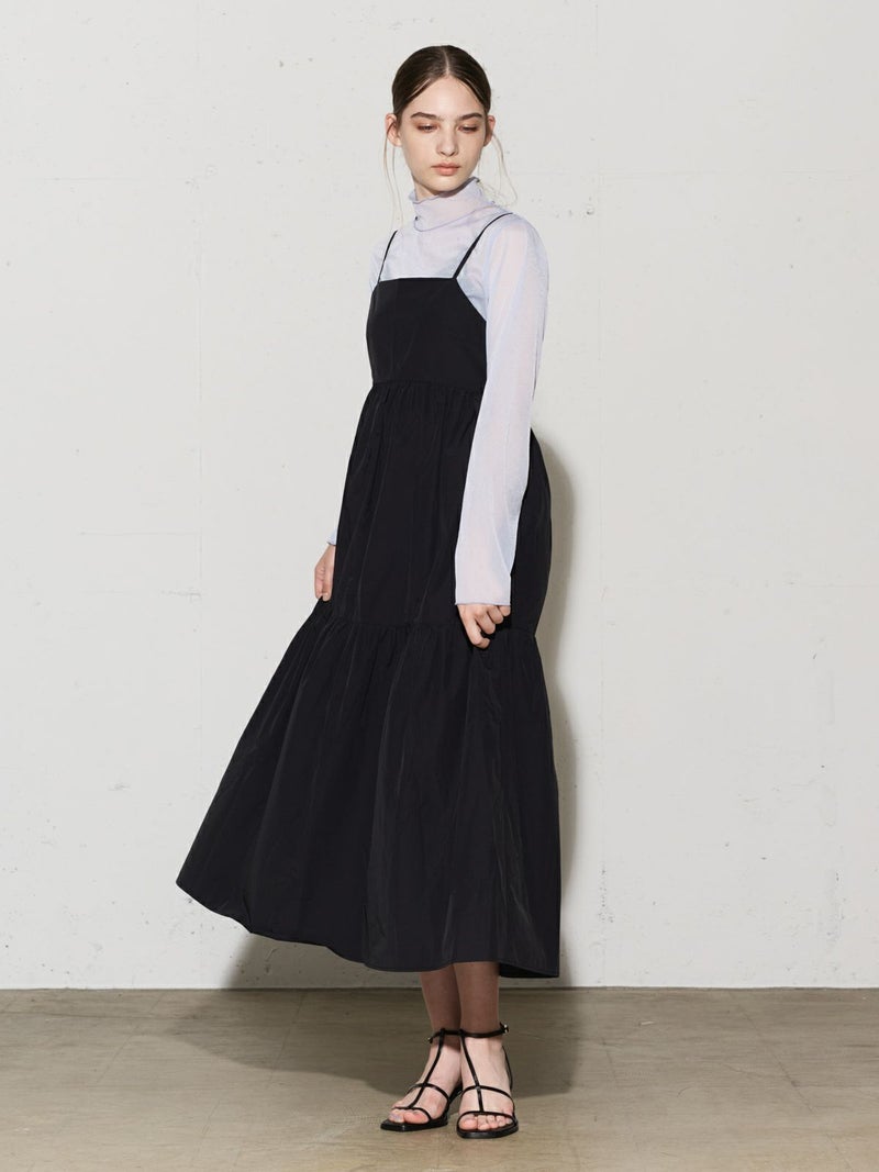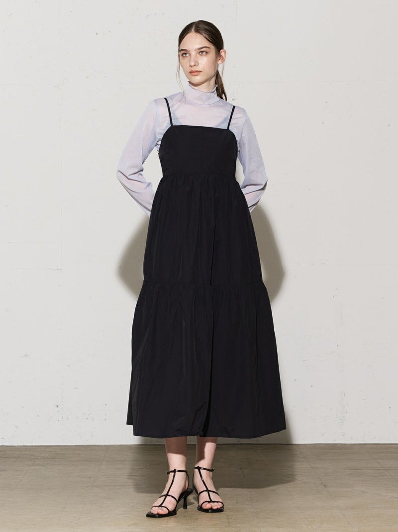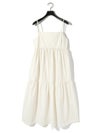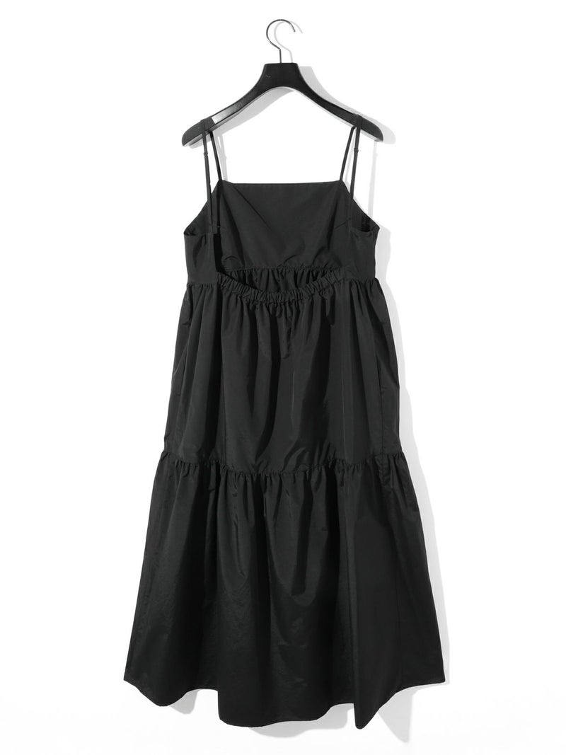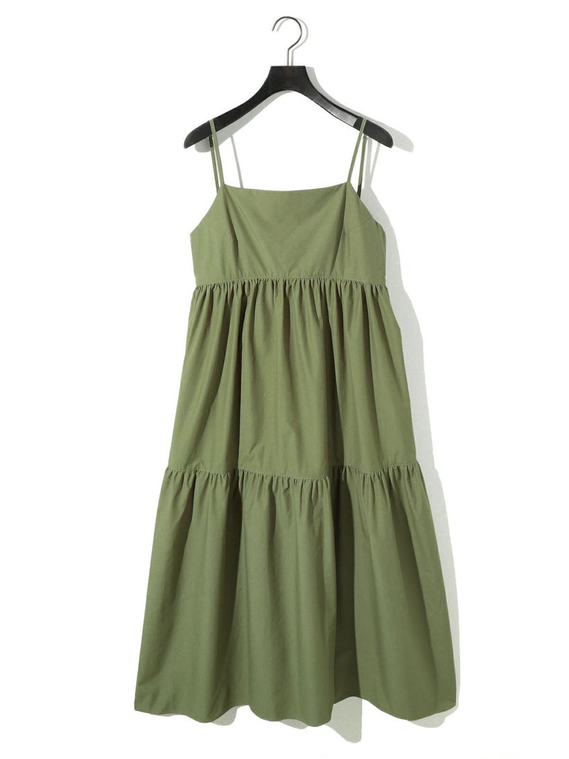 コットン×ナイロンを使用したティアードキャミソールワンピースです。胸下からたっぷりとしたギャザーをデザインしたフンワリ感のある女性らしいデザインが印象的。背中がしっかりと開いておりシンプルにTシャツとのコーディネートが良くあいます。華奢な肩紐は長さ調長が可能です。