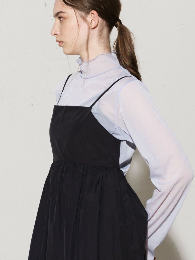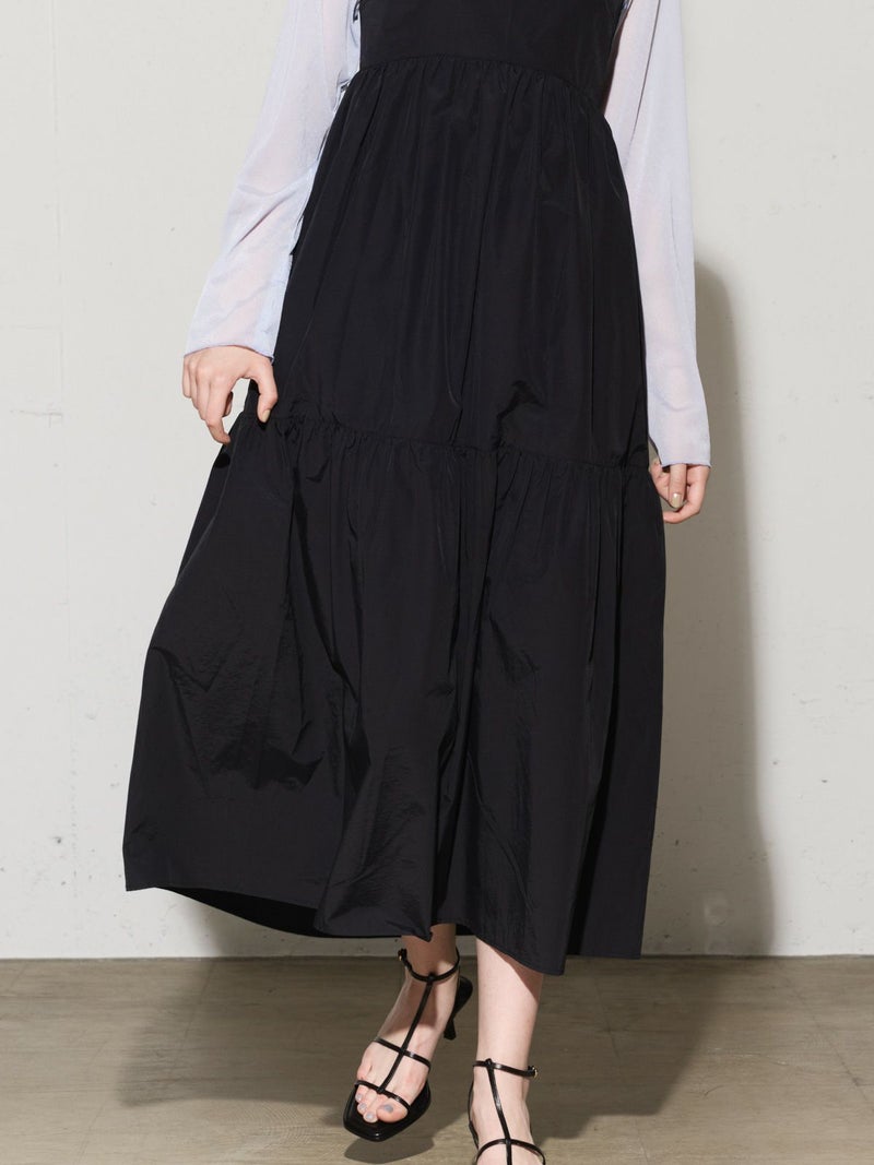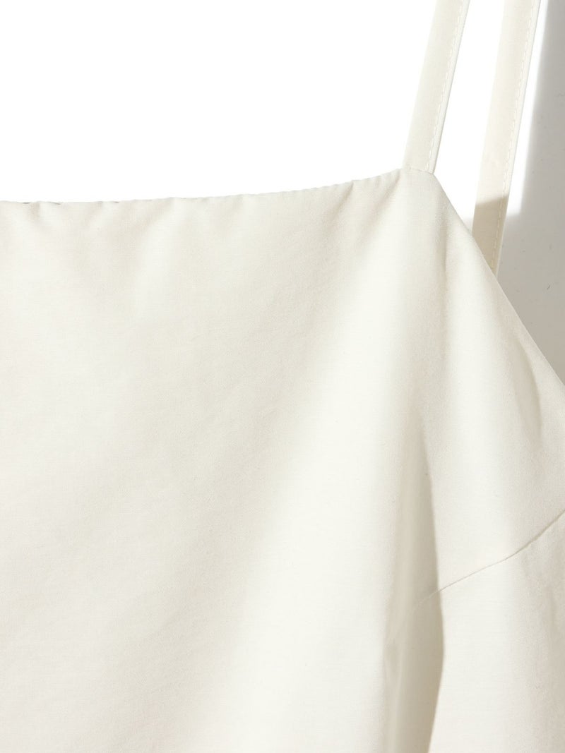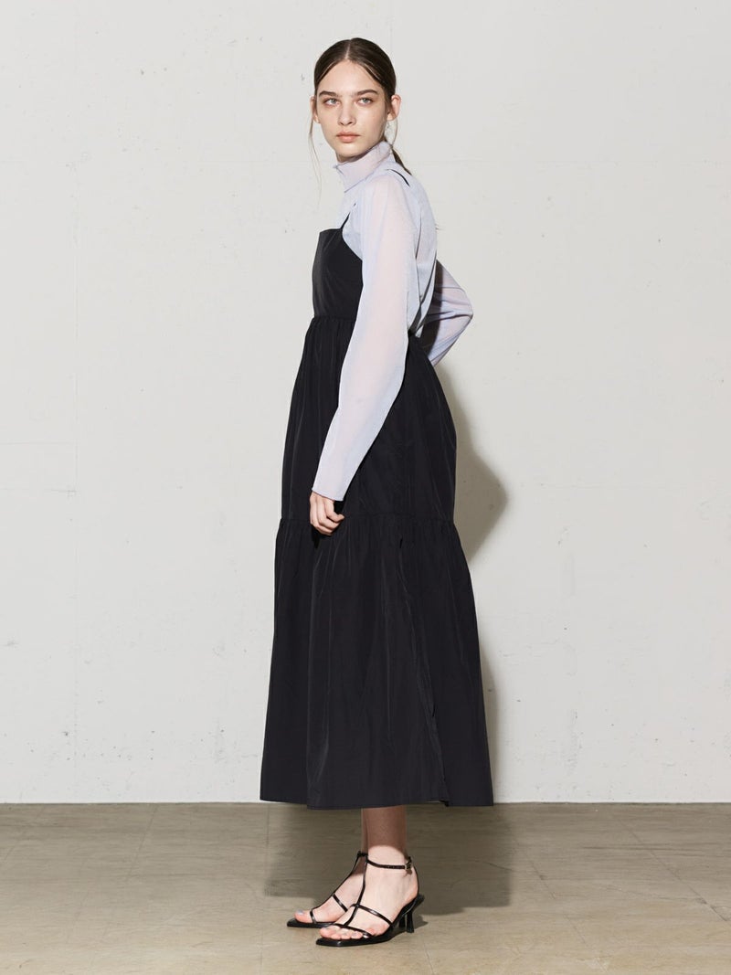 コットン×ナイロンを使用したティアードキャミソールワンピースです。胸下からたっぷりとしたギャザーをデザインしたフンワリ感のある女性らしいデザインが印象的。背中がしっかりと開いておりシンプルにTシャツとのコーディネートが良くあいます。華奢な肩紐は長さ調長が可能です。