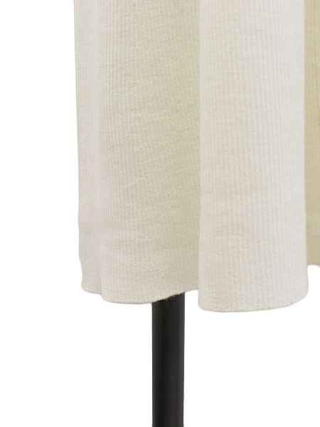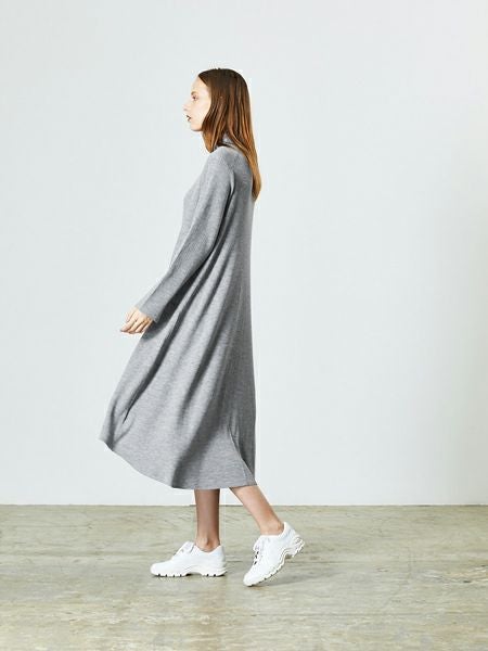 ニットならではの目増やしで、リブフレアを出した 落ち感あるシルエットに仕上げました。 ボトムとの重ね着にもお勧めです。 ウール100%。表面の毛羽がなくキレイ目なイメージで 手洗いOKでケアしやすいのも魅力です。