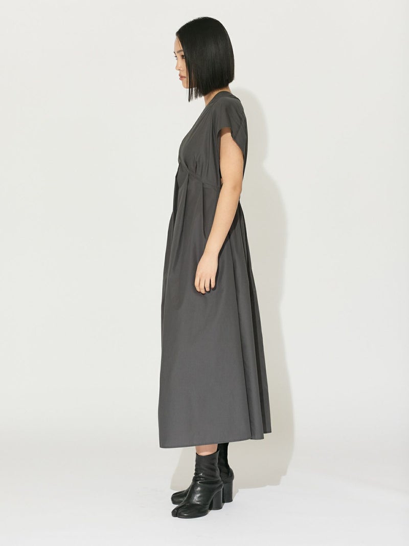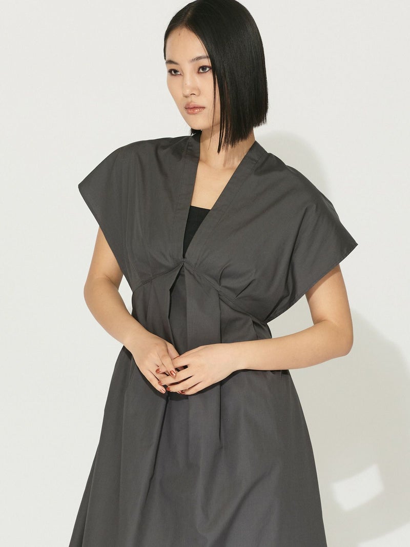 薄手ブロード素材を使用したクリアなルックスとしっかりしたハリのある風合いが特徴のフィットフレアワンピースです。ウエストを切替していることでメリハリのあるシルエットがポイント。肩を包む袖丈はアームが広く細見えしてくれます。インナー使いにタートルを入れると秋冬対応として素敵に季節感を表現します。しわになりにくく縮みにくい生地感でオケージョン対応もできる女性らしく上品な雰囲気を演出した1枚。