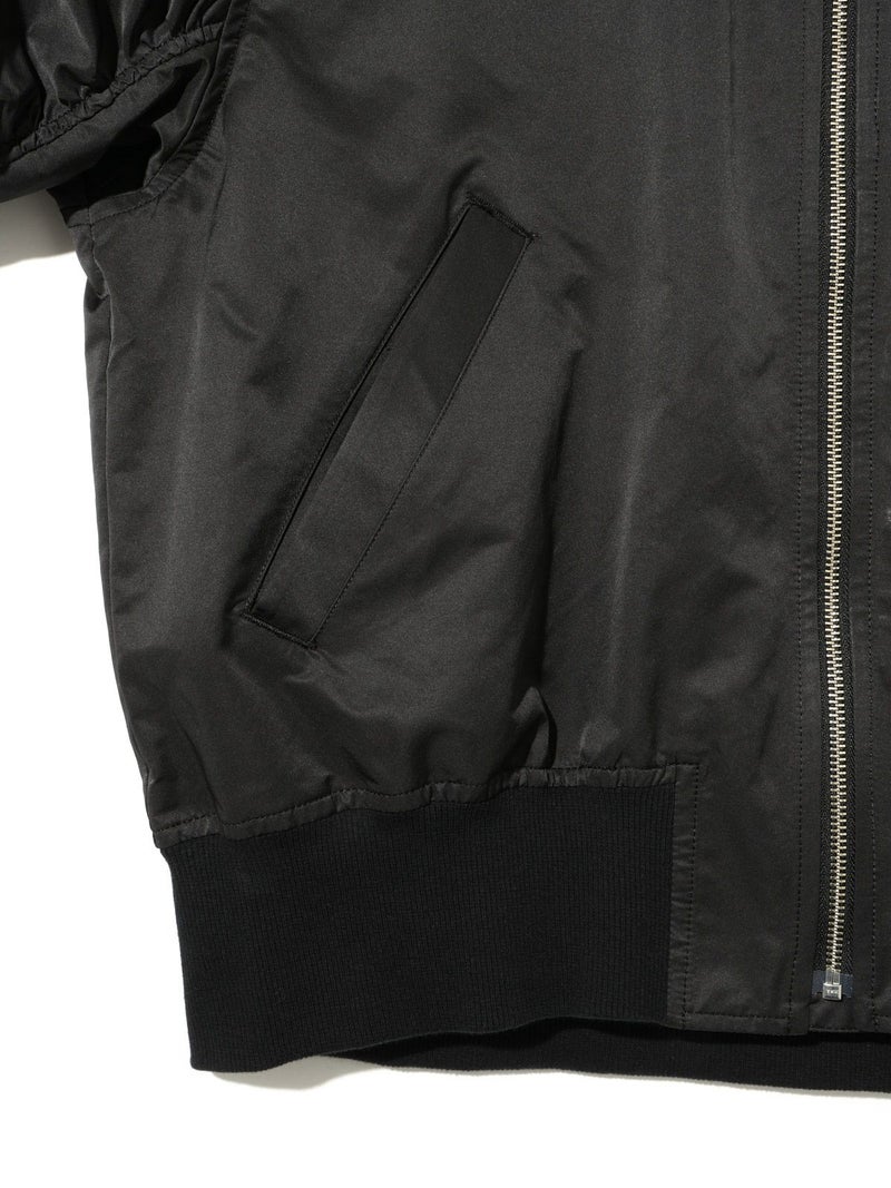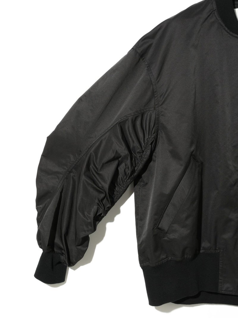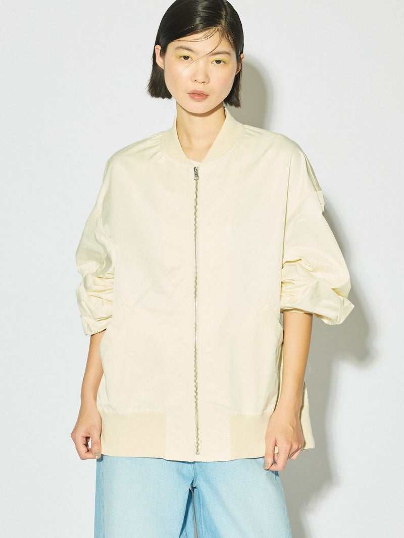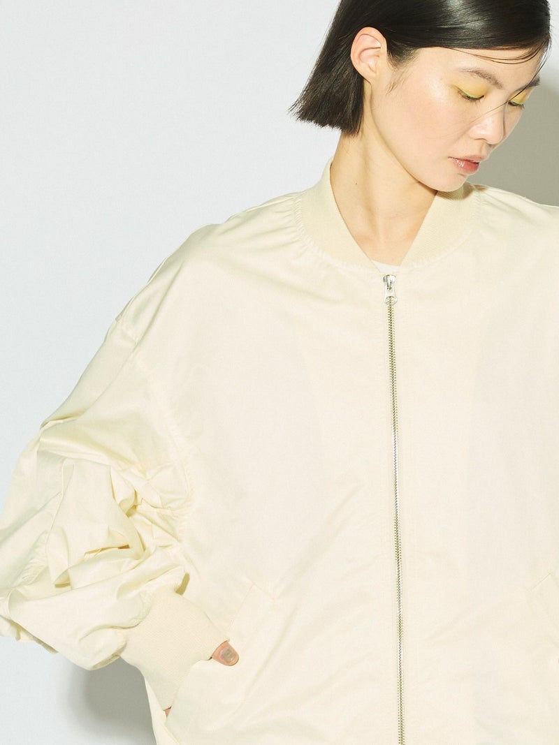 春の立ち上がりにさらっと羽織ってほしいアイテム、ボリュームスリーブMA-1です。タフタ素材できれい見えする素材であえてメンズの方でも着用できるサイズ感に仕上げました。袖のギャザー感がポイント。メンズライクな着こなしもスカードやワンピースも素敵に着こなせる1枚です。