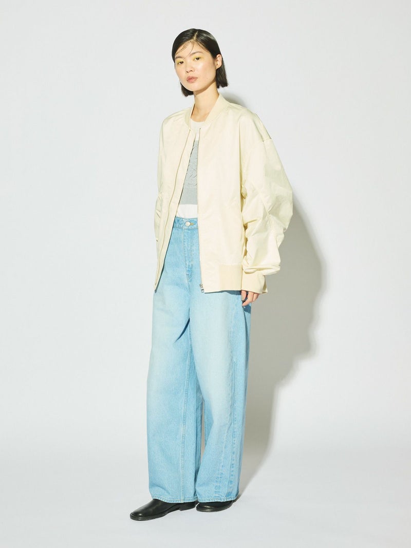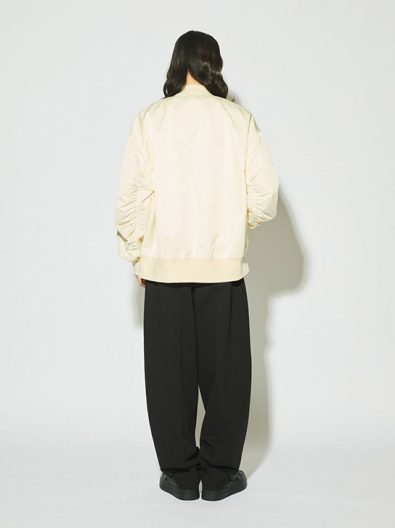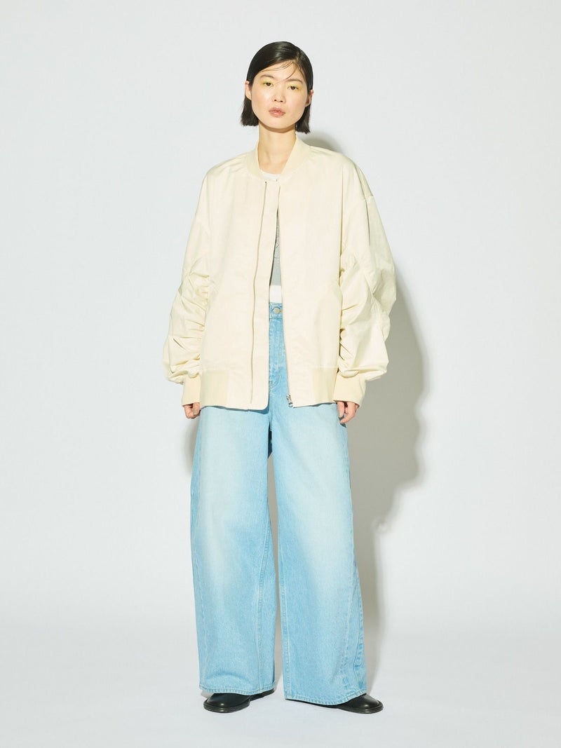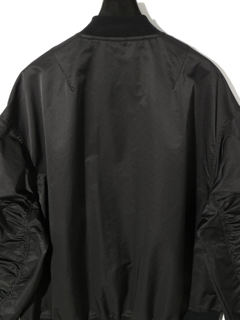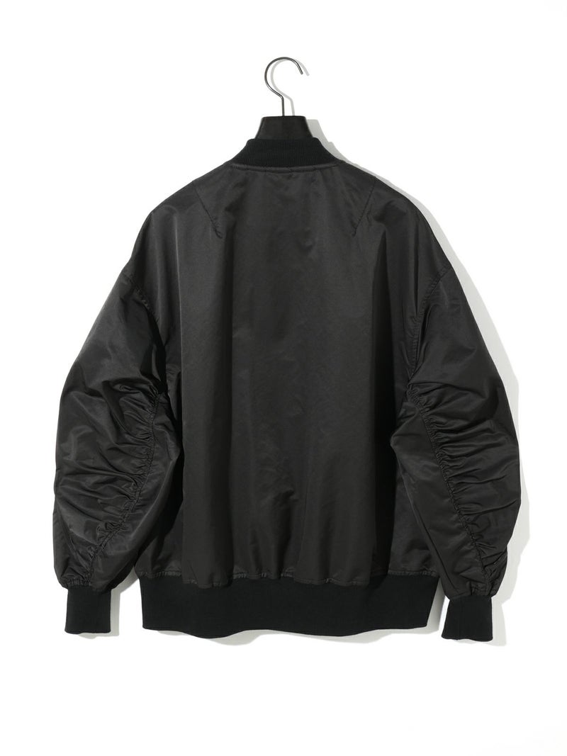 春の立ち上がりにさらっと羽織ってほしいアイテム、ボリュームスリーブMA-1です。タフタ素材できれい見えする素材であえてメンズの方でも着用できるサイズ感に仕上げました。袖のギャザー感がポイント。メンズライクな着こなしもスカードやワンピースも素敵に着こなせる1枚です。