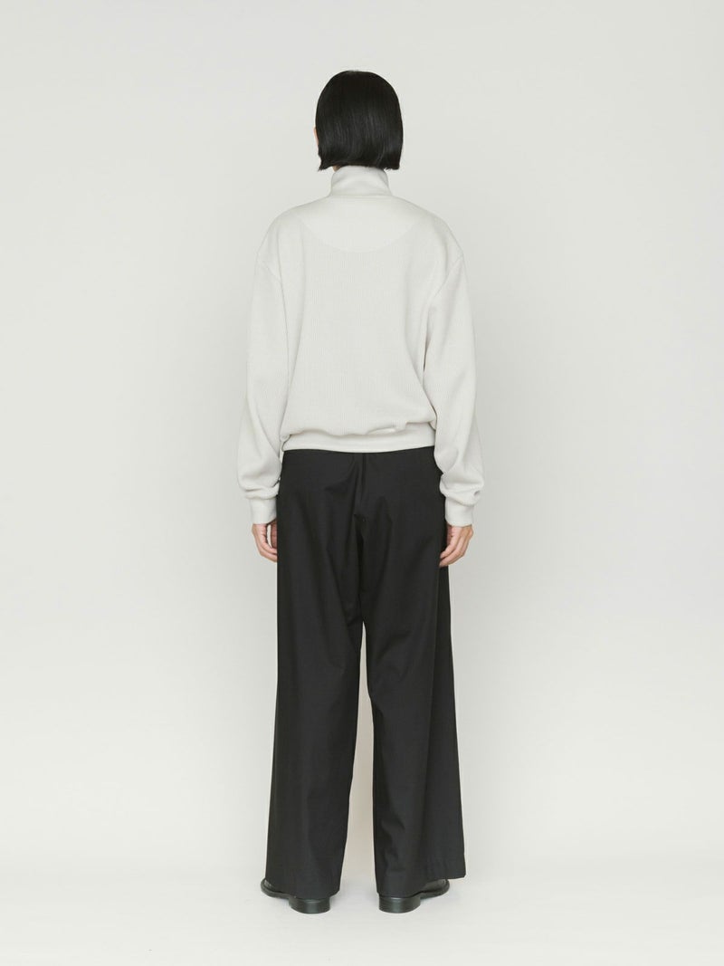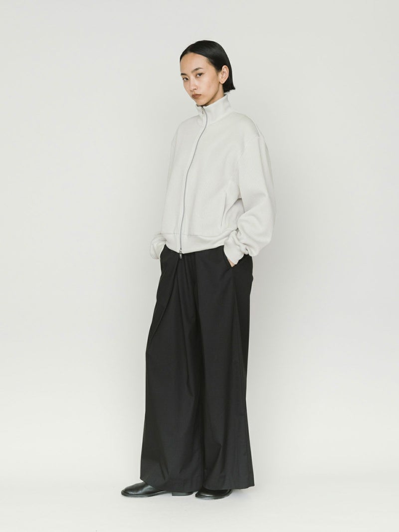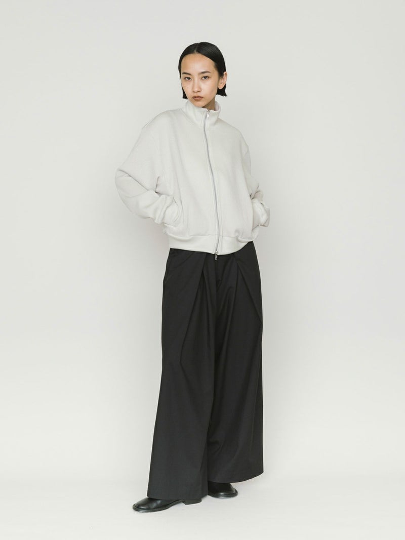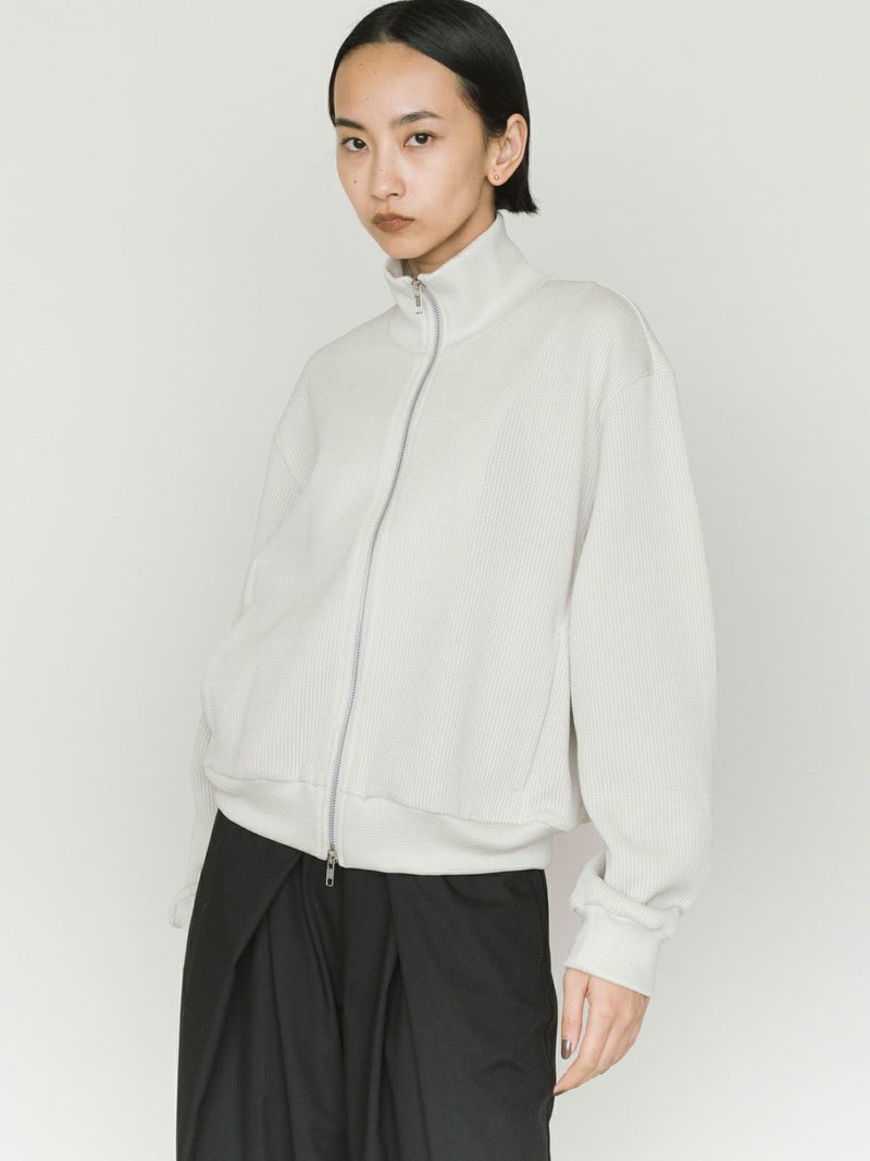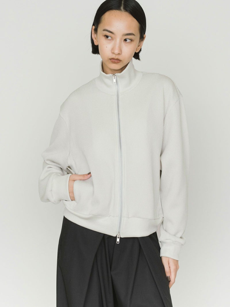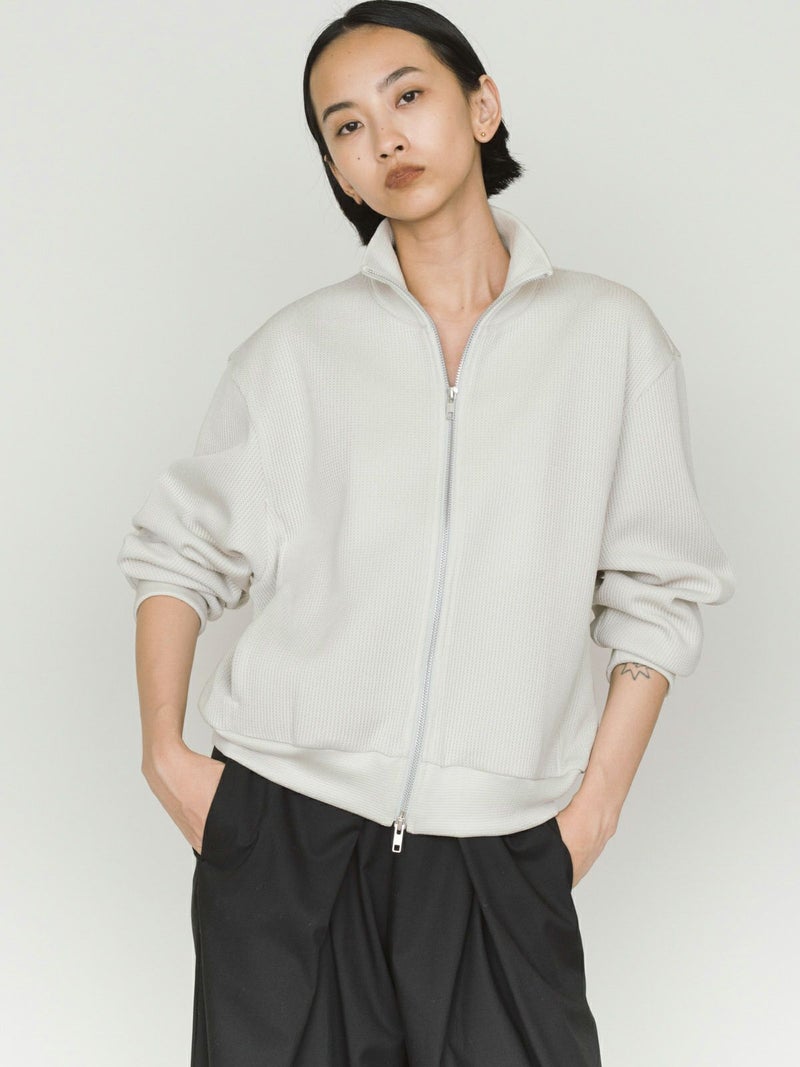 ヒップにかかるほどの丈感で、シャツやインナーを重ねても窮屈にならず、ほどよいゆとりをもって着用できます。Wジッパー仕様なので、下から少し開けてシルエットに動きをつけたり、その日の気分でバランスを調整できるのも魅力です。シンプルながらも着こなしの幅を広げてくれる1枚です。