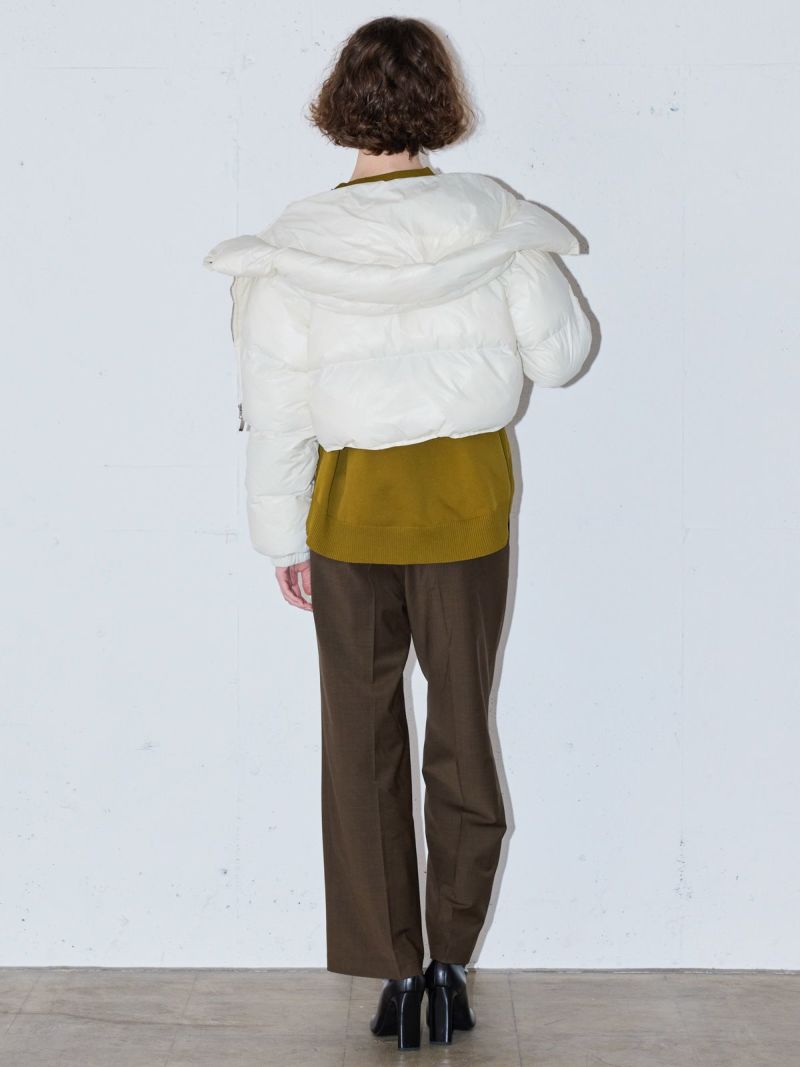 MIDIUMISOLIDの冬のオススメアウターが入荷しました。フーデッドパディングブルゾンです。粒状の綿を詰め込むことで、ダウンのようなボリューム感と軽さを兼ね備えた中綿を使用。ショート丈のコンパクトなサイズ感と程よくボリューム感のあるデザインが特長。小柄な方にもスッキリと着ていただけるサイズ感となっています。首をしっかりと包んでくれるハイネックと袖口のゴムは風通し防止になり暖かさを保ってくれます。上下稼働式のフロントジップ使用。裾はドロスト付き、表面はナイロン生地で光沢感のあるカジュアルなブルゾンを演出。薄着でも大変暖かな1枚です。