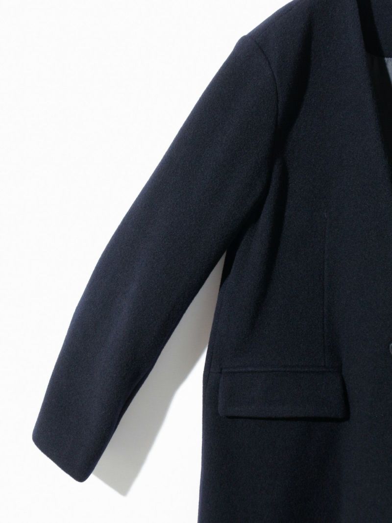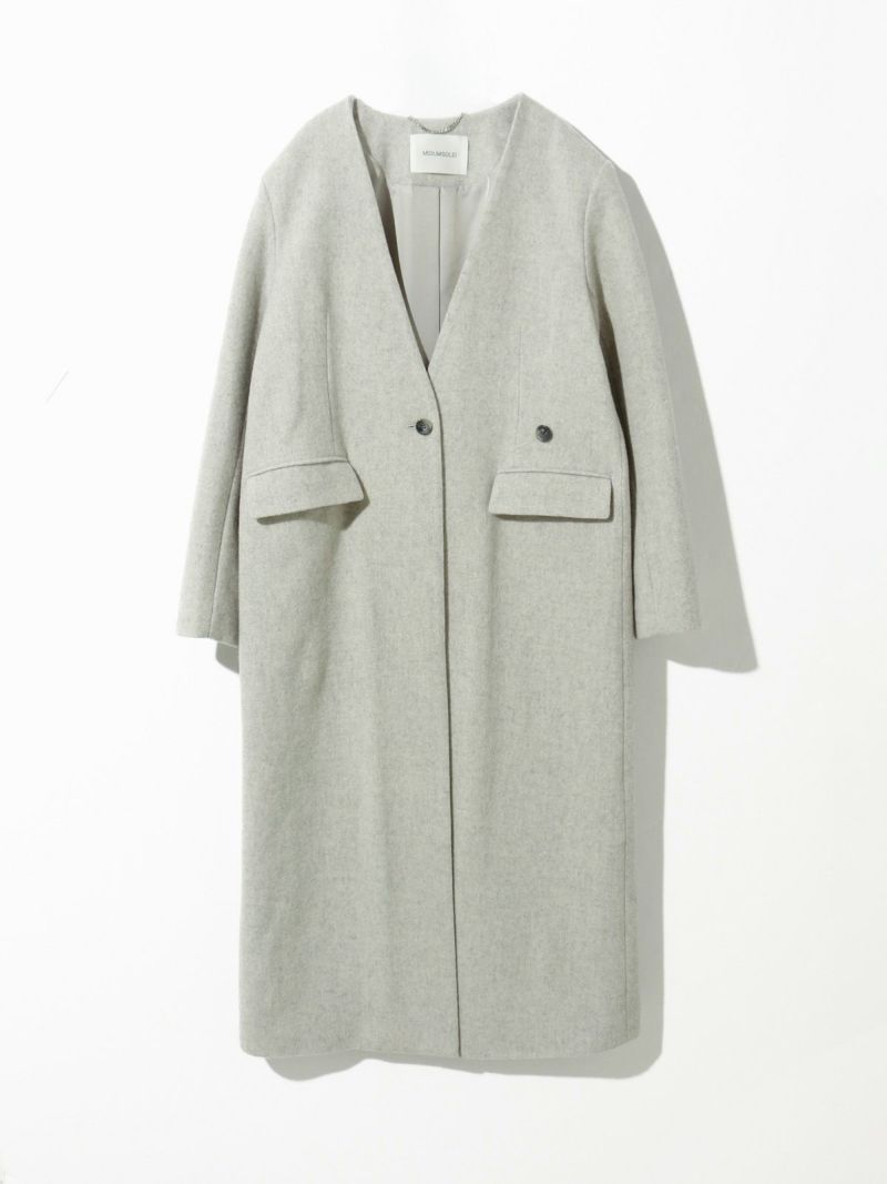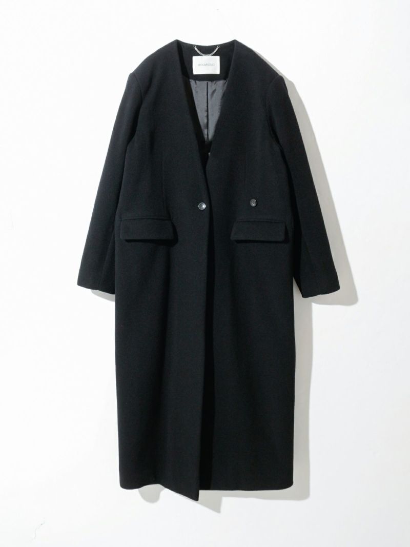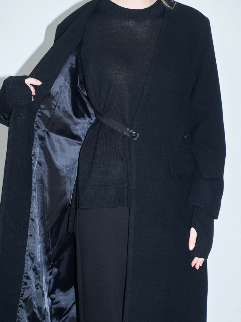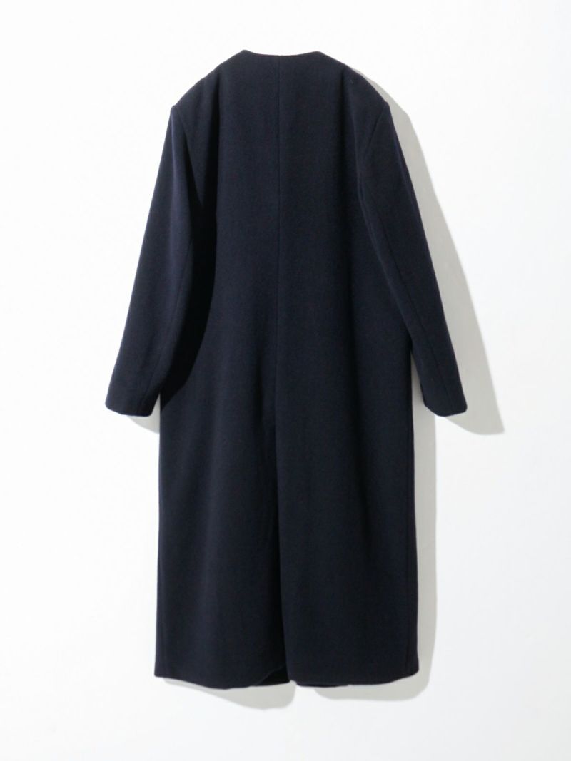 足元までストレートロングのノーカラーコートです。スッキリとしたノーカラーと1ボタン留めのシンプルなデザインが特長。中ループとバックスリットを施したデザインで細かなところにも着やすさを配慮されています。裏地付で風通しも少なく暖かで足さばきも良く着やすい1枚。スレンダーに見えシックな大人の魅力を演出したコートなので、ストールやマフラーなどの小物使いをすることで首元はより暖かく洗練されたお洒落を演出できるのもポイントです。