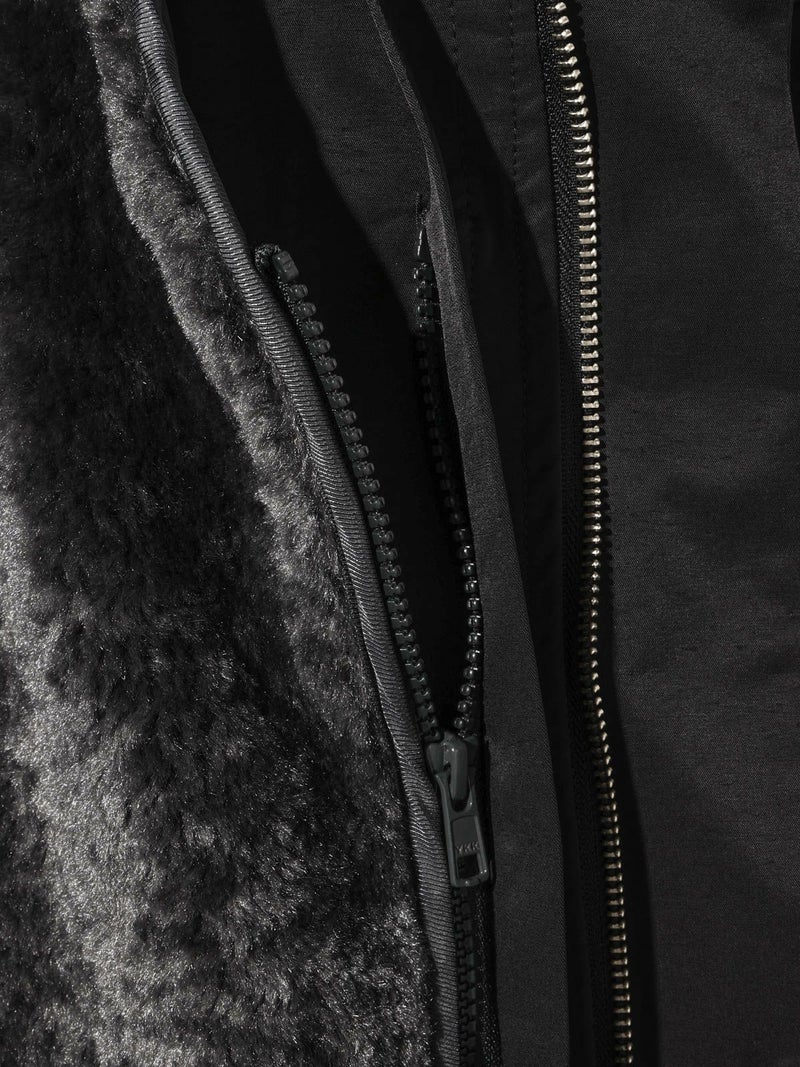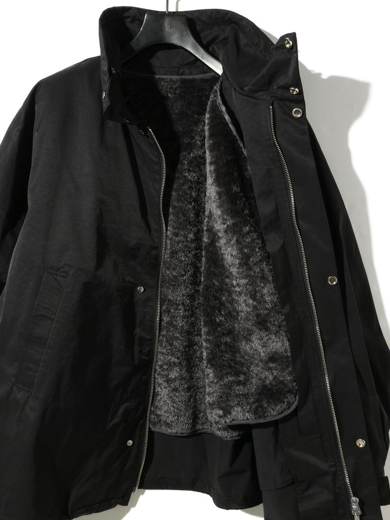 MIDIUMISOLID実績型のライナー付き2WAYコートを、今季のムードに合わせて素材と丈をアップデートしたライナー付きコートです。表地には、ほどよい微光沢としなやかなぬめり感が特徴のコットンナイロン素材を使用。コットンの自然な風合いとナイロンの軽さ・耐久性を兼ね備えた、上品で機能的な素材です。ライナーは、表地の上品な質感に馴染む毛足のボアを採用。カジュアルになりすぎず、柔らかな光沢感が魅力です。ライナーはベストとして単体でも着用でき、コートの上から羽織るスタイリングもおすすめ。これまでの2WAYコートをお持ちの方にも新鮮な印象でお楽しみいただける一枚です。