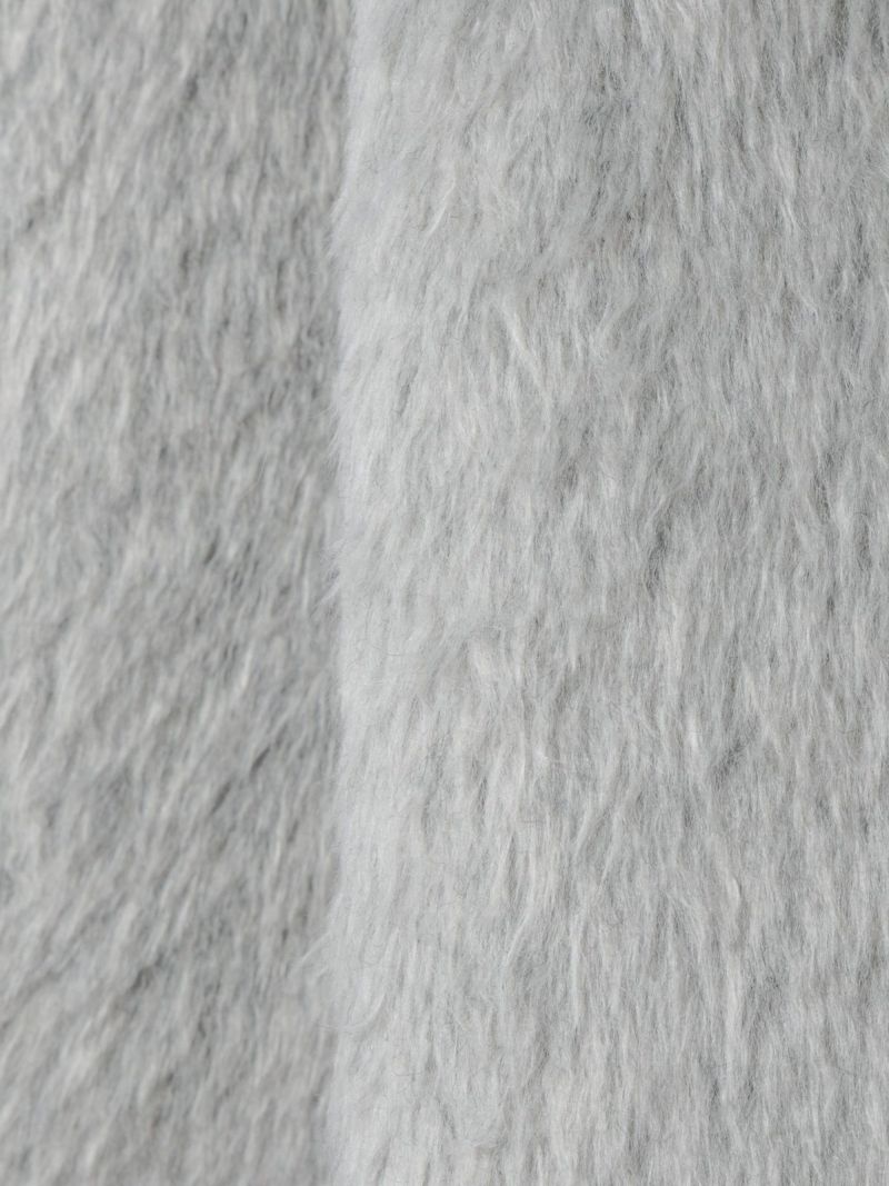 ヒップの2/3ほどを覆う丈感で、ゆったりとリラックスできる着用感。軽さのあるふんわりとしたシャギー素材が心地よく、保温性を感じられる1枚です。
