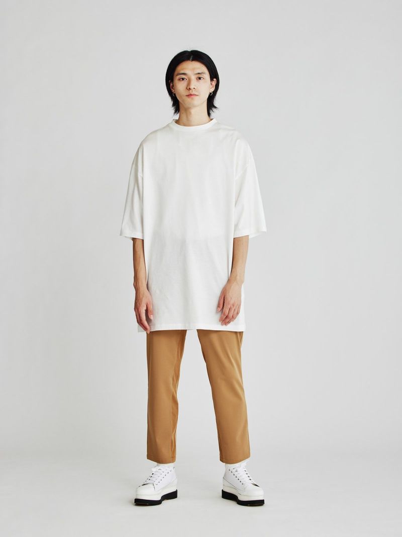 「MIDIUMISOLID」のバックロゴプリントが印象的なメンズビックシルエットTシャツです。身幅・袖幅をかなり大きめのビッグシルエットで設計。ドロップショルダーでこなれ感のある着こなしに。INにシャツやロンTなどを合わせてベスト感覚でレイヤードもおすすめ。7分袖くらいでロングシーズン着回し力の高い1枚です。「MIDIUMISOLID」のロゴがぶれたデジタルグリッチなデザインロゴが印象的。スタイリッシュでこなれたスタイルでいつものスタイリングを格上げしてくれます。ユニセックスで女性の着用もおすすめ。身長160cmの方で膝にかかるくらいの丈感になります。すっきりとしたレギンスやパンツをあわせてリラックスしながらかっこいいスタイリングに。しっかりとシャキっとしていながらソフトで着心地の良いコットン素材。