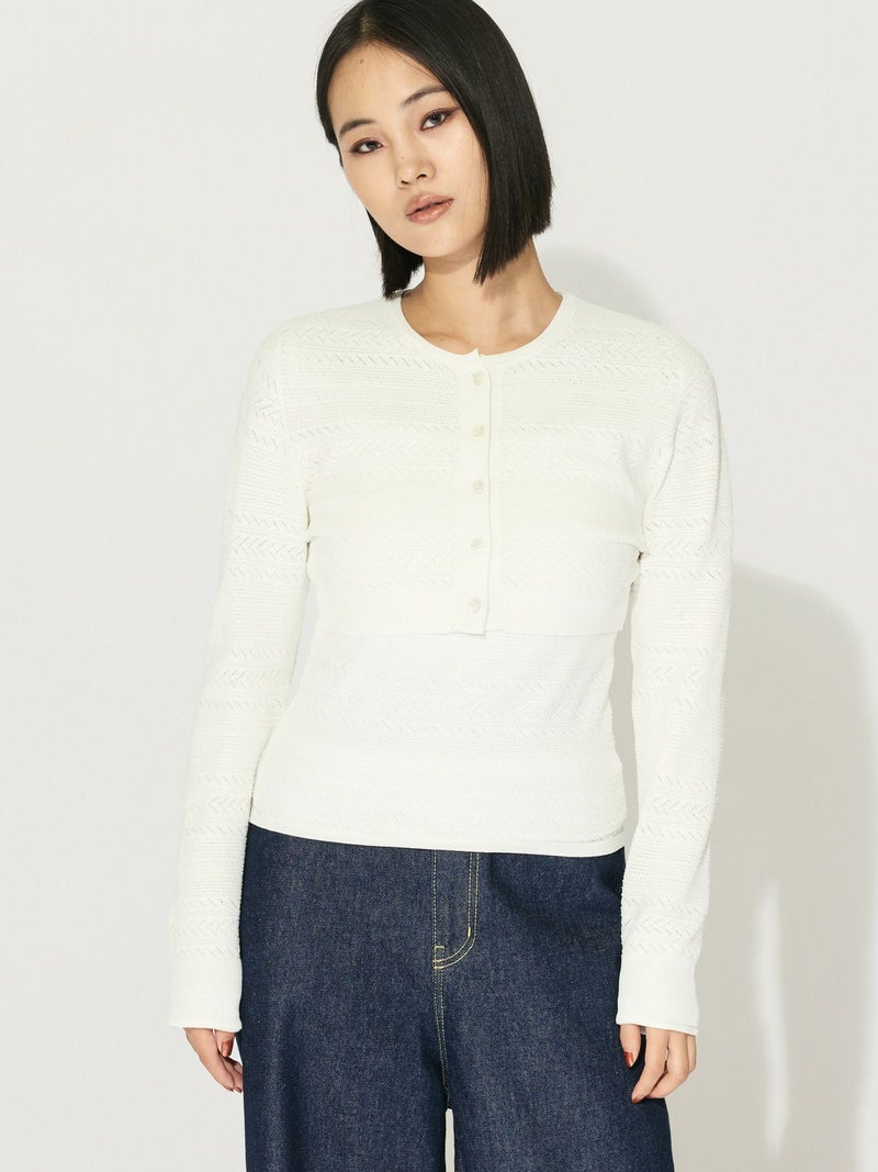 MIDIUMISOLID for Ladies MIDIUMISOLID for Ladies レース編みショートカーディガン