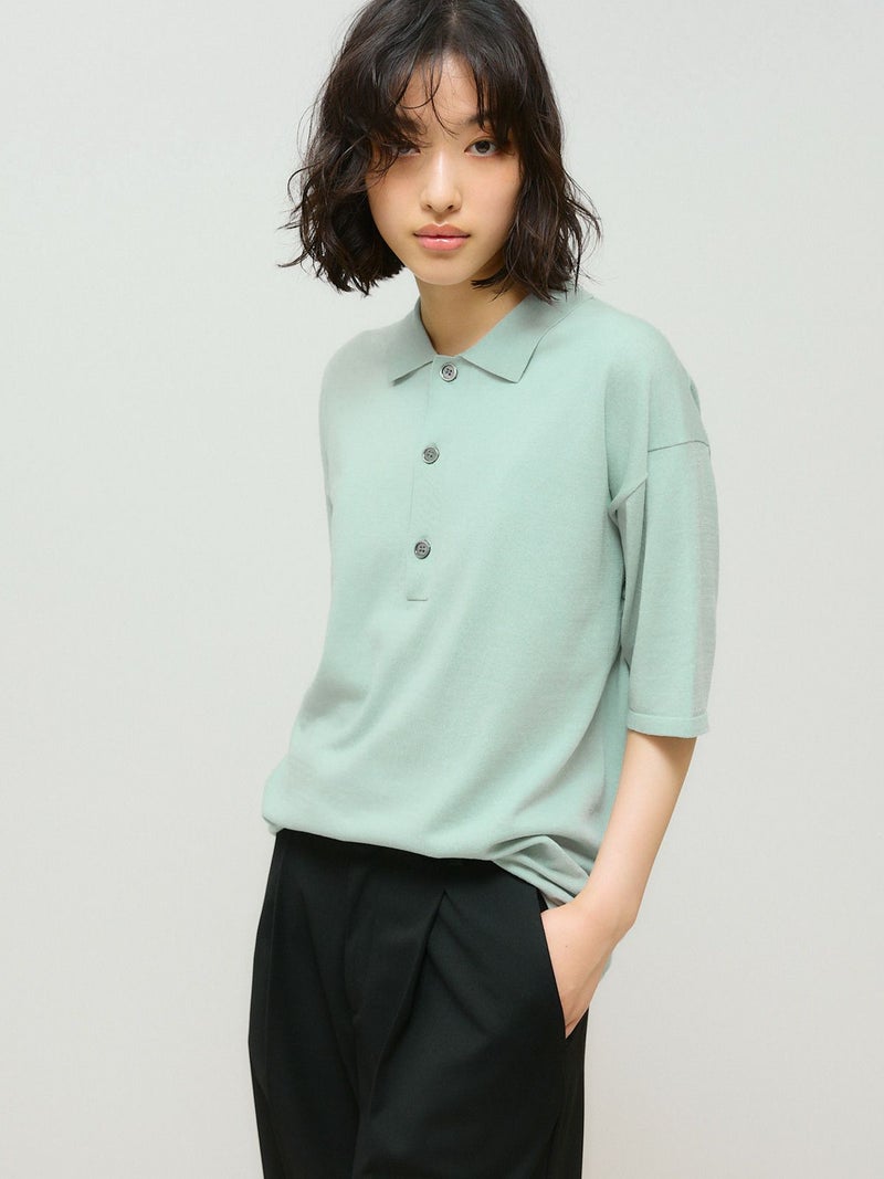 ユニセックスのサマーニットシリーズ、ポロニットプルオーバーです。ポロシャツ型のベーシックなデザインが特徴で程よい肉感で使いやすい1枚となっています。メンズでジャストサイズ、レディースで少し大きめのシルエットを表現します。サラッとした素材感で、夏場にも快適に着用できます。Tシャツ代わりにコーディネート可能な着回しアイテムです。同シリーズ2-125001/ハーフスリーブニットプルオーバーも展開。