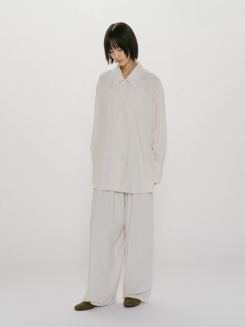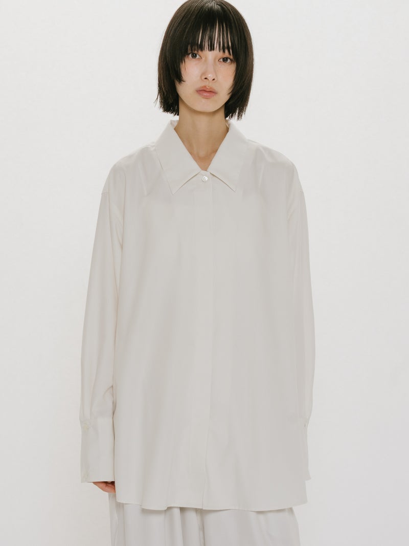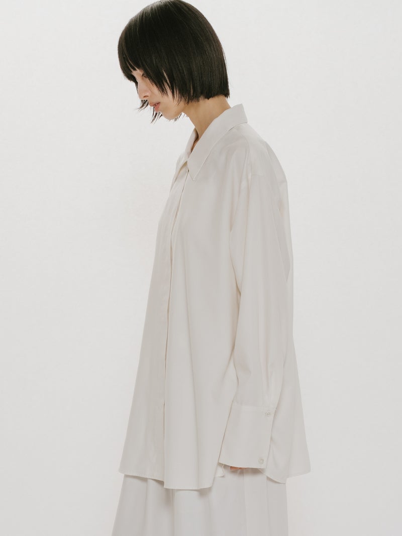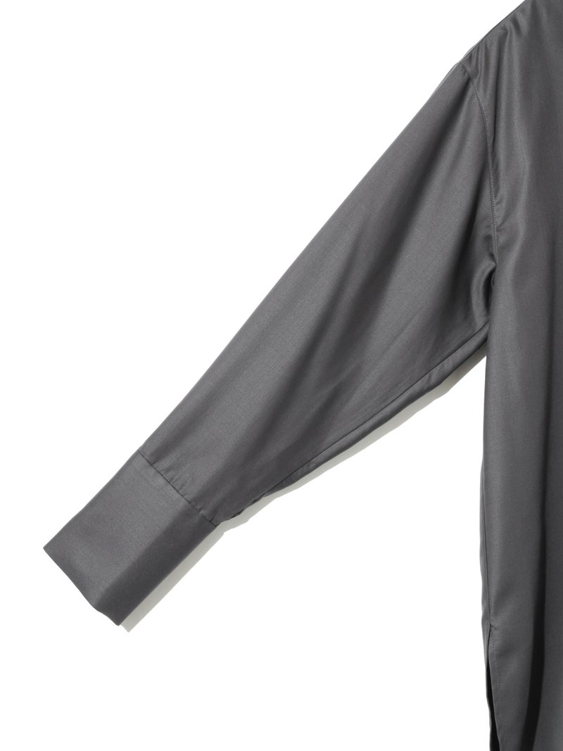 2025/Autumn collectionで展開し好評いただいたリラックスキュプラシリーズ(3-132218)を素材変更して仕上げたリラックスロングカフスシャツです。光沢感が減りしわにもなりにくい素材に変更したため、よりデイリー使いしていただきやすくなりました。またUVカット・吸水速乾・接触冷感と機能性のある素材なので、これからの季節にさらにおすすめです。比翼ボタンになり、袖もロングカフスでさらっと落ち感が出るように変更。落ち感やリラックス感はそのままで、より洗練されたシャツに仕上がっています。同シリーズ1-162207/リラックスパンツも展開。