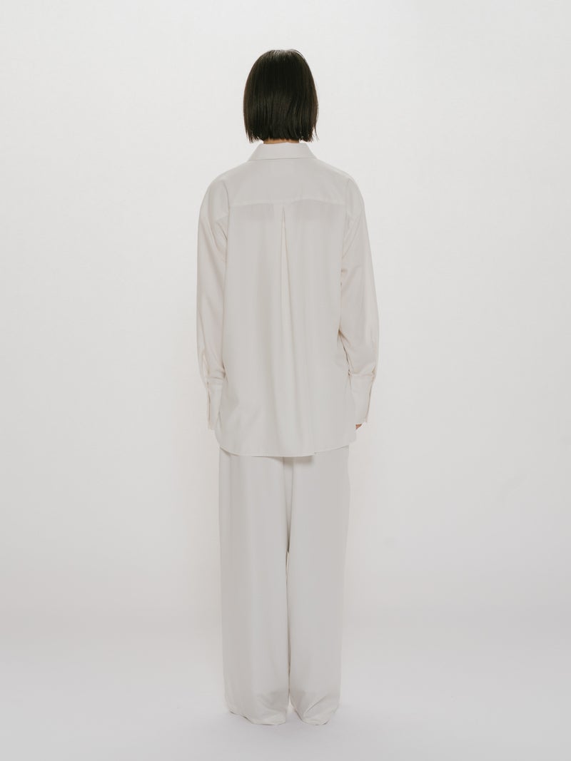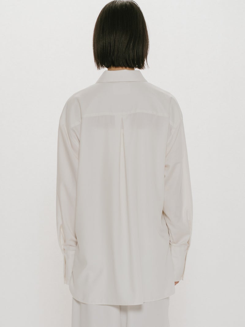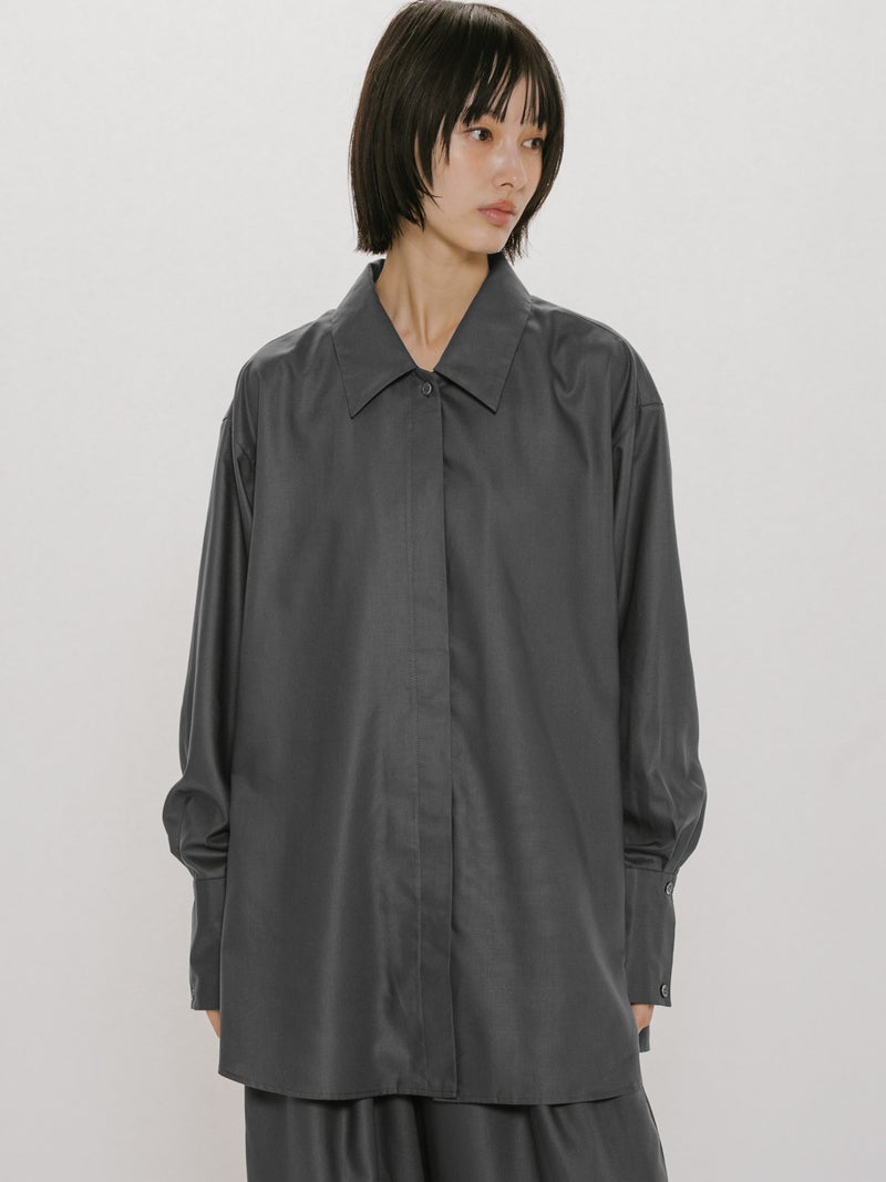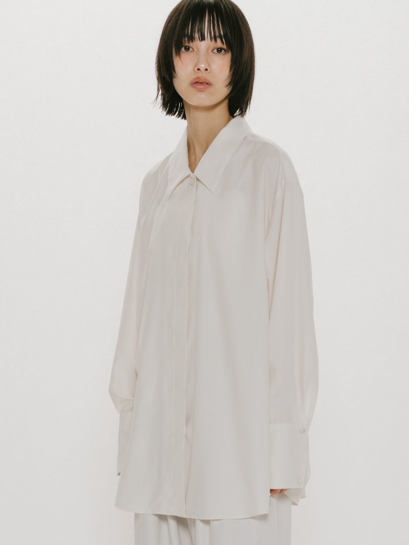 2025/Autumn collectionで展開し好評いただいたリラックスキュプラシリーズ(3-132218)を素材変更して仕上げたリラックスロングカフスシャツです。光沢感が減りしわにもなりにくい素材に変更したため、よりデイリー使いしていただきやすくなりました。またUVカット・吸水速乾・接触冷感と機能性のある素材なので、これからの季節にさらにおすすめです。比翼ボタンになり、袖もロングカフスでさらっと落ち感が出るように変更。落ち感やリラックス感はそのままで、より洗練されたシャツに仕上がっています。同シリーズ1-162207/リラックスパンツも展開。