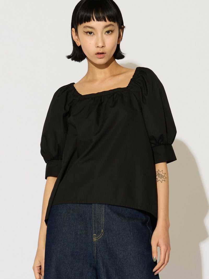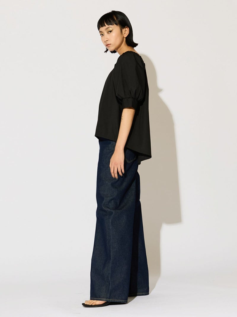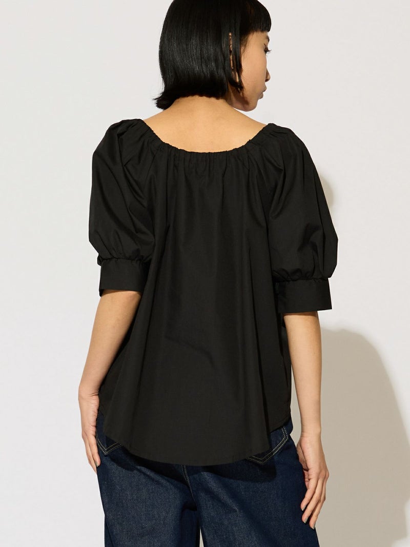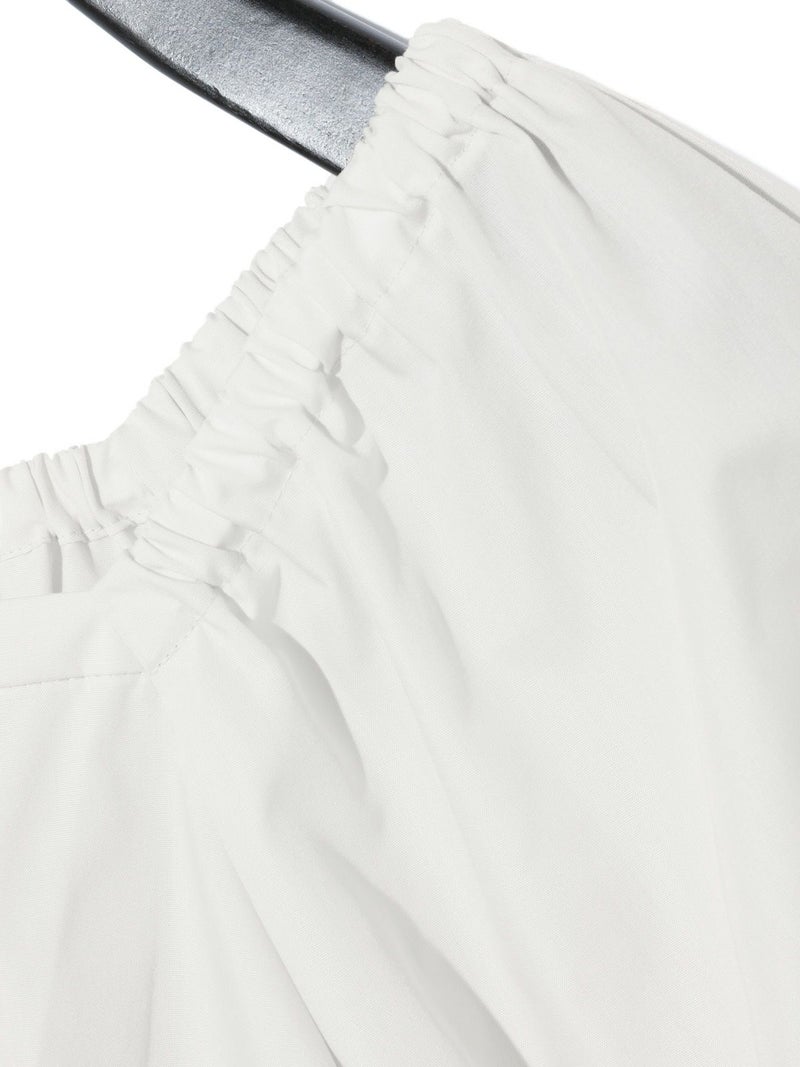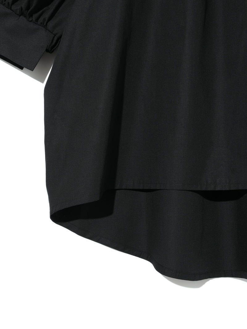 シャリとハリ感のある夏の季節におすすめの素材を使用した2WAYトップス。ゆったりとしたシルエットの女性らしいシャツに仕上げました。フロントスクエアがシャープな首元を表現しており、バックにゴムを使用したことでオフショルダーで着用できるようにデザイン。肩を出してワイルドに着こなしても素敵です。ボリュームが出すぎないように工夫をしたシルエットなので、同シリーズの2-16209342/タックギャザーボリュームスカートともセットアップで女性らしい着こなしを演出します。