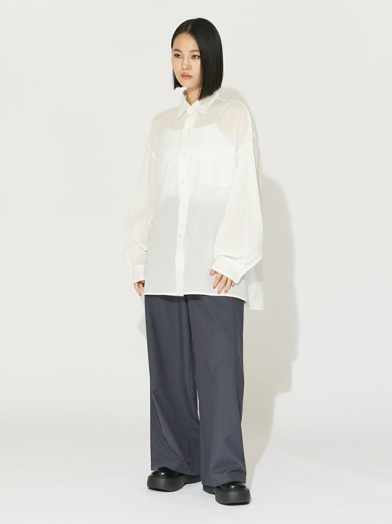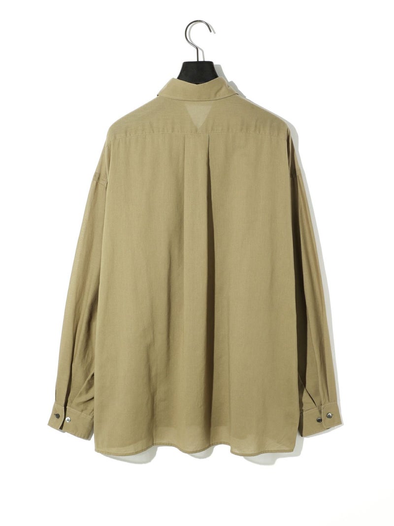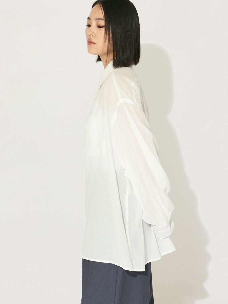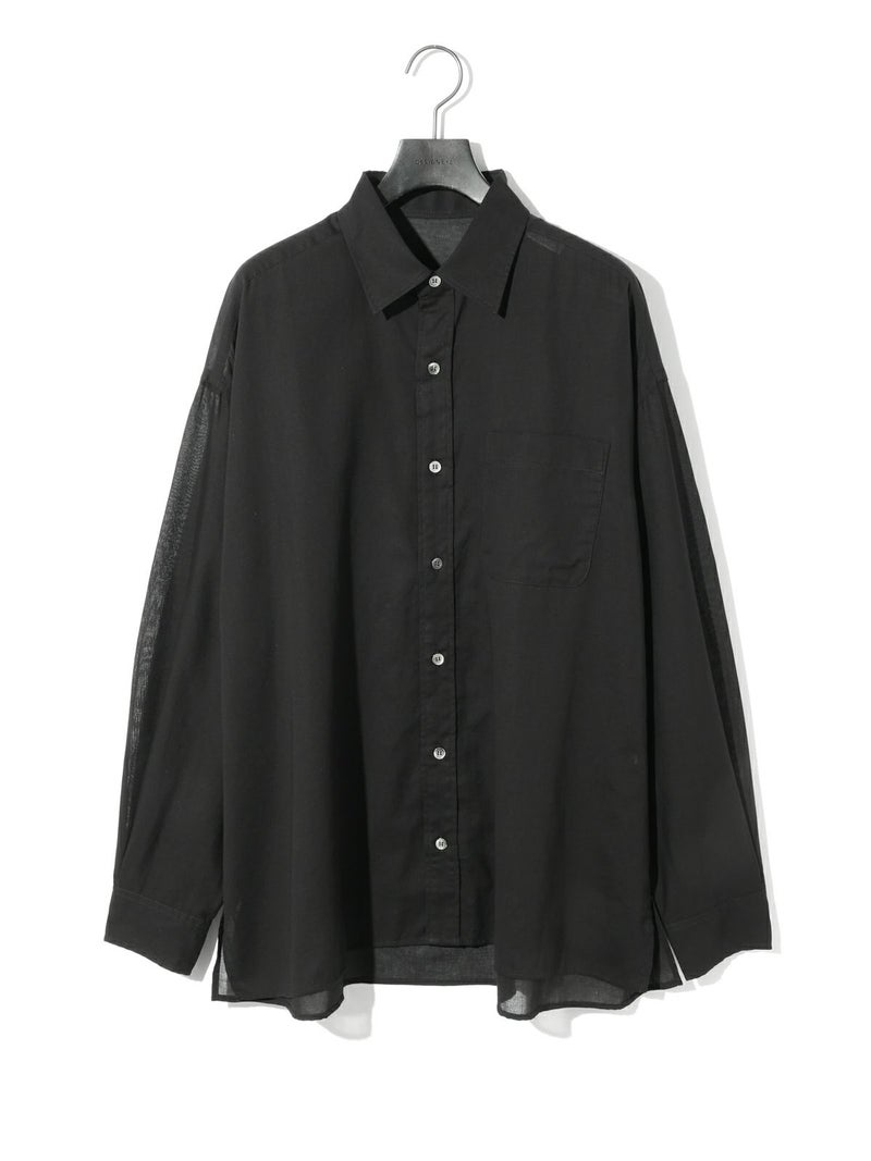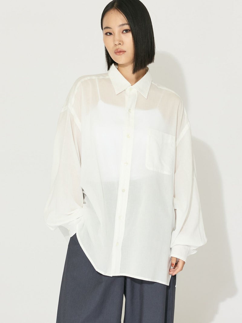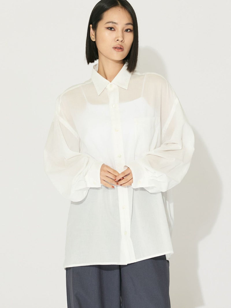 爽やかな透け感のあるシアービックシャツ。晩夏から秋に最適な長袖シャツは季節の変わりと共に自然にコーディネートに取り入れやすいアイテムです。レギュラーカラーのベーシックなデザインは羽織ってもインナー使いにでも着回し抜群。ゆとりのあるビッグサイズなので風通しもよく晩夏の時期や春先にも重宝します。