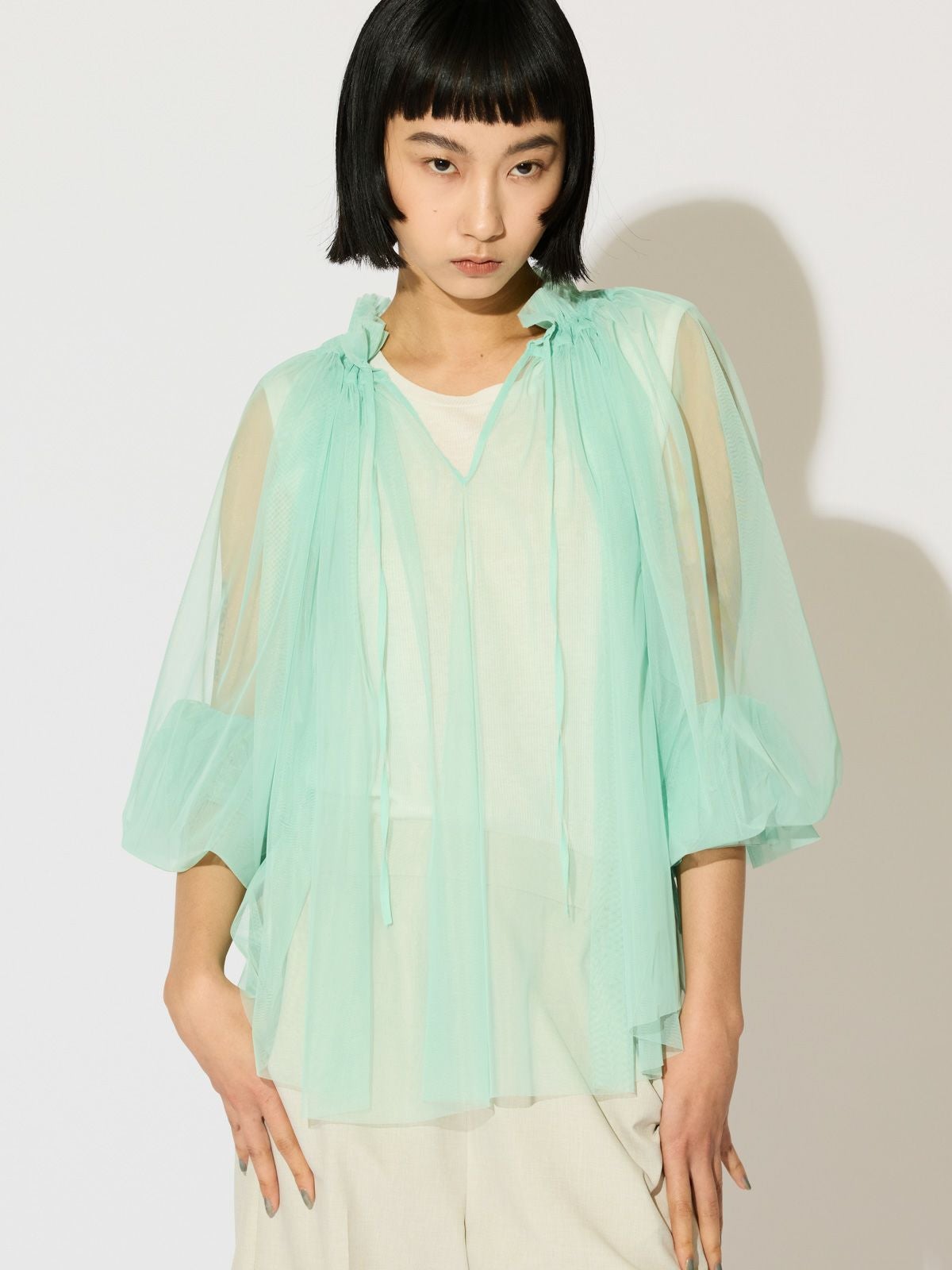 他の画像を見る お気に入りに登録する MIDIUMISOLID for Ladies MIDIUMISOLID for Ladies チュールギャザーブラウス[A] price ¥ 12,980 税込 ARCHIVES 販売期間 2026/02/27 20:00 〜