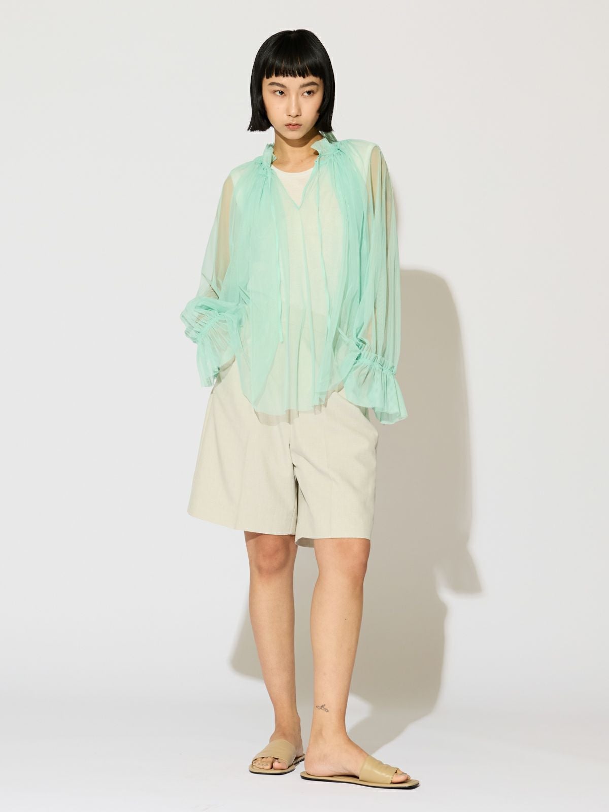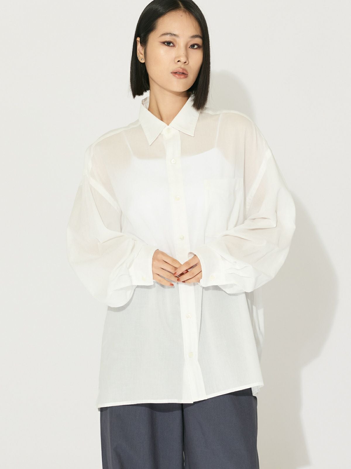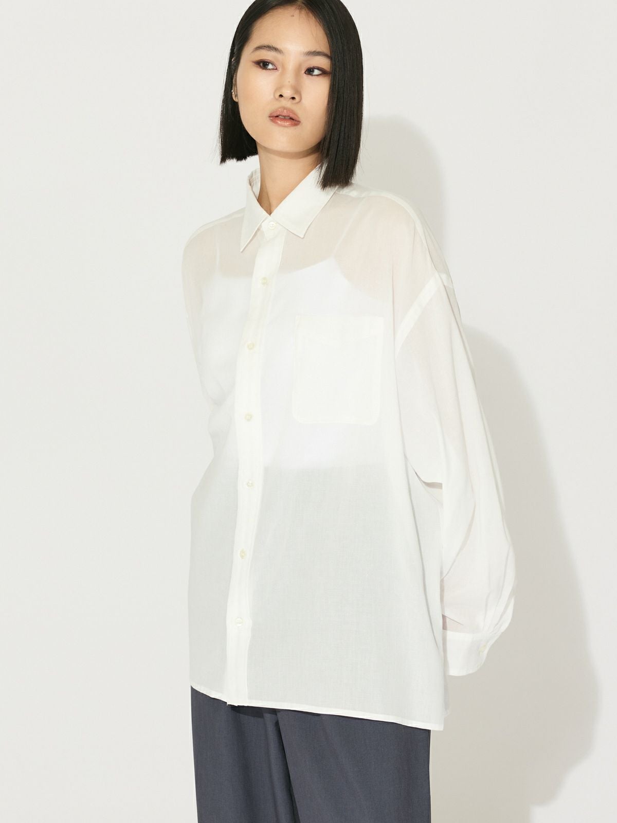 他の画像を見る お気に入りに登録する MIDIUMISOLID for Ladies MIDIUMISOLID for Ladies フレアスリーブシアーシャツ original price ¥ 19,800 price ¥ 13,860 税込 25AW 販売期間 2026/01/01 0:00 〜