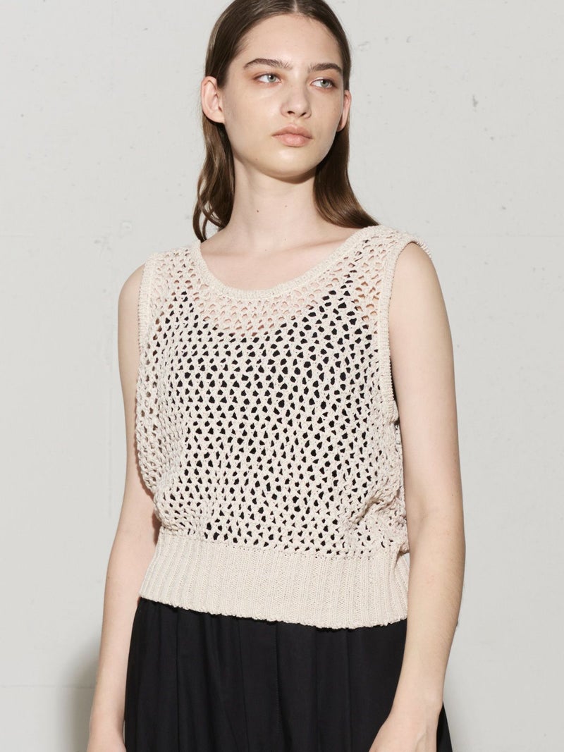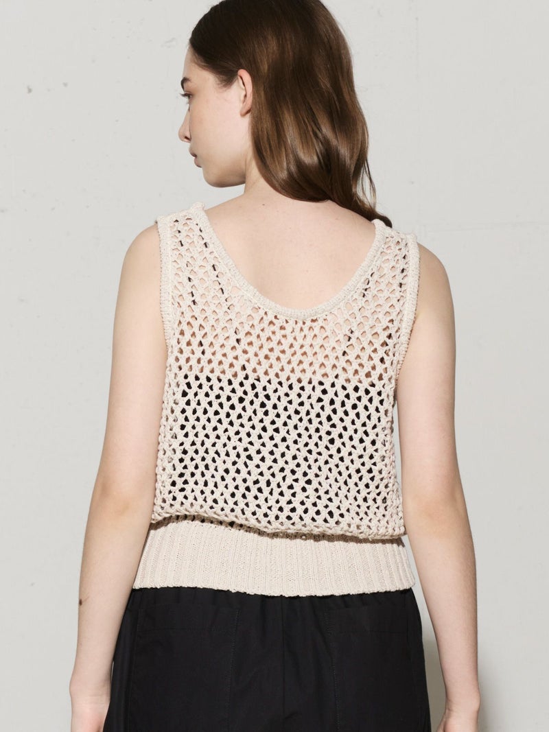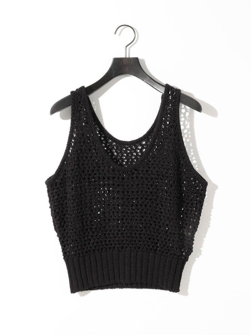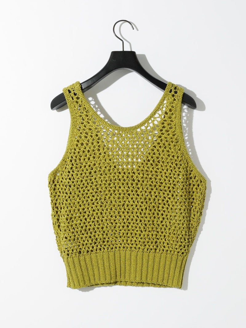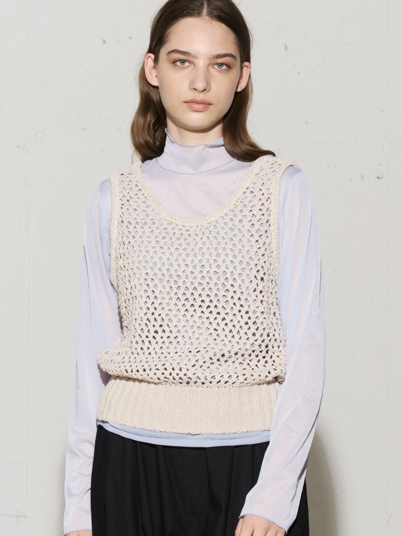 レイヤードを素敵にコーディネートするメッシュタイトベストです。シャツやカットソーと相性よく着こなせる1枚。前後2way使用可能。すっきりとした短め丈で裾リブは腰にフィットしてくれます。季節によって合わせ方を楽しんでいただけ、長い時期愛用できるベストアイテムです。メッシュの透け感が女性らしく大人の雰囲気を印象付けます。淡いベージュや華やかなグリーン、定番のブラックの3色展開。同型の1-122106/メッシュ切り替えプルオーバーも展開中。