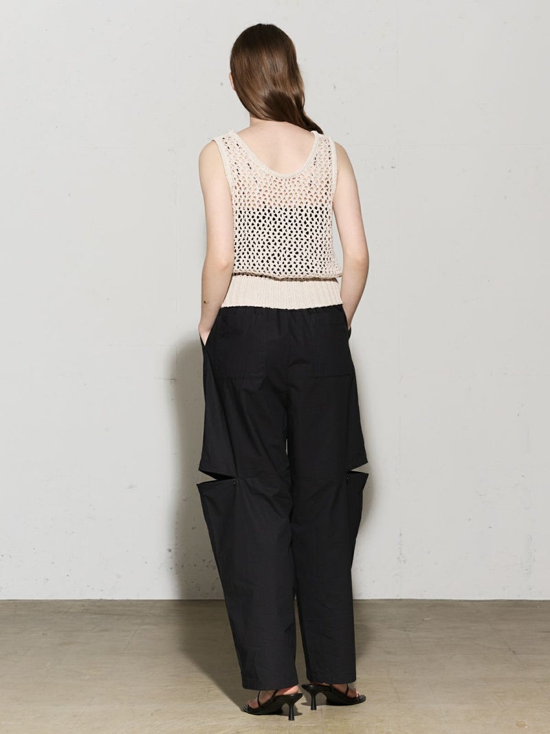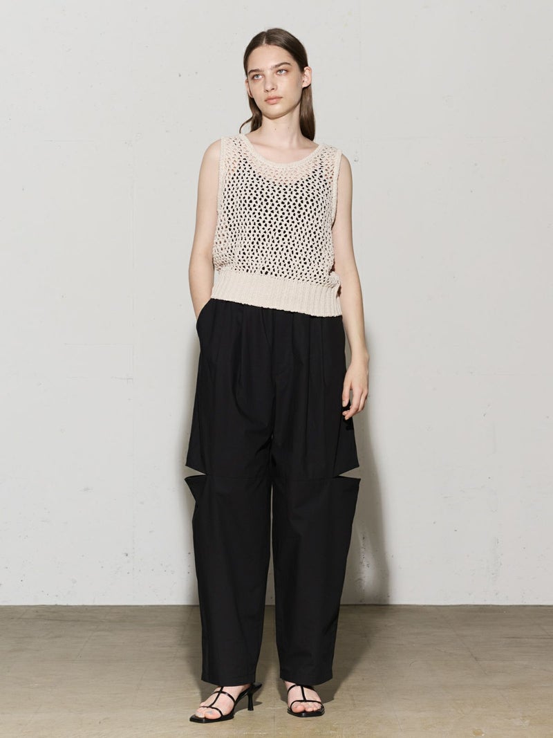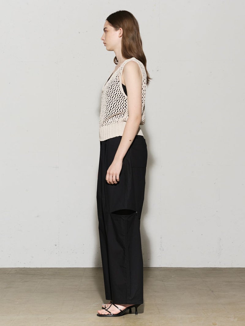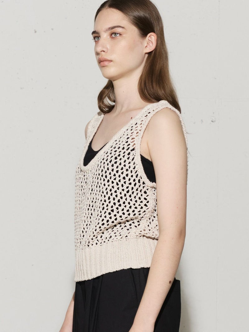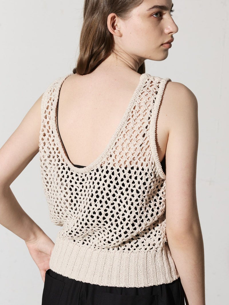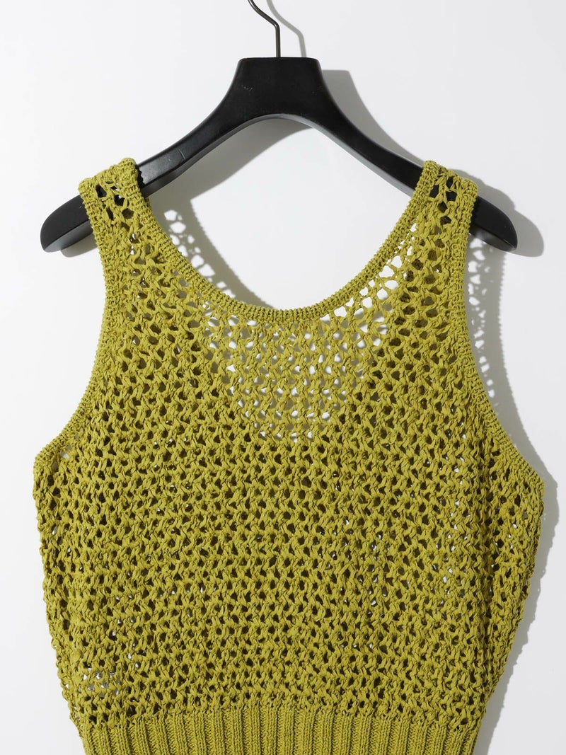 レイヤードを素敵にコーディネートするメッシュタイトベストです。シャツやカットソーと相性よく着こなせる1枚。前後2way使用可能。すっきりとした短め丈で裾リブは腰にフィットしてくれます。季節によって合わせ方を楽しんでいただけ、長い時期愛用できるベストアイテムです。メッシュの透け感が女性らしく大人の雰囲気を印象付けます。淡いベージュや華やかなグリーン、定番のブラックの3色展開。同型の1-122106/メッシュ切り替えプルオーバーも展開中。