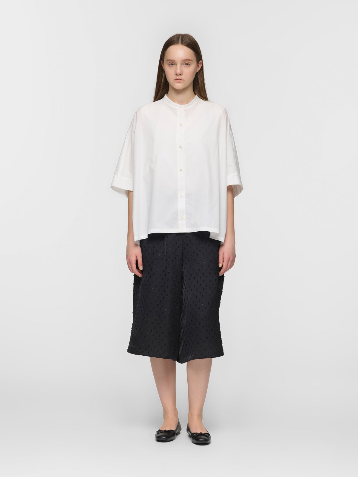 mizuiro ind mizuiro ind ハーフスリーブスタンドカラーワイドシャツ
