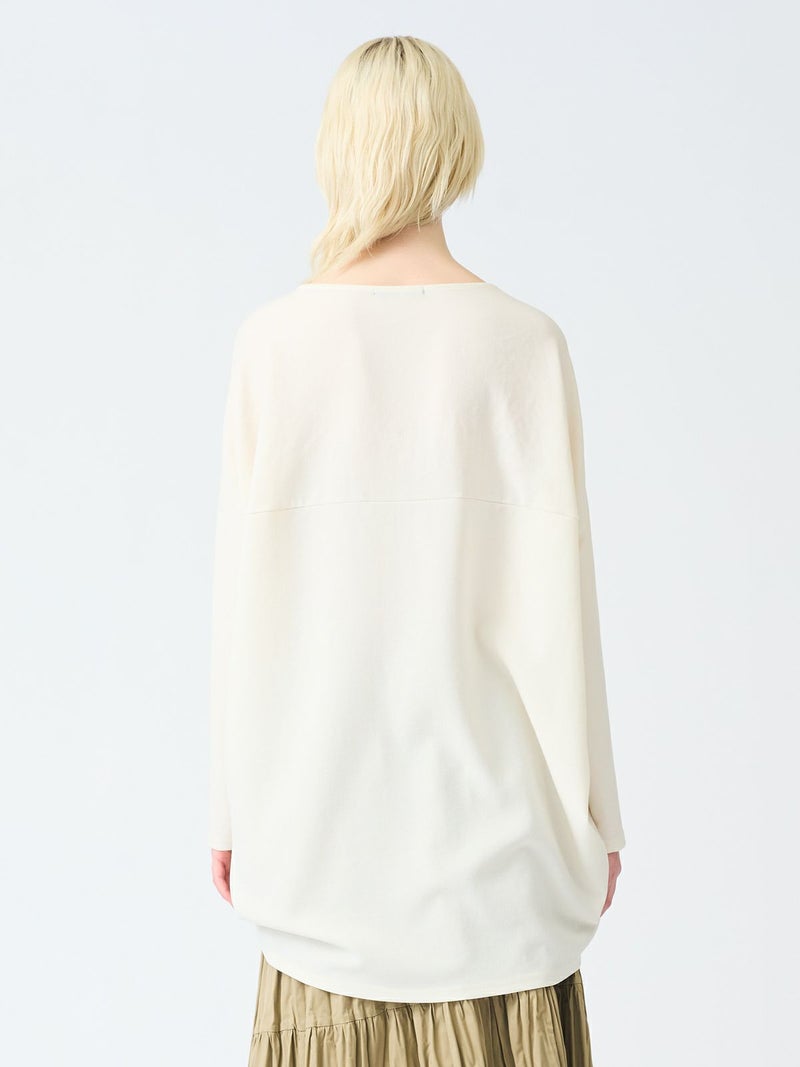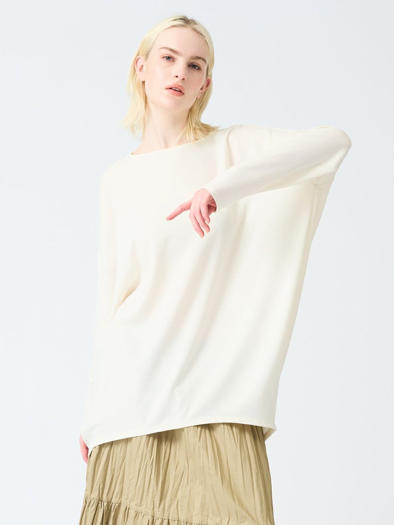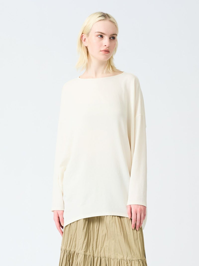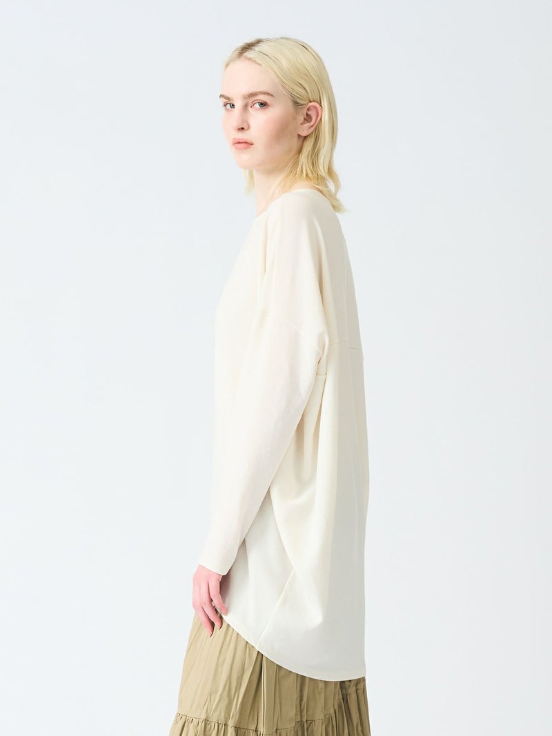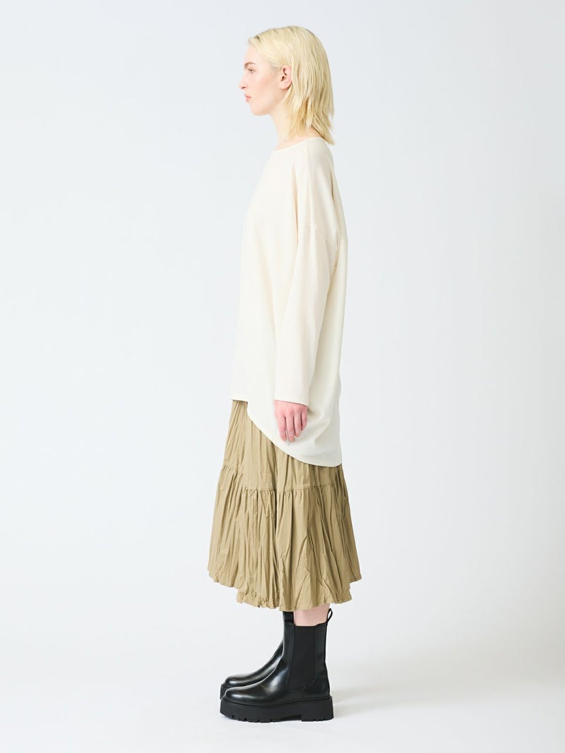 マットな表情としなやかなドレープ感が魅力的なジョーゼットボートネックコクーンプルオーバーです。mizuiro indらしい人気のコクーンアイテムで上品なジョーゼット素材を使用。前後で長さが異なり滑らかに動きのあるシルエットが特徴。着心地の良いサラッとした生地感なので暑い季節にもお勧め。着回しアイテムとして長く愛用いただける1枚です。