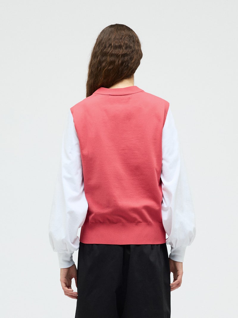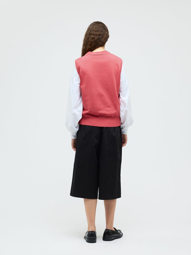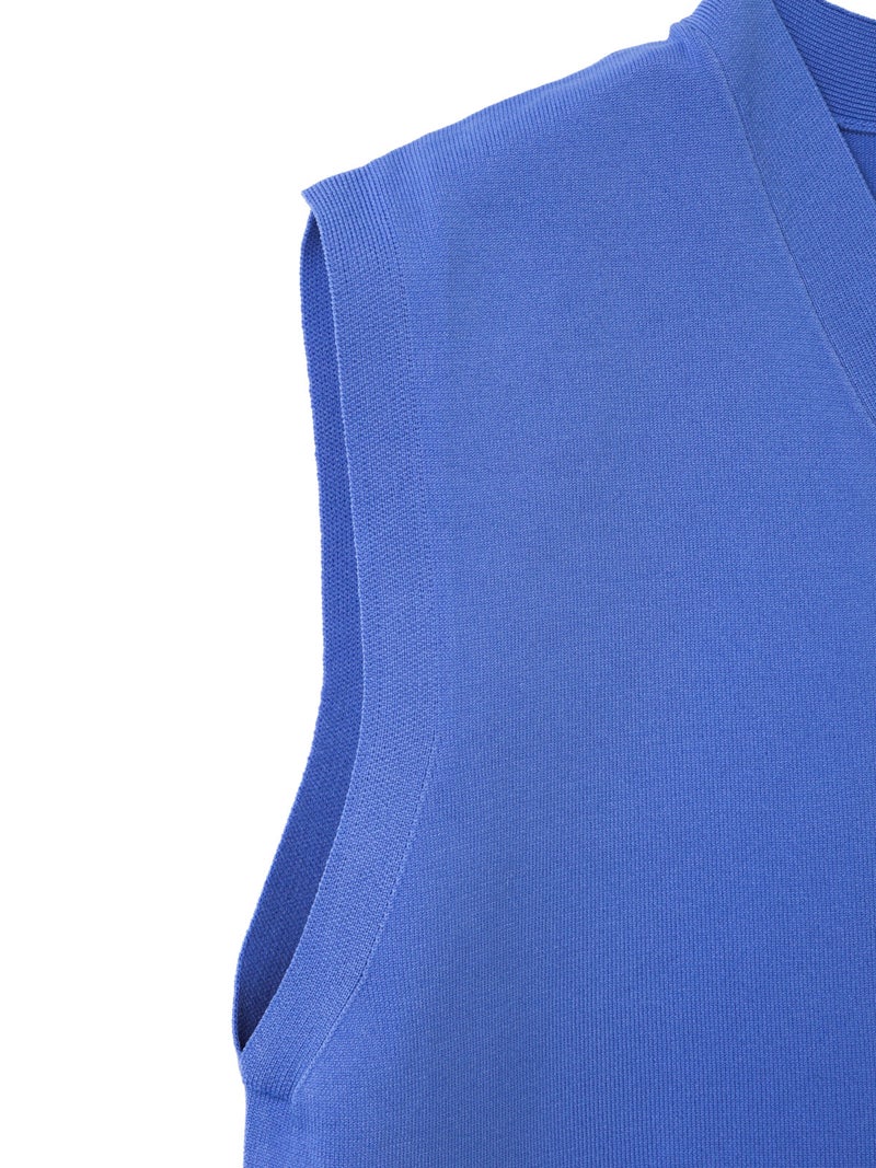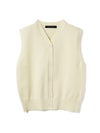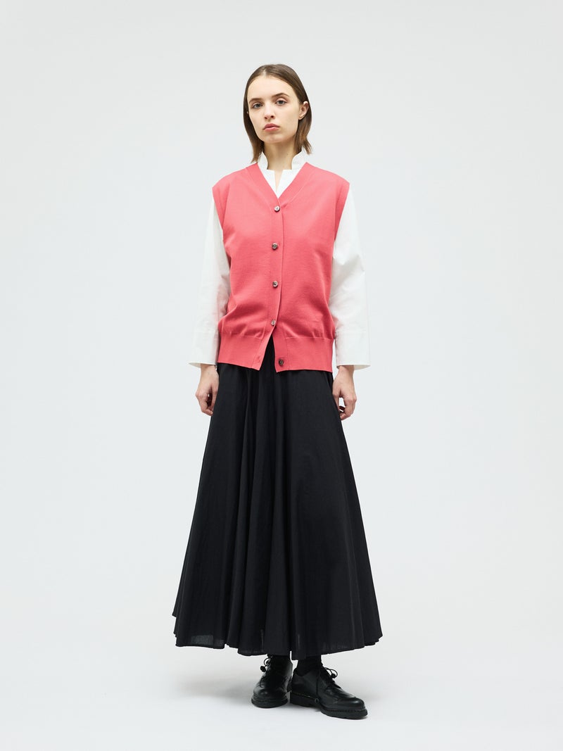 メンズライクな雰囲気を印象付けたVネックベストです。シンプルでクラシックな表情が特徴。腰位置で身丈を自然な緩さで着こなすイメージのベストです。Vネックの開きは大きくなく、胸元を気にせず着用していただけます。フロントボタンを使用。肩を包んだシルエットを表現しています。重ね着もでき、夏場はノースリーブ感覚でのコーディネートも素敵です。ベーシックに合わせやすい1枚です。5色の豊富な色展開もポイントです。
