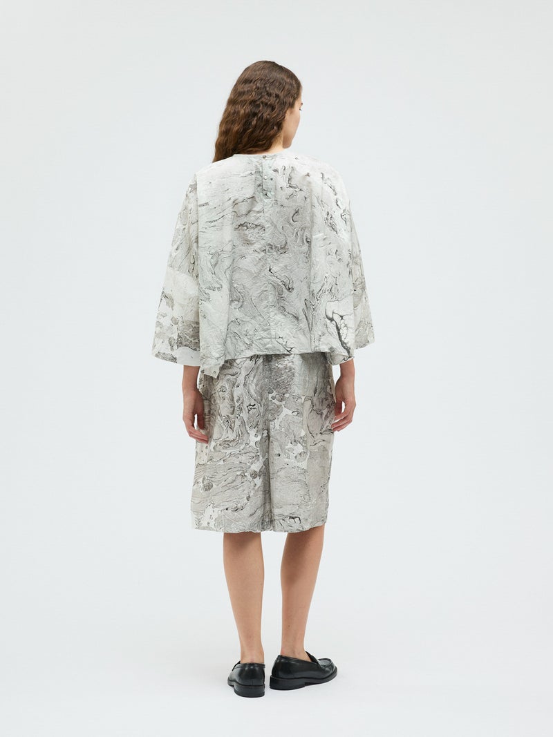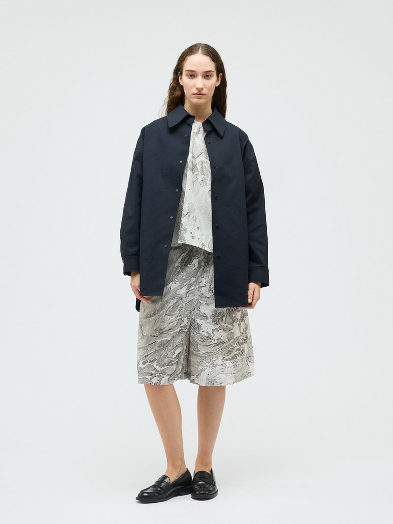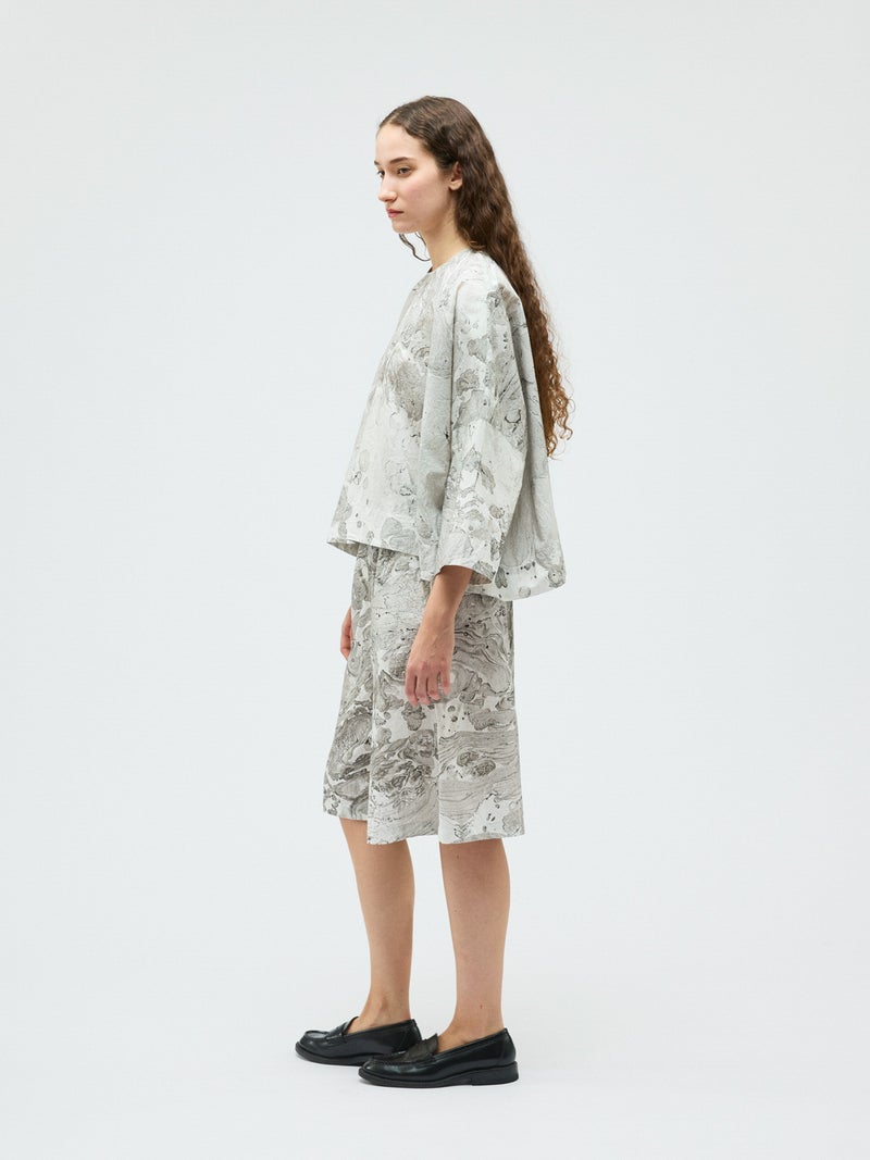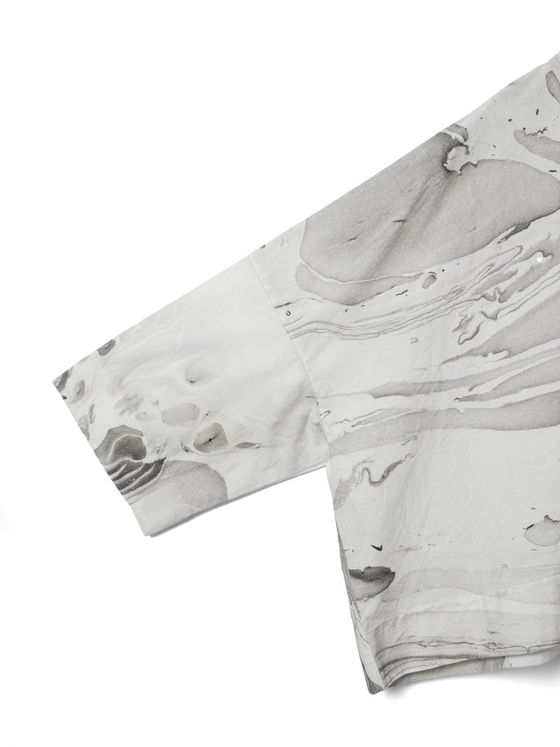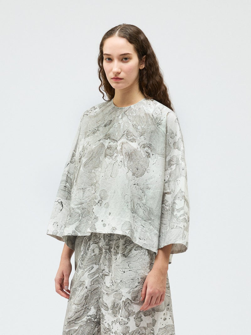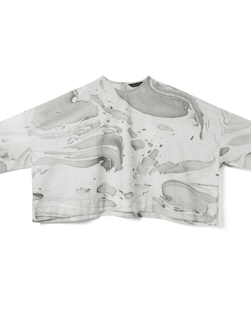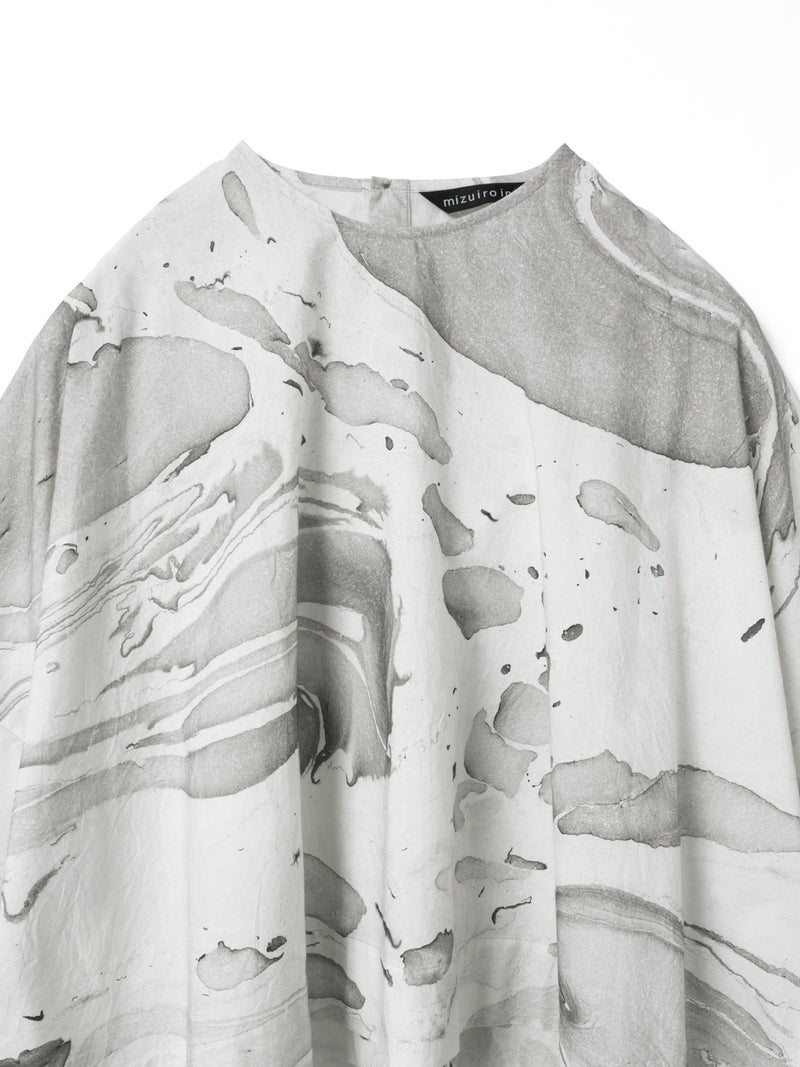 ダイナミックなマーブリングのプリントを使用したマーブルプリントワイドプルオーバーです。グレーとピンクの淡い色使いをした不規則な模様がシャツ全体に広がっています。落ち着きのある独特な雰囲気を演出。ボトムはワントーンのアイテムとコーディネートしていただくとしっくりとまとまりのあるコーディネートを表現します。同シリーズの1-260097/マーブルプリントキュロットパンツとのセットアップもお勧め。マーブリングプリントは個体差があるのでそれぞれ表情の違う1枚に仕上がっています。色止め済でご自宅で洗濯可能です。1-250081/マーブルプリントチュニックワンピースも展開。