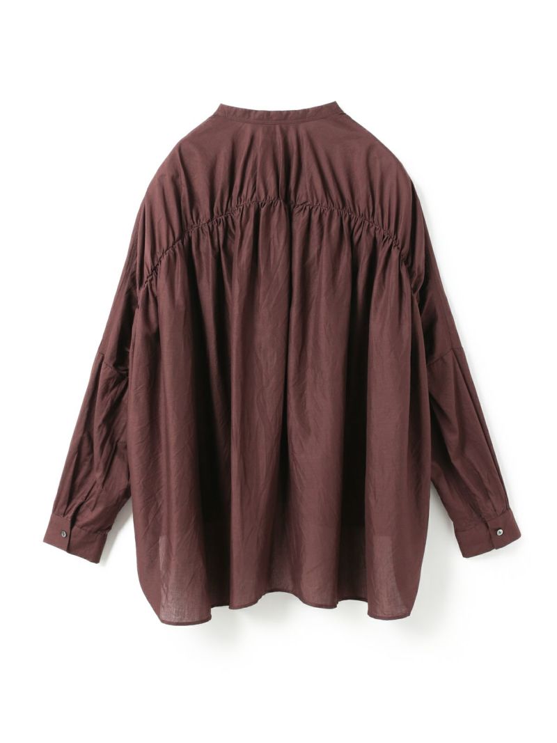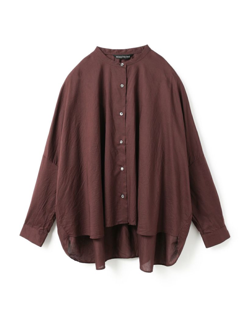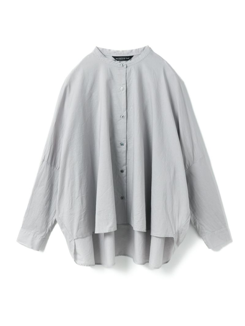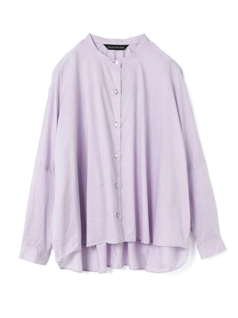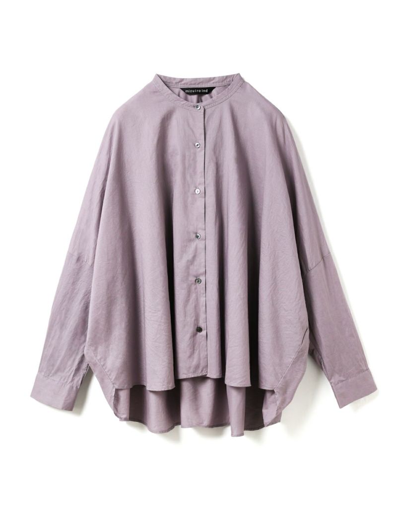 mizuiro ind人気のバックギャザーワイドシャツがこの秋、やわらかなアイボリー、シックなパープルグレーを追加し新登場。秋冬に人気の深みのあるダークブラウン・ダークグレーも継続入荷です。柔らかでナチュラルなコットンは軽さと透明感のある素材の為透け感がございます。フロントはスタンドカラーですっきりとしたシンプルなスタイル。バックは肩から施したギャザーでふんわりとした女性らしいシルエットがしなやかに揺れる魅力あるシャツです。シーズンを通して長く愛用できるのもポイント。羽織としてコーディネートしても素敵です。mizuiro indのお勧めのシャツです。