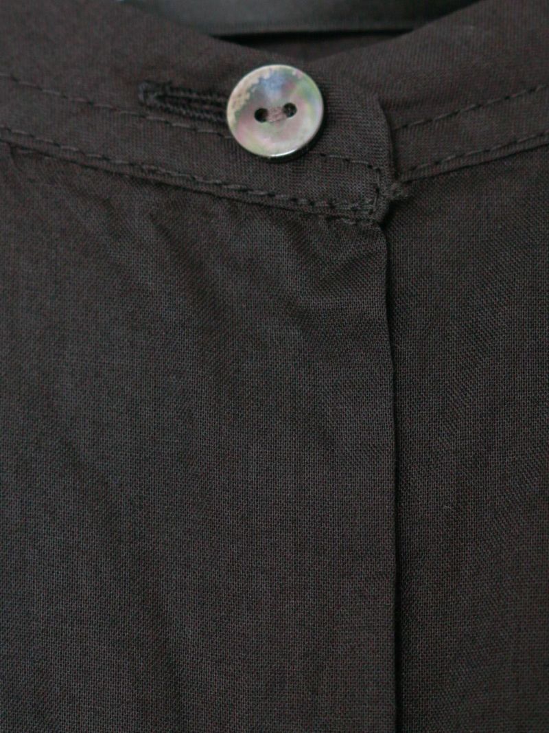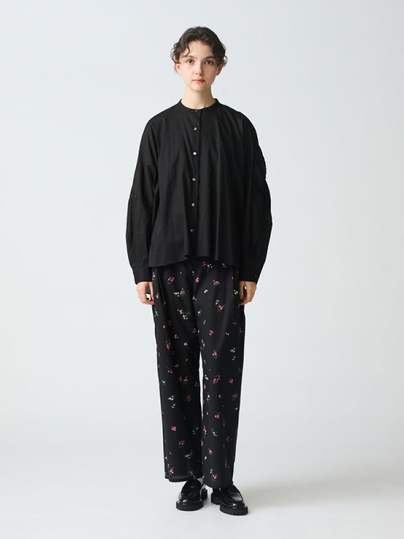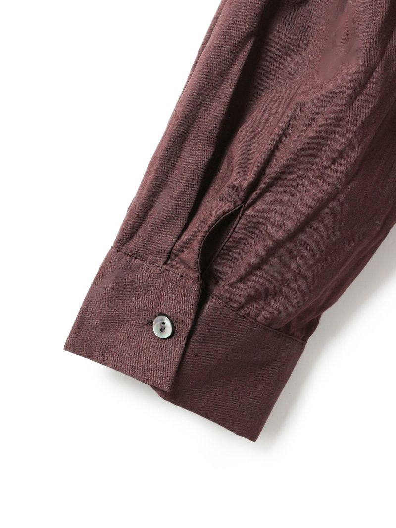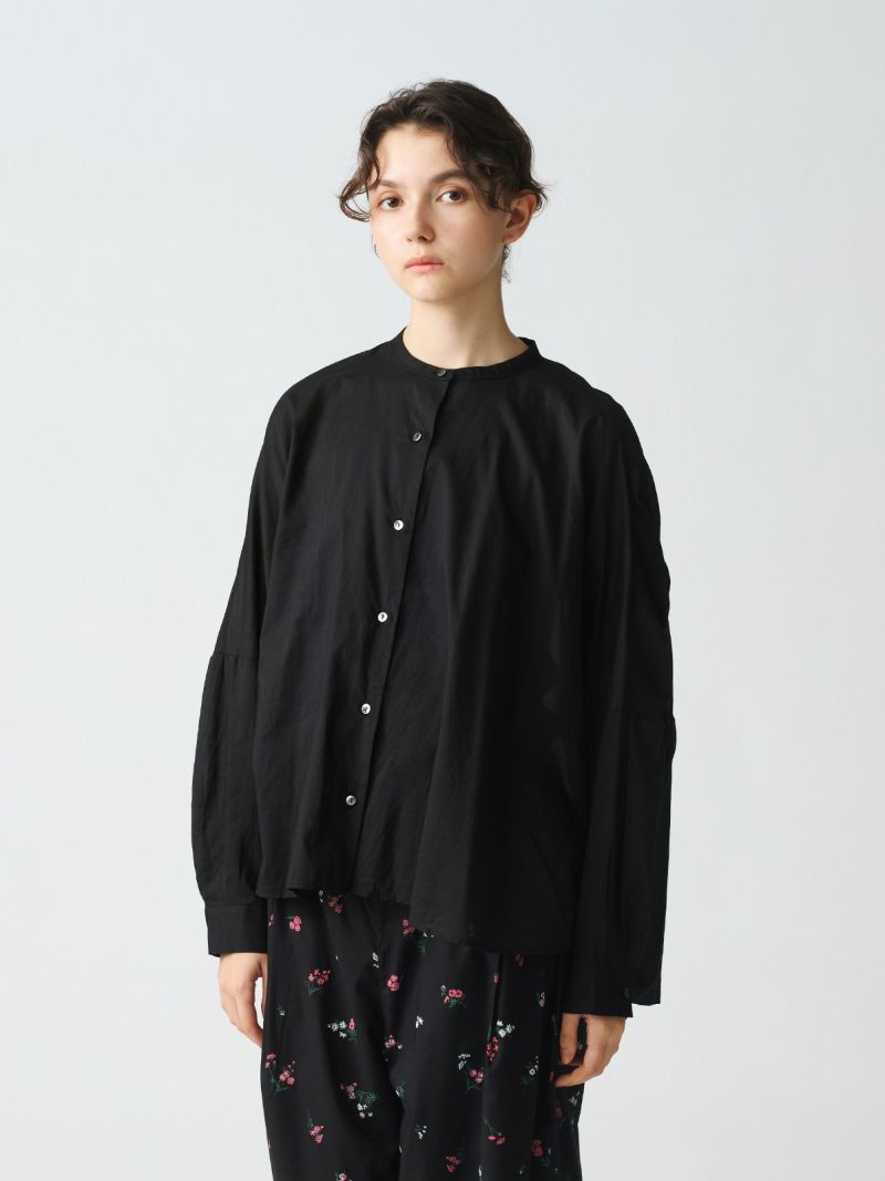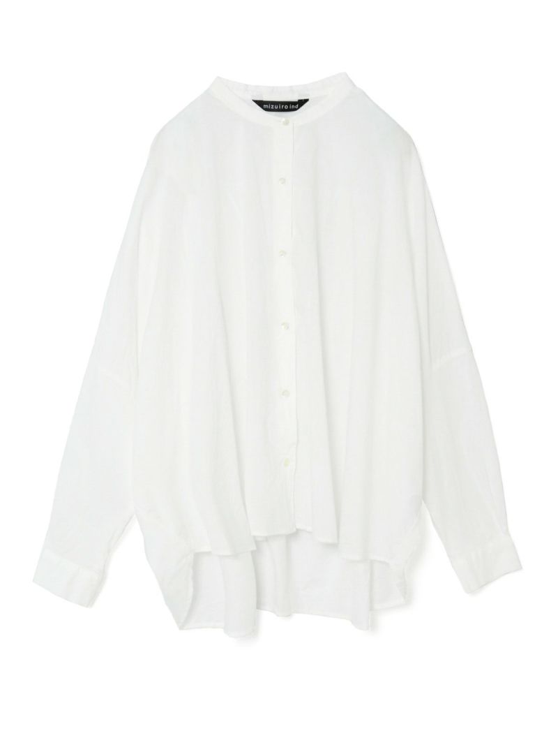mizuiro ind人気のバックギャザーワイドシャツがこの秋、やわらかなアイボリー、シックなパープルグレーを追加し新登場。秋冬に人気の深みのあるダークブラウン・ダークグレーも継続入荷です。柔らかでナチュラルなコットンは軽さと透明感のある素材の為透け感がございます。フロントはスタンドカラーですっきりとしたシンプルなスタイル。バックは肩から施したギャザーでふんわりとした女性らしいシルエットがしなやかに揺れる魅力あるシャツです。シーズンを通して長く愛用できるのもポイント。羽織としてコーディネートしても素敵です。mizuiro indのお勧めのシャツです。