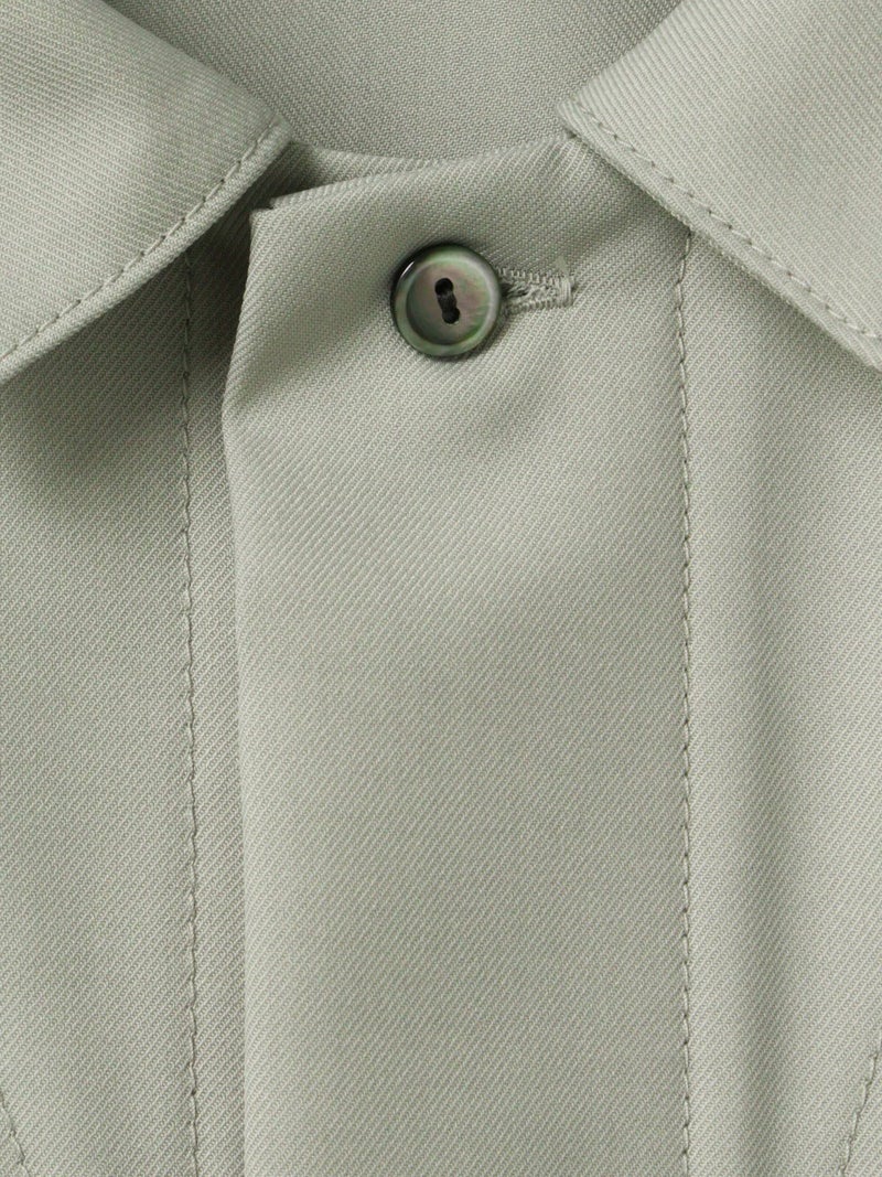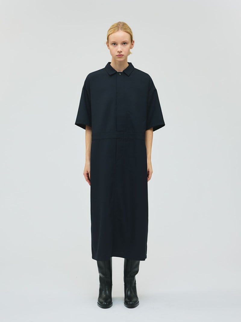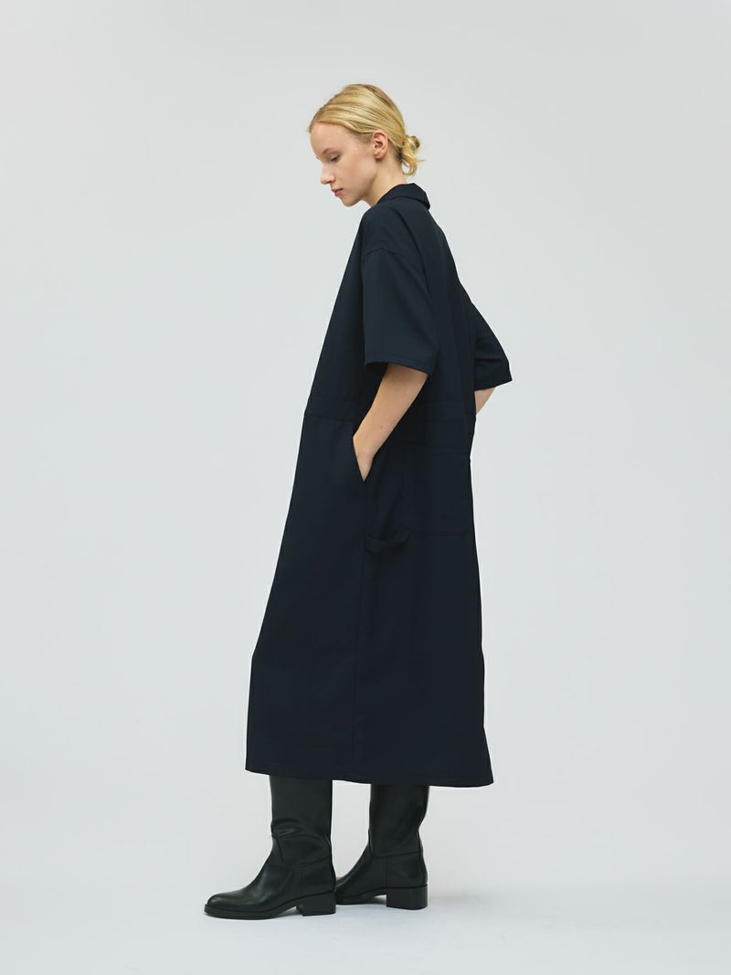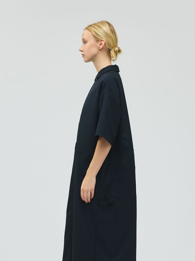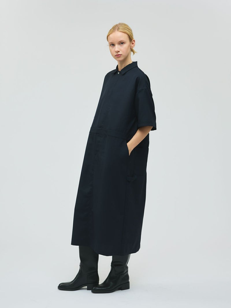 mizuiro ind人気型でもあるペインターライクワンピースがカラーを新たになり新登場。サラッとした生地感は上品で軽さもあり、夏場まで長く愛用していただけるデザインに仕上がっています。シワになりずらいのが特徴。ボックスラインがきれいに表現された1枚。レギュラーカラーの襟を開いてラフにワイルドに着こなしても素敵です。胸下までのフロントボタンの開きを開放的にできるので着脱がしやすいのもポイントです。着回しのしやすい落着きのある大人のカジュアルスタイルにお勧めです。