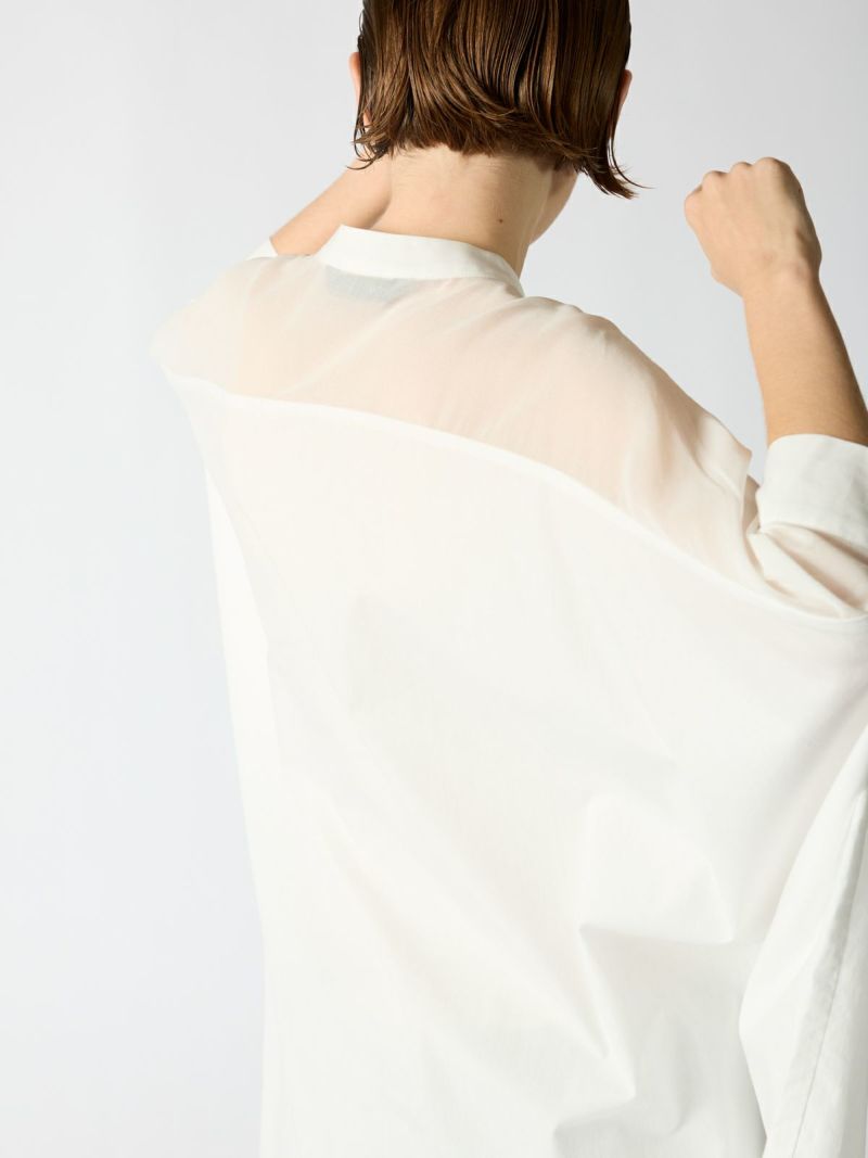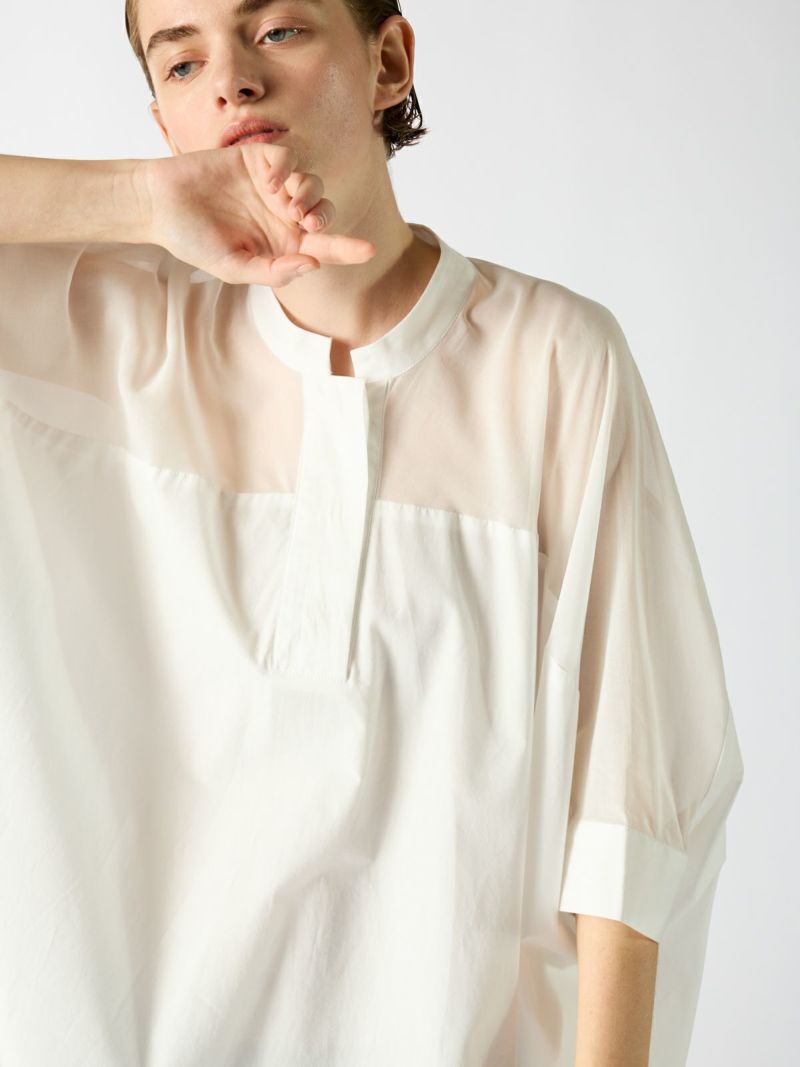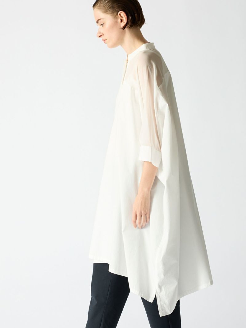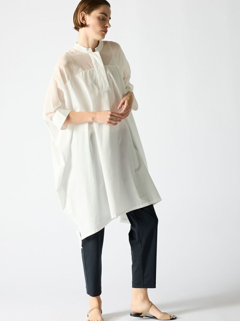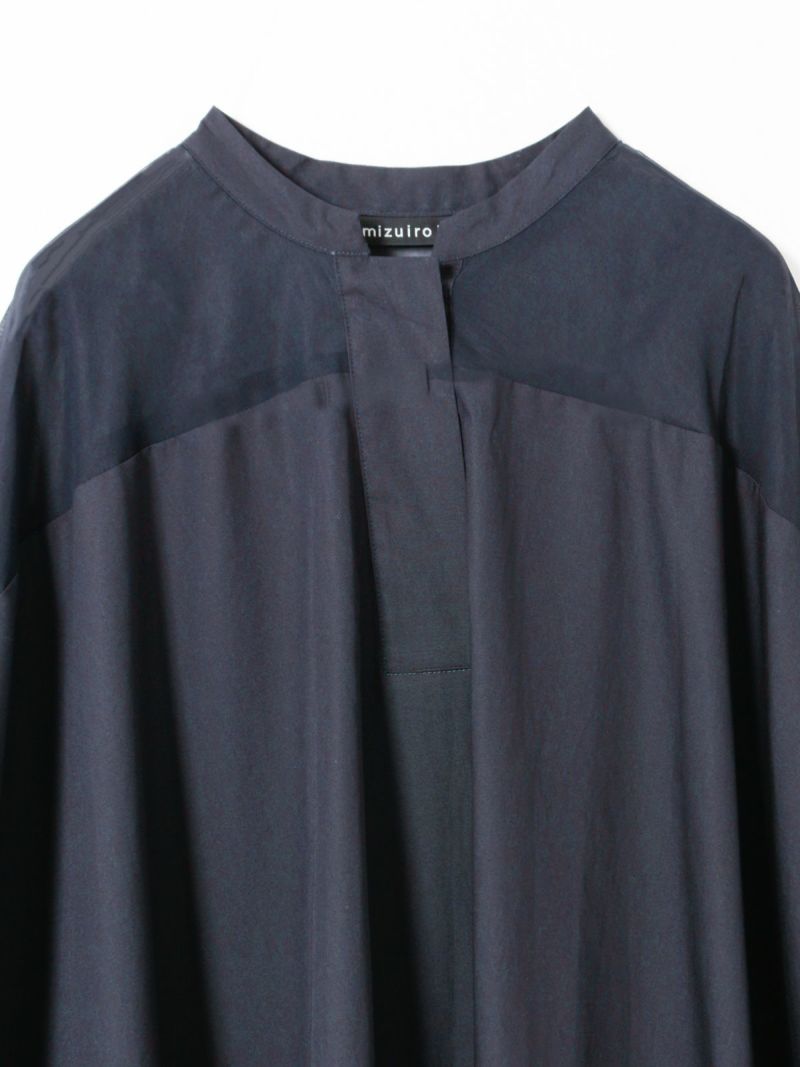 ベースに50ブロードを使用する事で透け感を上品にミックスしたシアーボイルミックススタンドカラーワイドワンピースです。ヨーク部分の透け感がポイントで、普段使いがしやすい新鮮なデザインとして提案できる1枚。人気のある透け感のあるデザインをワンピースに取り入れた大人の魅力をより引き出しました。清楚でシャープな雰囲気の3色のカラー展開。