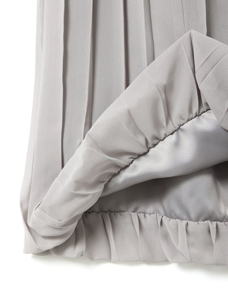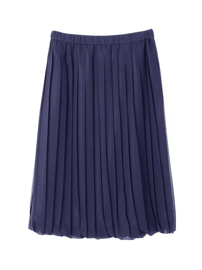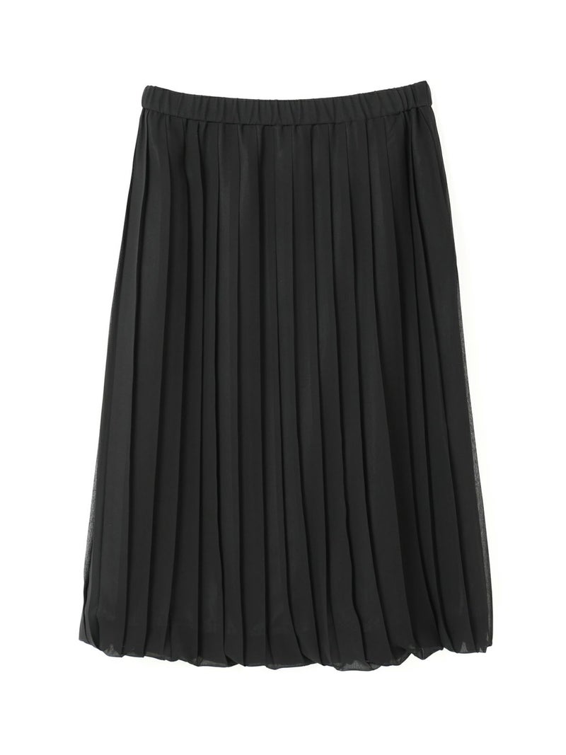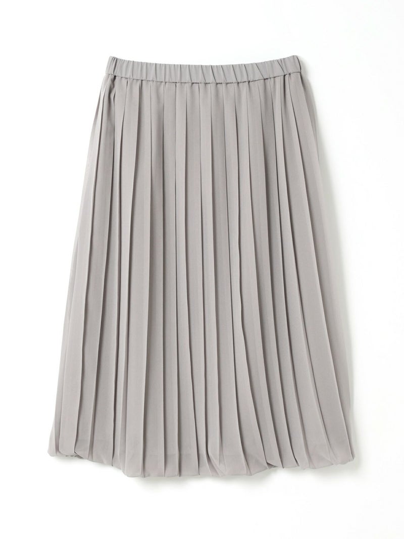 プリーツスカートをバルーンのデザインに仕上げた女性らしさの光るプリーツバルーンスカートです。裾に軽くひねりを加えて動きを出したシルエットが魅力的。膝下丈の上品なスカートです。ウエストはリラックス感のあるゴム仕上げなので大変らくに着用していただけます。レイヤードアイテムとして着こなしても素敵な1枚です。