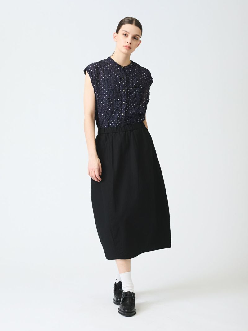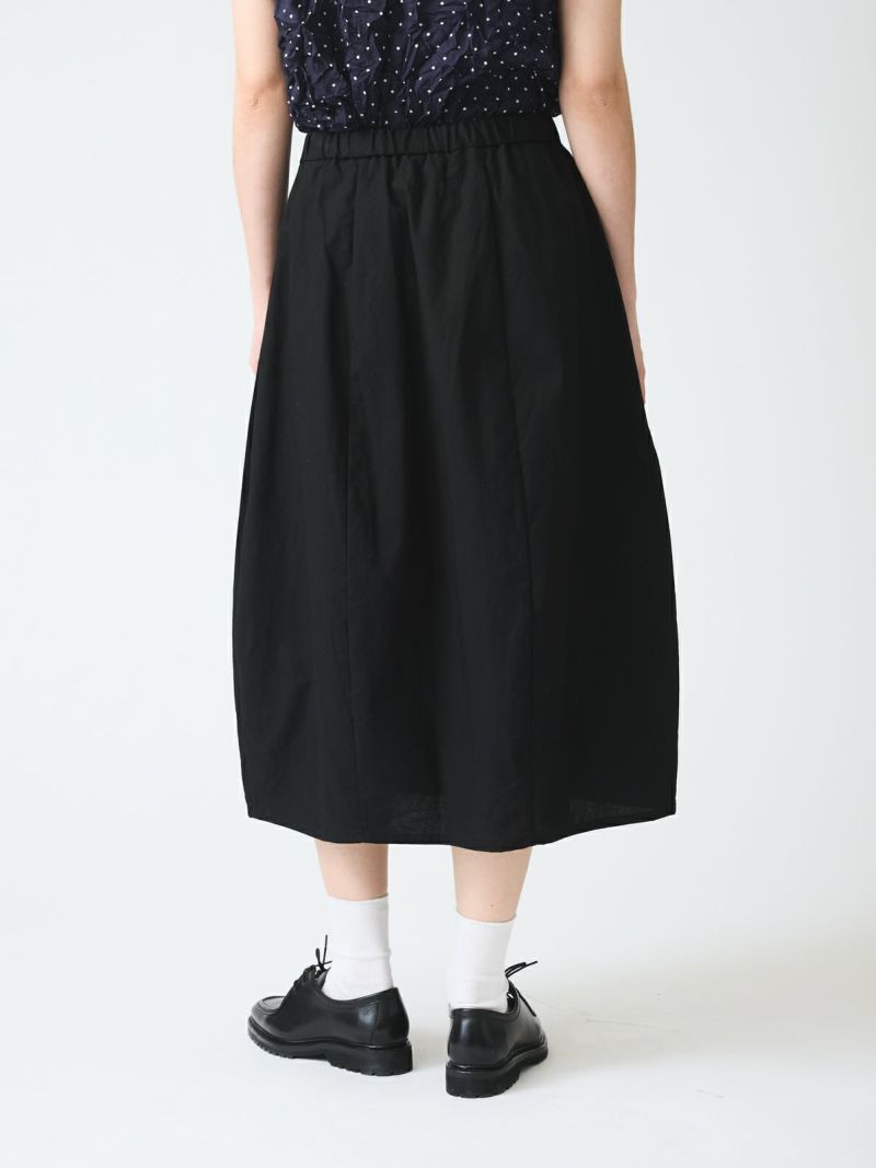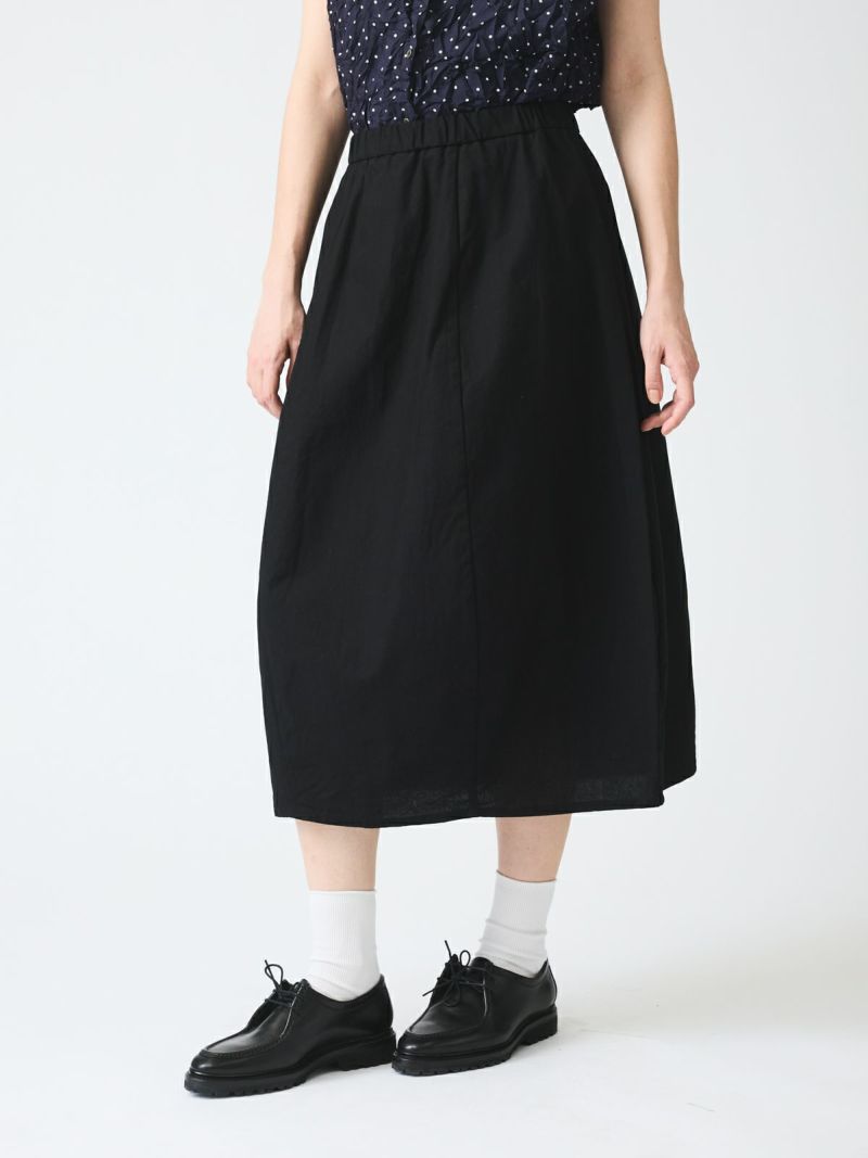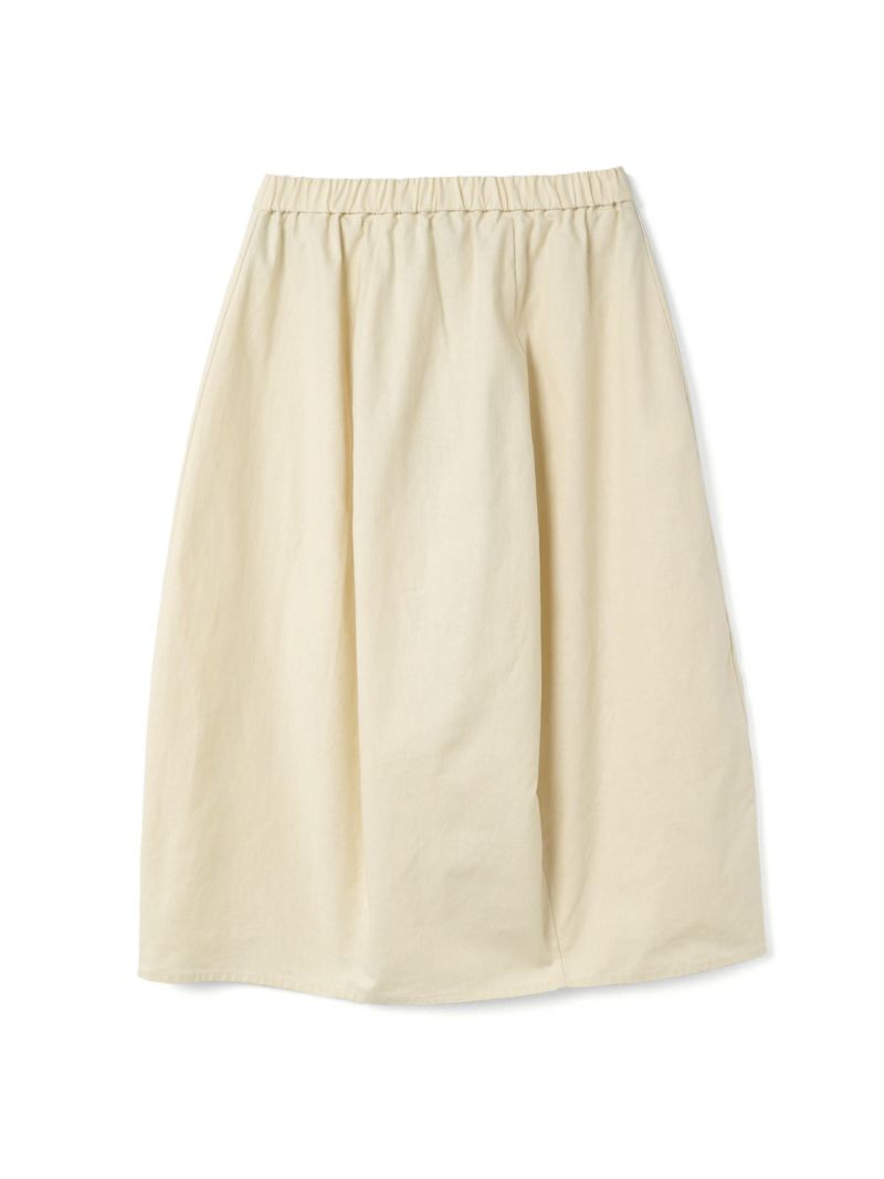 やや厚手の綿麻キャンバスを使用したコットンリネンコクーンスカートです。製品洗い仕上げをしているので洗濯OK。丸みのある女性らしいシルエットを表現しました。ウエストはリラックス感のあるゴム使用。清楚で春の季節感を感じていただける1枚です。1-260073/コットンリネンハイウエストタックワイドパンツも展開。