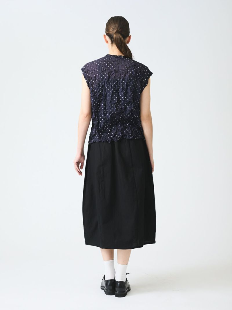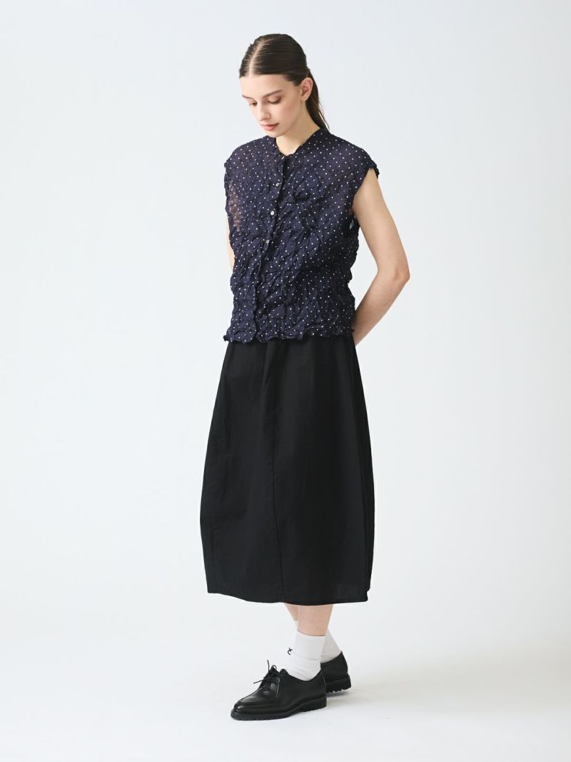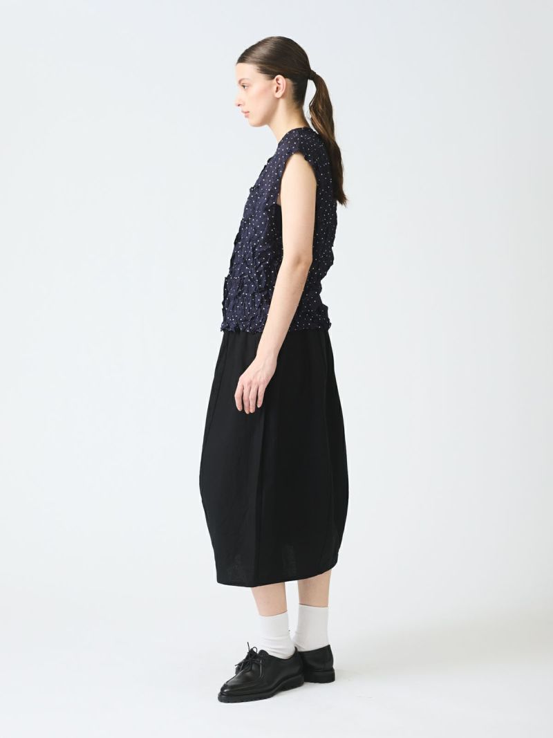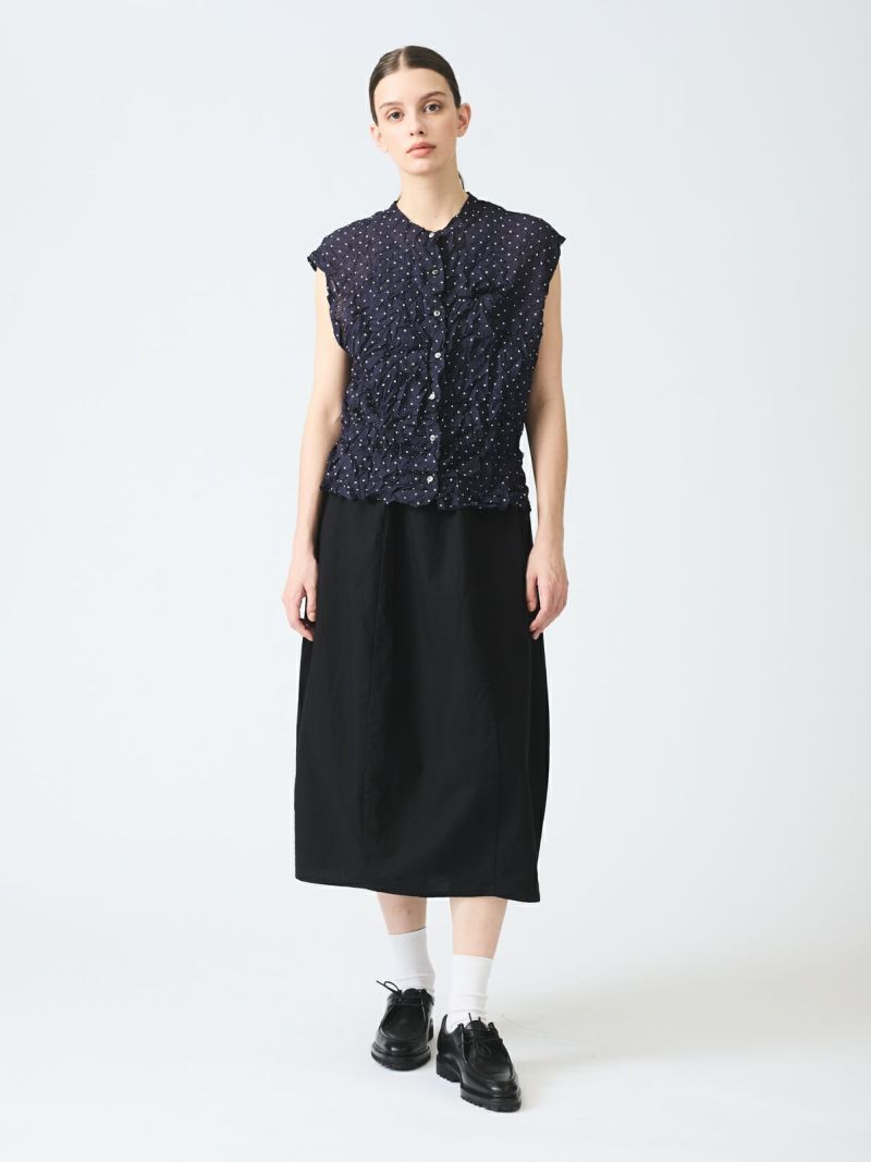やや厚手の綿麻キャンバスを使用したコットンリネンコクーンスカートです。製品洗い仕上げをしているので洗濯OK。丸みのある女性らしいシルエットを表現しました。ウエストはリラックス感のあるゴム使用。清楚で春の季節感を感じていただける1枚です。1-260073/コットンリネンハイウエストタックワイドパンツも展開。
