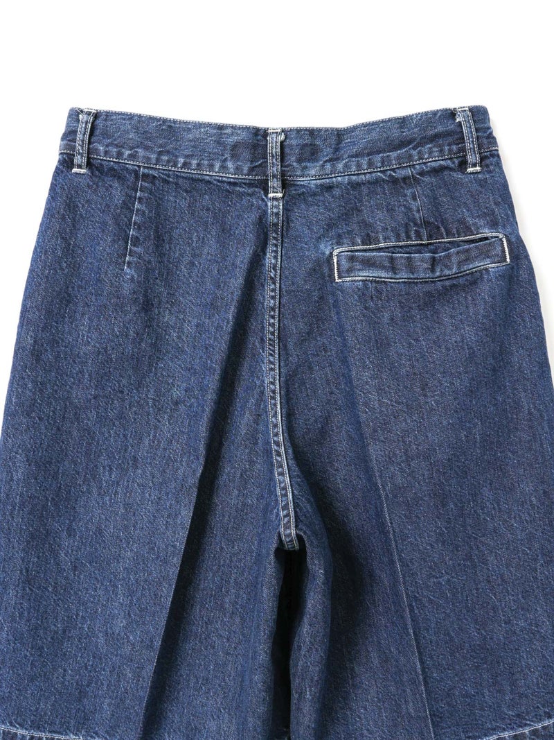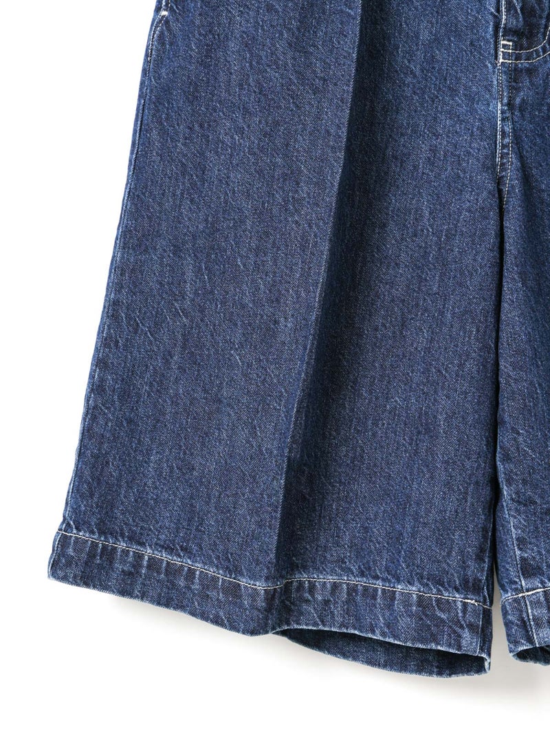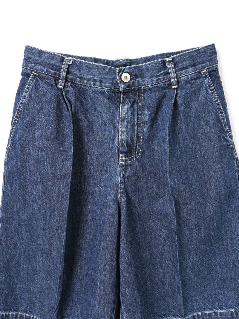 ウエストにワンタック入れたデニムハーフパンツ(ブリーチ)です。膝丈のショート丈にセンタープレスを入れた大人な表情を印象付けたデニムパンツです。ワンウォッシュより少し薄目のブルーはカジュアル感を演出。ステッチも拘って目に入ってくるデザイン。ウエストはベルト使い可能。シャツインにもお勧めです。長袖から半袖、足元からアウターまで、季節感を幅広くコーディネートしていただけます。同品番1-260095OW(ワンウォッシュ)も展開。
