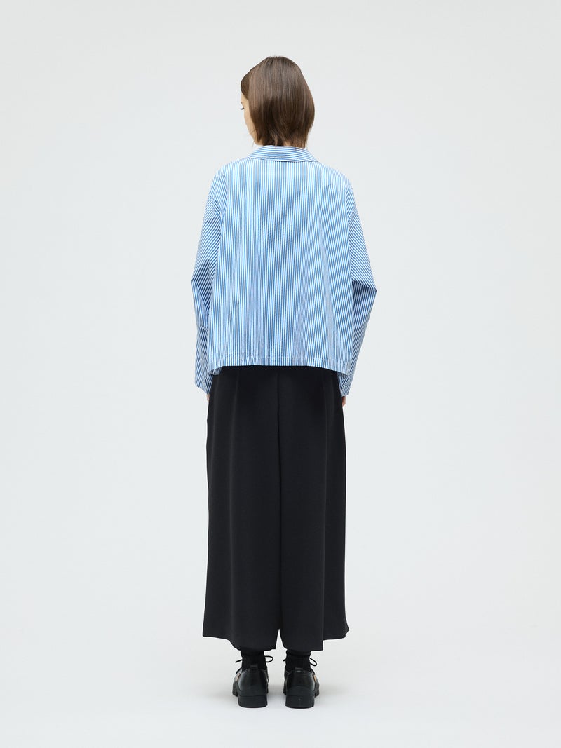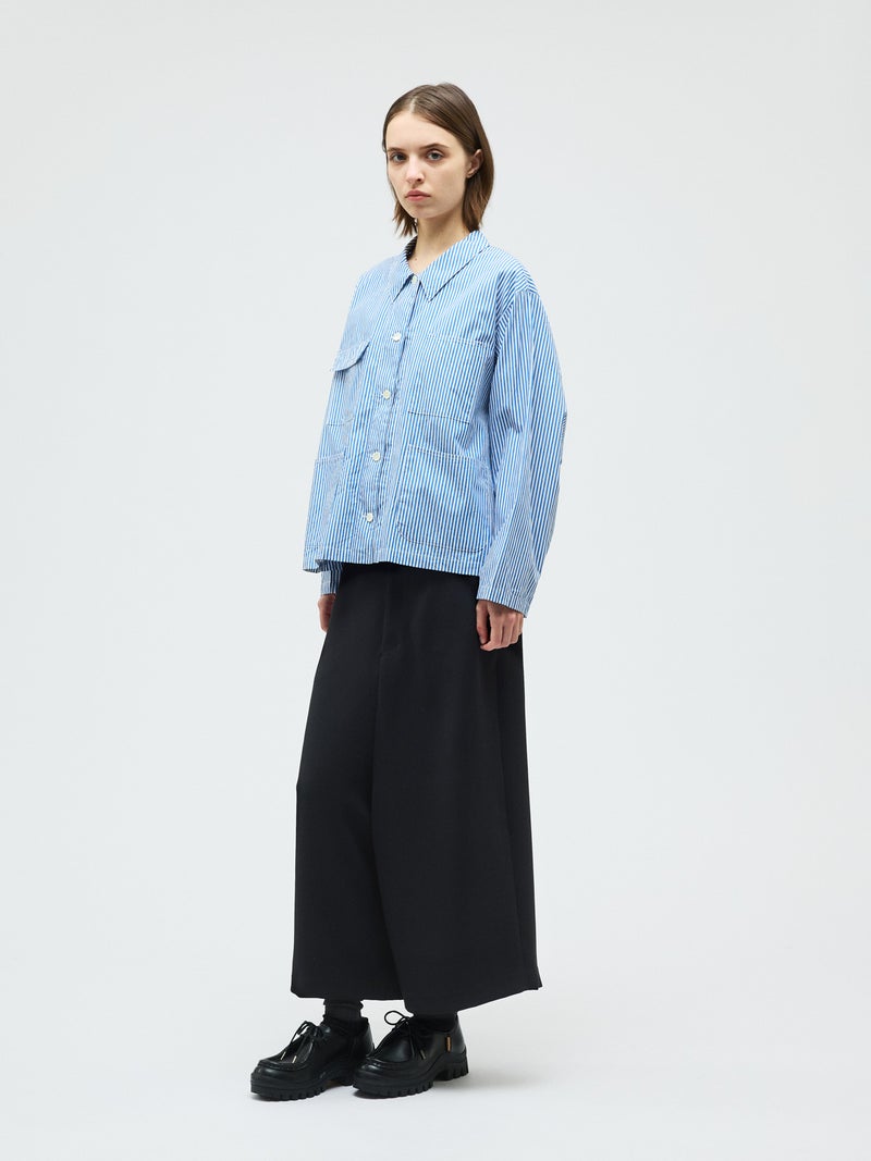 ストレッチダブルクロスのマットな表情としなやかな落ち感が特徴のハイウエストパンツです。穿き心地のよさはもちろん、上品でかっこいい着こなしを表現します。落ち着きのあるベーシックな3色のカラー展開なので着回しはしやすくシックに決まるボトムアイテムです。同シリーズとして1-230161/ブルゾンライクシャツとのセットアップもお勧めです。