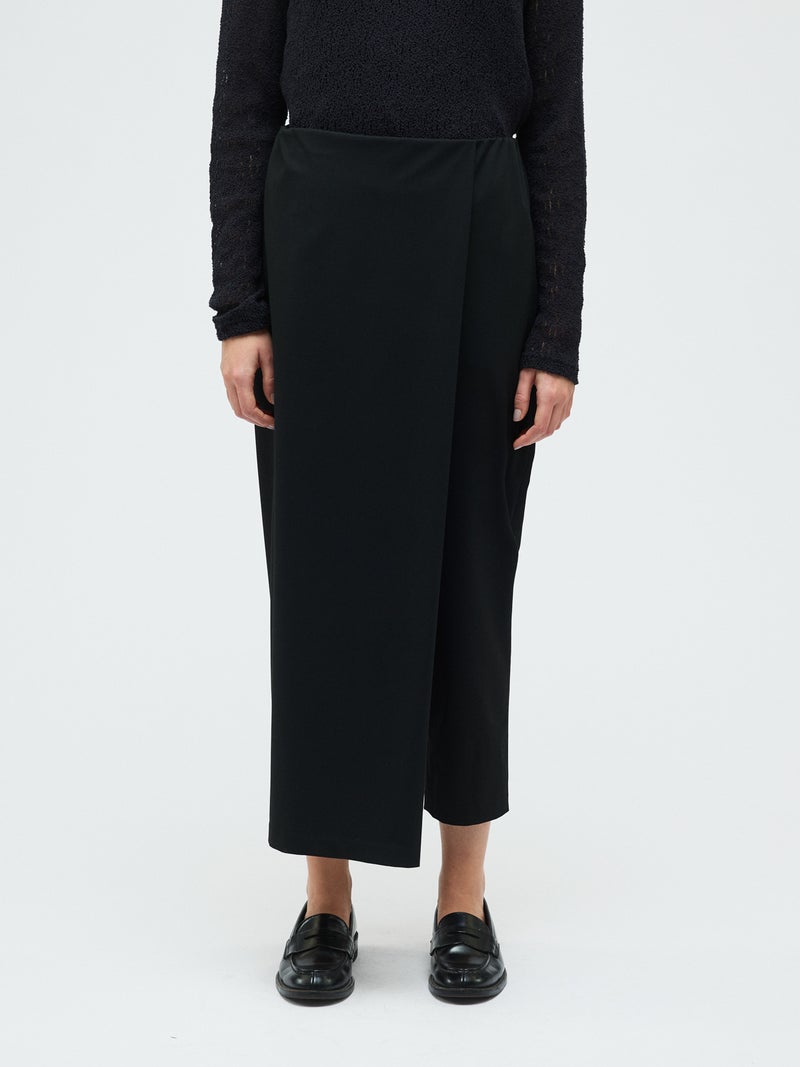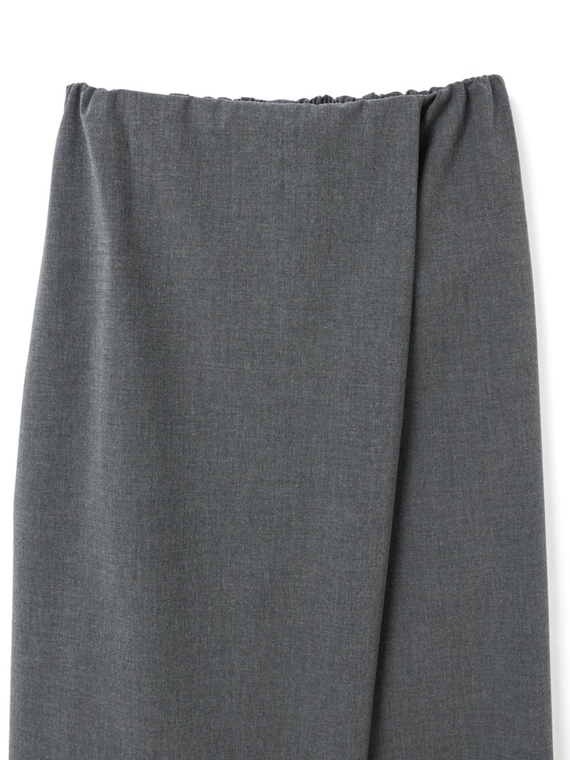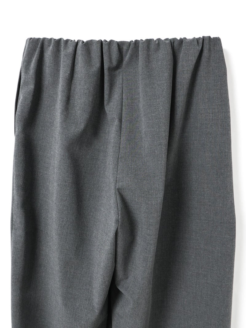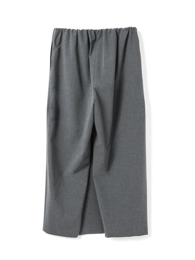 タイ風スカートのようなデザインを表現したラップスカートライクパンツです。右フロントのパンツ幅を大きく持たせて、ラップスカートのような動きのあるデザインが特徴。素材はややハリのあるTR素材を使用。バックは通常のパンツのシルエットが分かるデザインです。ウエストは中折に幅のあるゴムを使用。シャツインもお勧めです。スカートを穿いていいるような女性らしい雰囲気ですがパンツの動きやすさを兼ね揃えた1枚です。